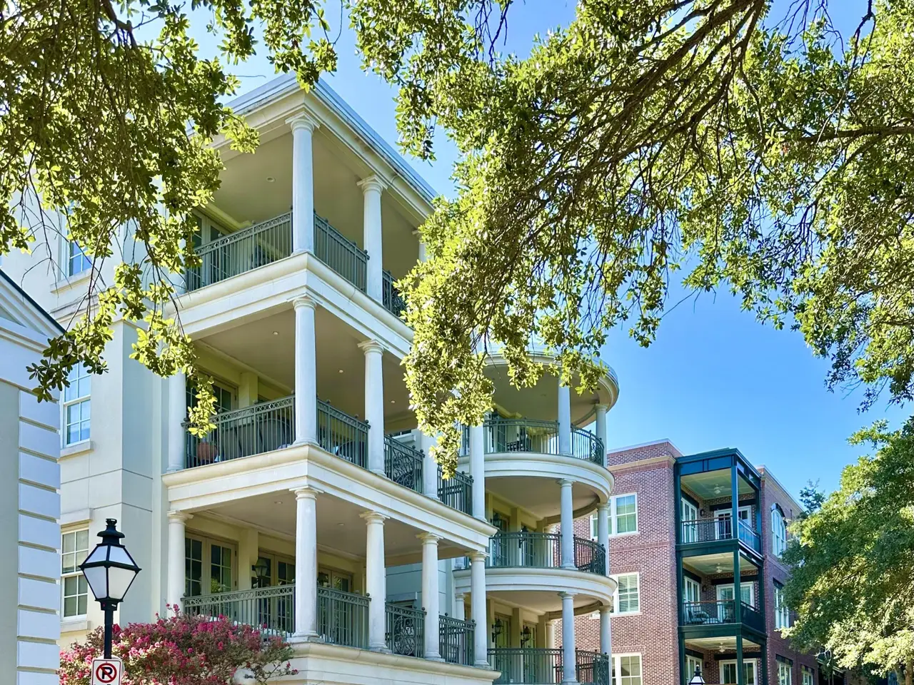 Factors Walk: the best there is in location, style, and maintenance-free luxury. Designed by Goff D'antonio Architects with historic Charleston as inspiration, this Classical Revival building has become a waterfront landmark. Distinguished by triple tiered columned porches overlooking the park, the Palladian style is continued in limestone-trimmed true stucco construction on a piano noble base. Apartment 3A is the largest of only 7 residences and runs the full depth of the building from the front piazza to a solarium at the rear. Parkside entry for guests with stone steps and gas lanterns. A coded elevator is accessed from secured garage parking, or from the gated garden entry. Grand rooms with floor to ceiling windows. Spectacular kitchen with fine cabinetry, three fireplaces, mahogany paneled elevator, piazza with columns and stone flooring, hurricane proof windows and doors, primary bedroom with fireplace and sitting room/office, building and residence security systems. Currently set up as a two bedroom, the library can easily be converted back to third bedroom.