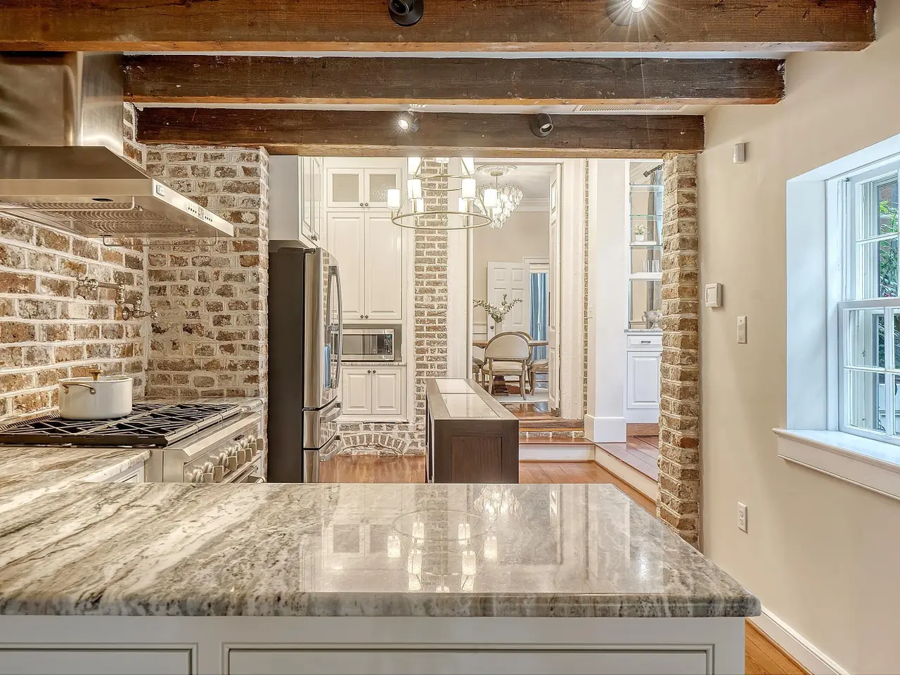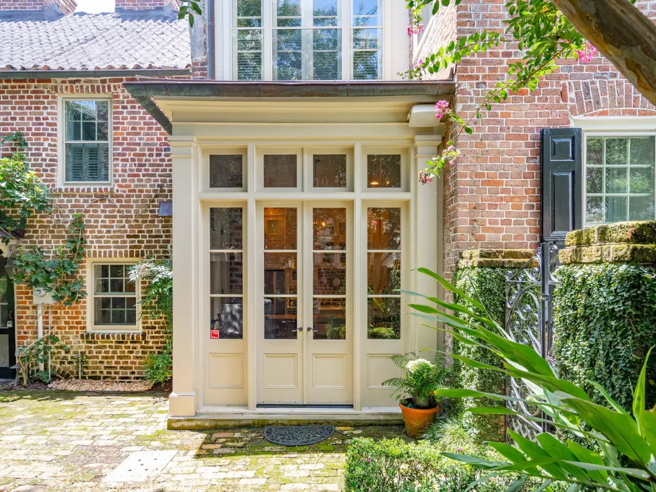 Circa 1764. The Jonathan Badger House. Built by Charleston cabinet maker Badger, this fine Pre-Revolutionary structure is considered to be one of the best examples of exposed Flemish and English bond brick construction from the Georgian period within the old walled city. In its original form, with the main residence now combined with the kitchen house to offer modern comforts with 18th-century architecture. 3,200 sqft, 4 bedrooms, 4.5 bathrooms, generous off-street parking, charming walled garden, high elevation.