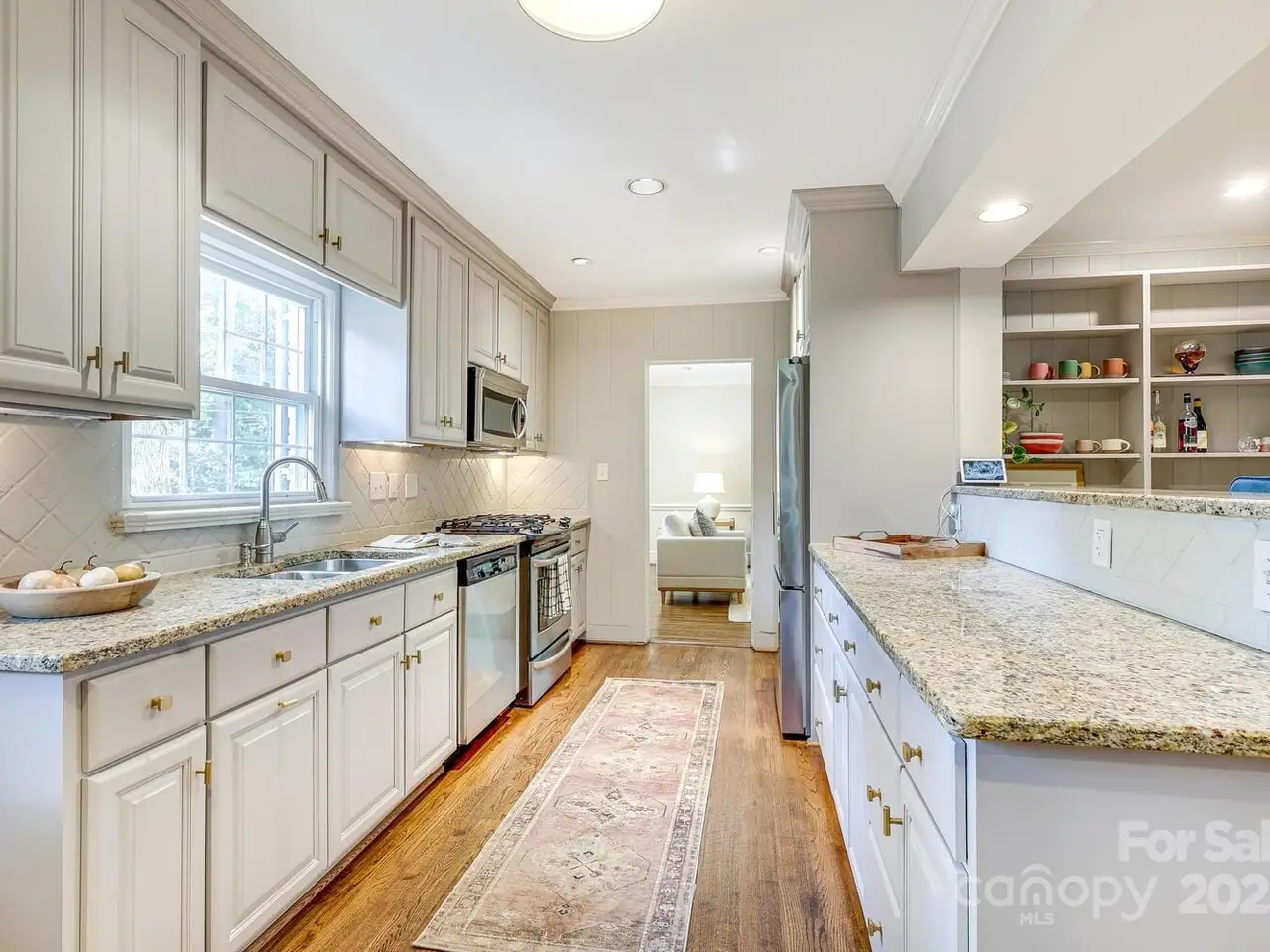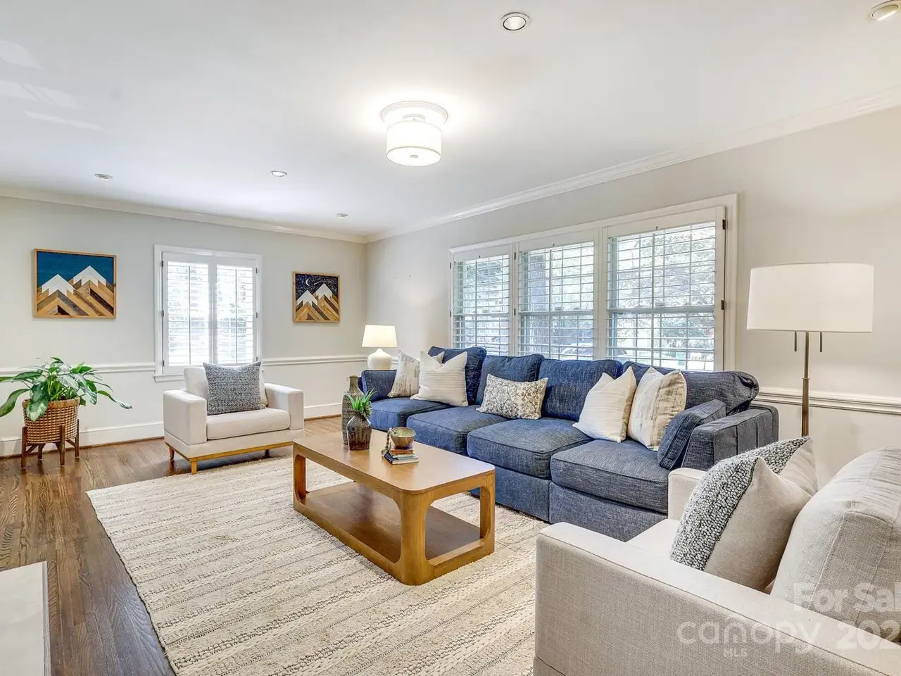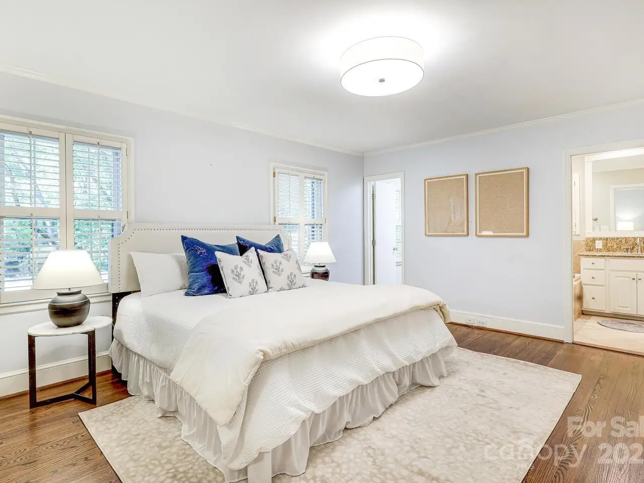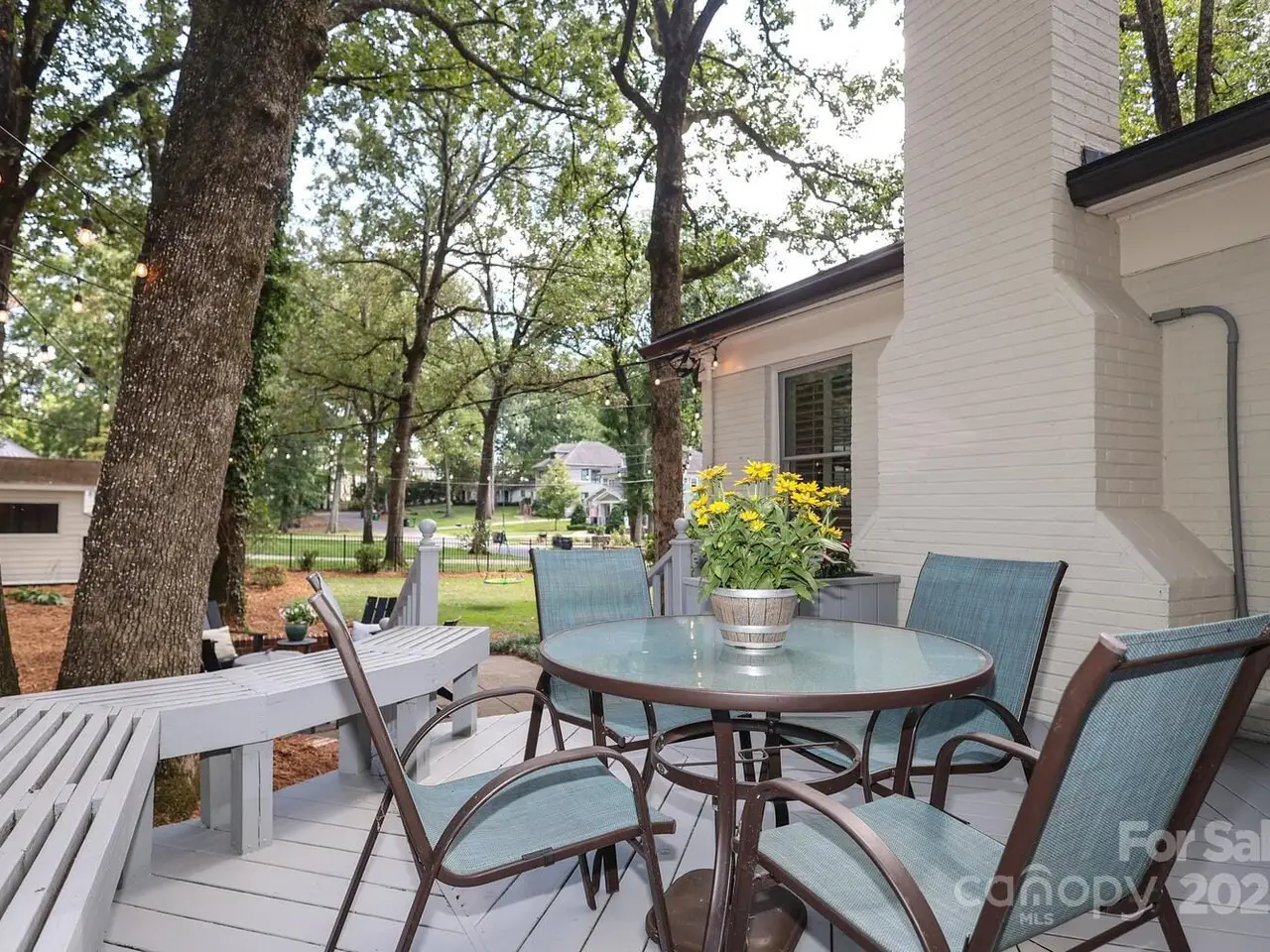 Charming one and a half story, 4BR/3BA home on a private corner lot, on a quiet tree-lined street in Cotswold. Two spacious gathering areas with fireplaces connect to the sunny kitchen with breakfast room, bar, and separate dining room. Main-level primary suite offers three great closets and en suite bath with dual vanities, garden tub & shower. Second main-level BR with full bath is ideal for office, nursery or exercise. Upstairs includes 2 nice sized bedrooms & full bath. Enjoy the outdoor living areas which include deck and patio and features mature shade trees, fenced yard and storage shed. (New tree swing conveys!) Large utility/laundry room with side entrance adds flexibility (not in heated SF). Cotswold is thriving with new breweries, restaurants, retail & grocery options, all minutes from Uptown, SouthPark & Plaza Midwood. Perfect blend of community and convenience.