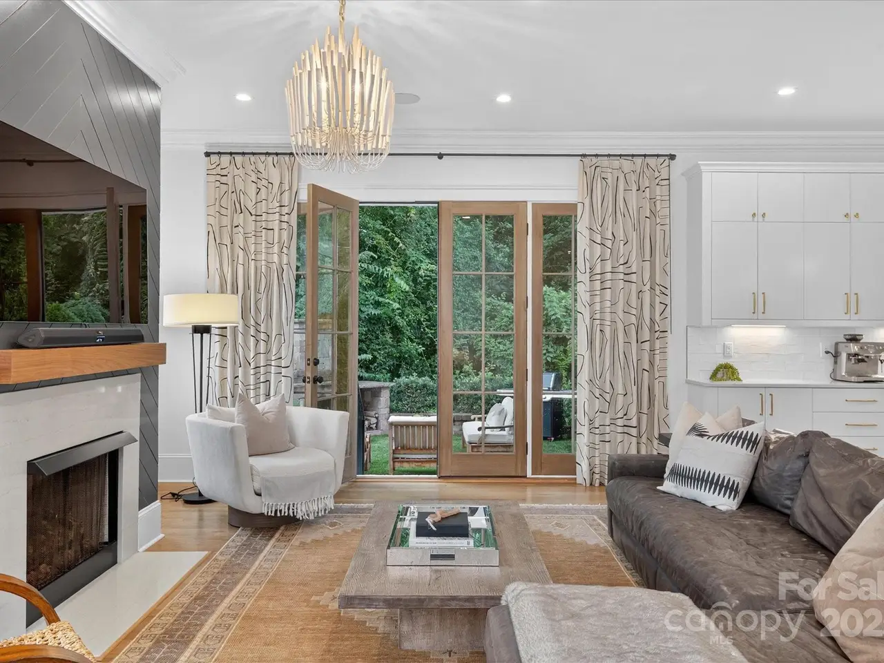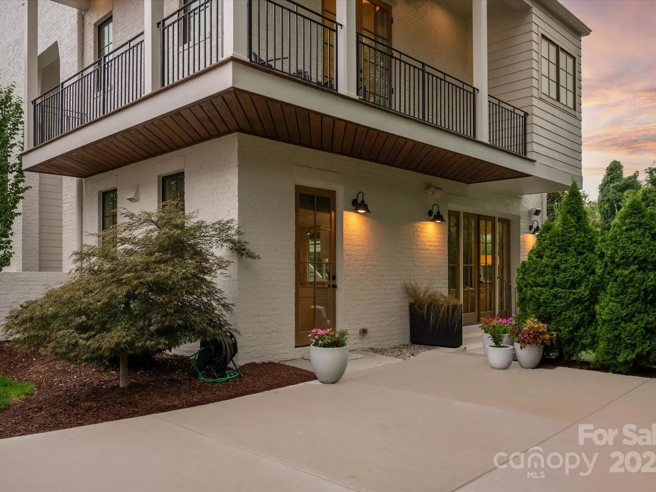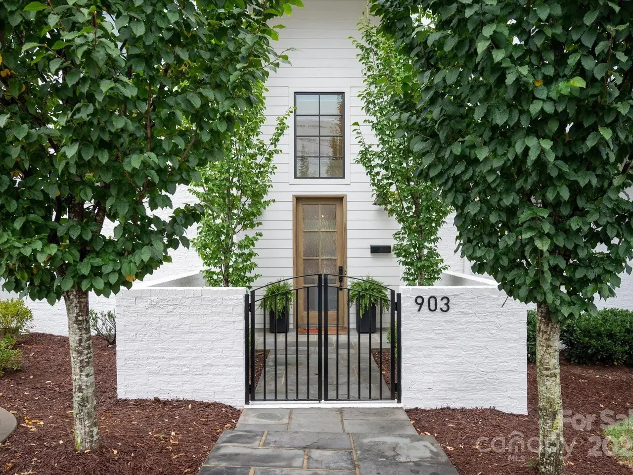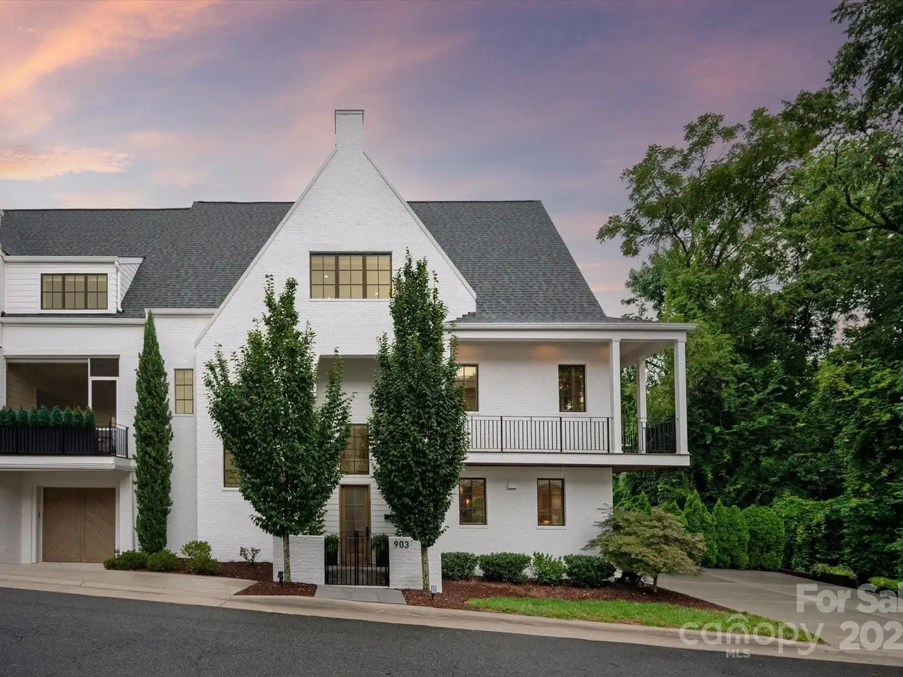 Sophisticated living meets prime walkable Dilworth in this 2019 Grandfather Homes masterpiece. Inspired by the English Farmhouse, this white brick duet lives like a single-family home, featuring white oak hardwoods, soaring ceilings, and sunlit open spaces. The chefs kitchen boasts a quartz-topped island, premium appliances, and seamless flow to the dining area and great room. French doors open to a private patio with a stone fireplace surrounded by lush greenery perfect for indoor/outdoor entertaining. The main floor guest suite offers a full bath and generous closet. Upstairs, the vaulted primary suite features a spa-like bath, expansive walk-in closet, and a wrap-around balcony overlooking serene green space. A secondary bedroom with ensuite bath and laundry complete the level. The third floor hosts a spacious bonus room with wet bar and full bath. This home blends timeless elegance w/modern comfort in one of Charlottes most coveted locations.