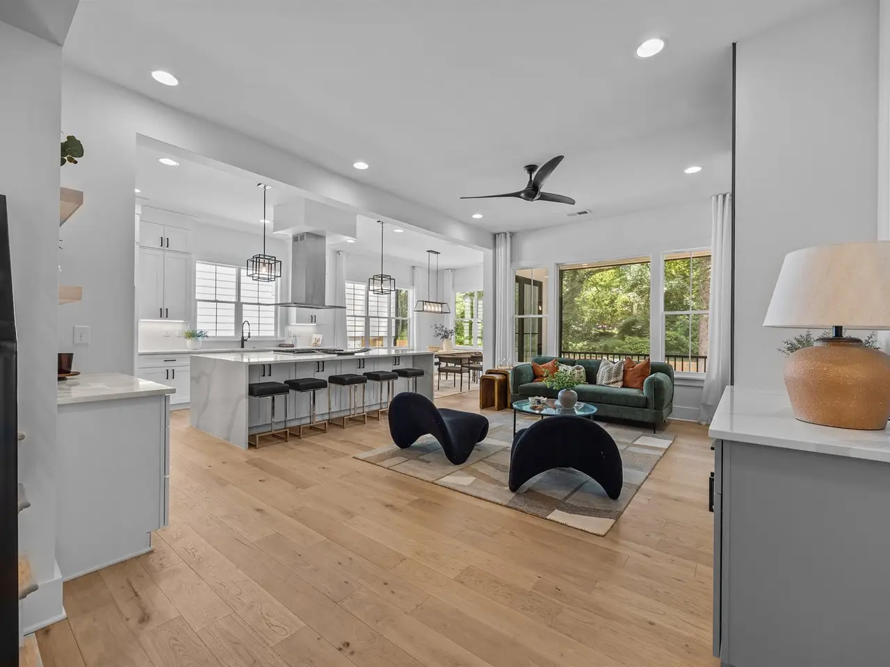 Welcome to this beauty! Thoughtful modern designed with craftsmanship offering comfort, style, and convenience. The open-concept main level features abundant natural light, and a designer kitchen complete with quartz countertops, stainless steel appliances, and a large center island perfect for meal prep or gathering. The private primary suite offers a walk-in closet and a modern bath with dual vanities and sleek finishes. Upstairs, the spacious layout includes a versatile loft, two secondary bedrooms, and a well-appointed flex rooms for entertaining. Enjoy outdoor living on the front porch or rear deck, and take advantage of easy access to Uptown Charlotte, local dining, greenways, and transit.