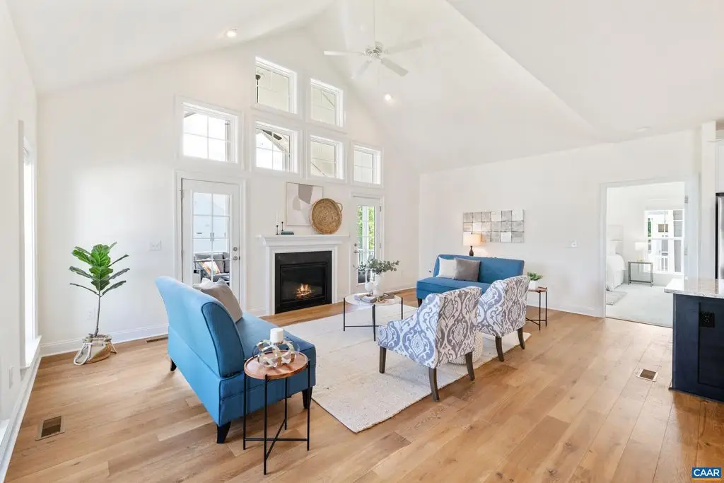 Gas fireplace with soaring cathedral ceiling