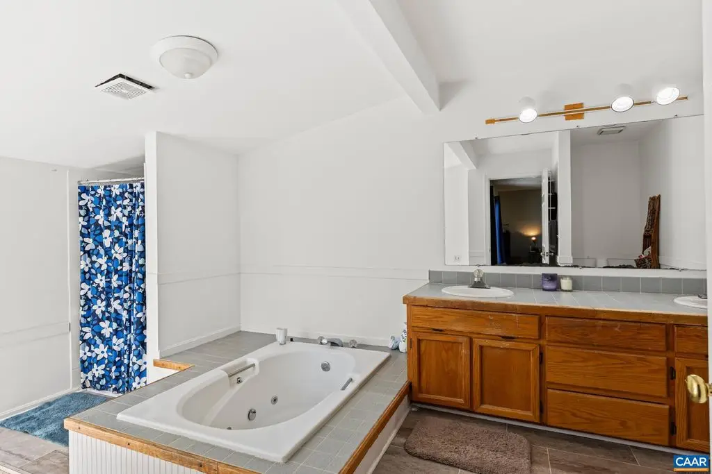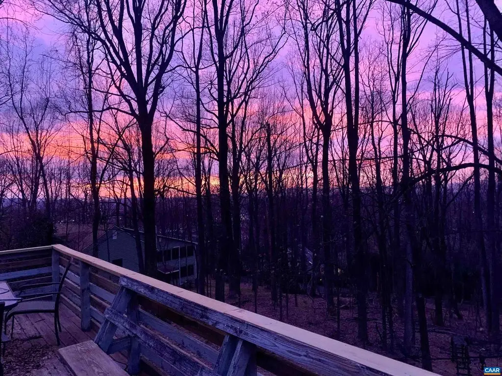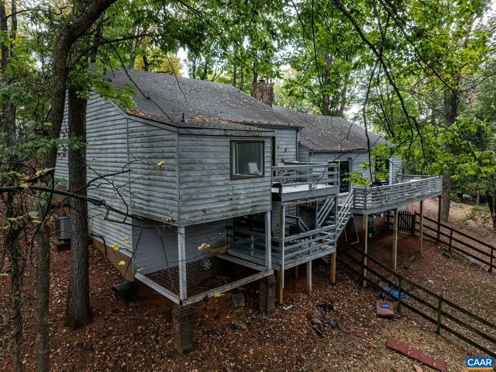 Nestled in the desirable Ashcroft neighborhood, a unique mountainside setting located minutes to Downtown, I-64, hospitals, and shopping. Natural light abounds in this stunning, spacious contemporary on 1.5 private acres, with expansive decks framed by seasonal Blue Ridge views and mature trees. Fenced yard is perfect for pets. This 4BR/3BA home features soaring ceilings, and an open floor plan with dramatic stone fireplace in the living room. The chef in your family will enjoy the kitchen with its large island ideal for gathering and great for entertaining. The primary bedroom suite evokes the feel of a treehouse retreat, featuring large walk-in closet, luxury jacuzzi bath, and its own private deck for enjoying your morning coffee among the treetops and mountains. Generously sized bedrooms, with large closets and ceiling fans. The lower level features a large family room with built-in shelves, ideal for a theater or playroom, the fourth bedroom or guestroom, and full bath with laundry. Expansive two-car garage with cabinets and workspace. With access to Ashcroft's miles of walking trails, pool, tennis, and clubhouse, this home offers the best of mountain living with the convenience of town just minutes away.
