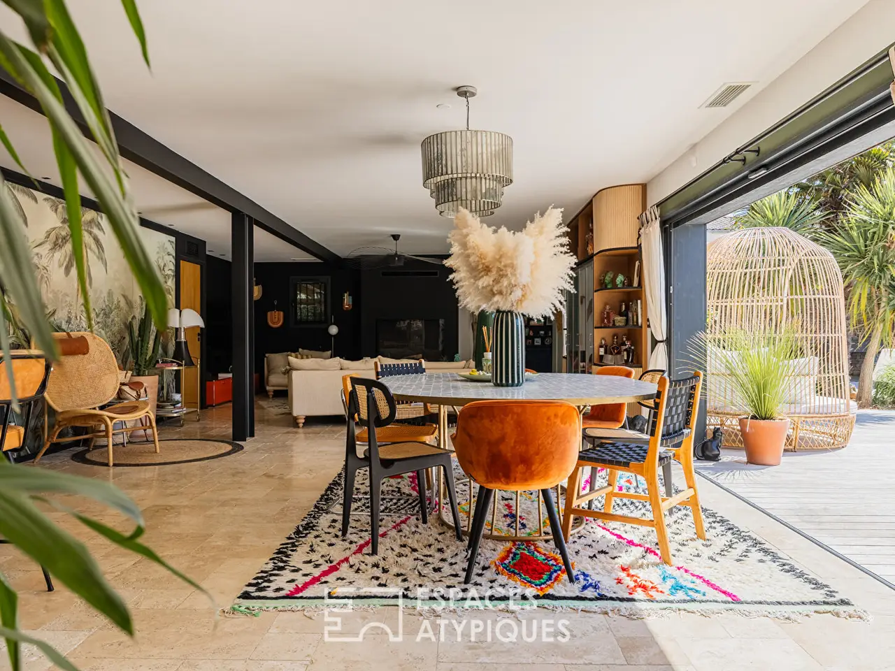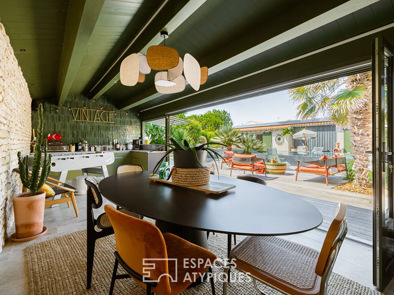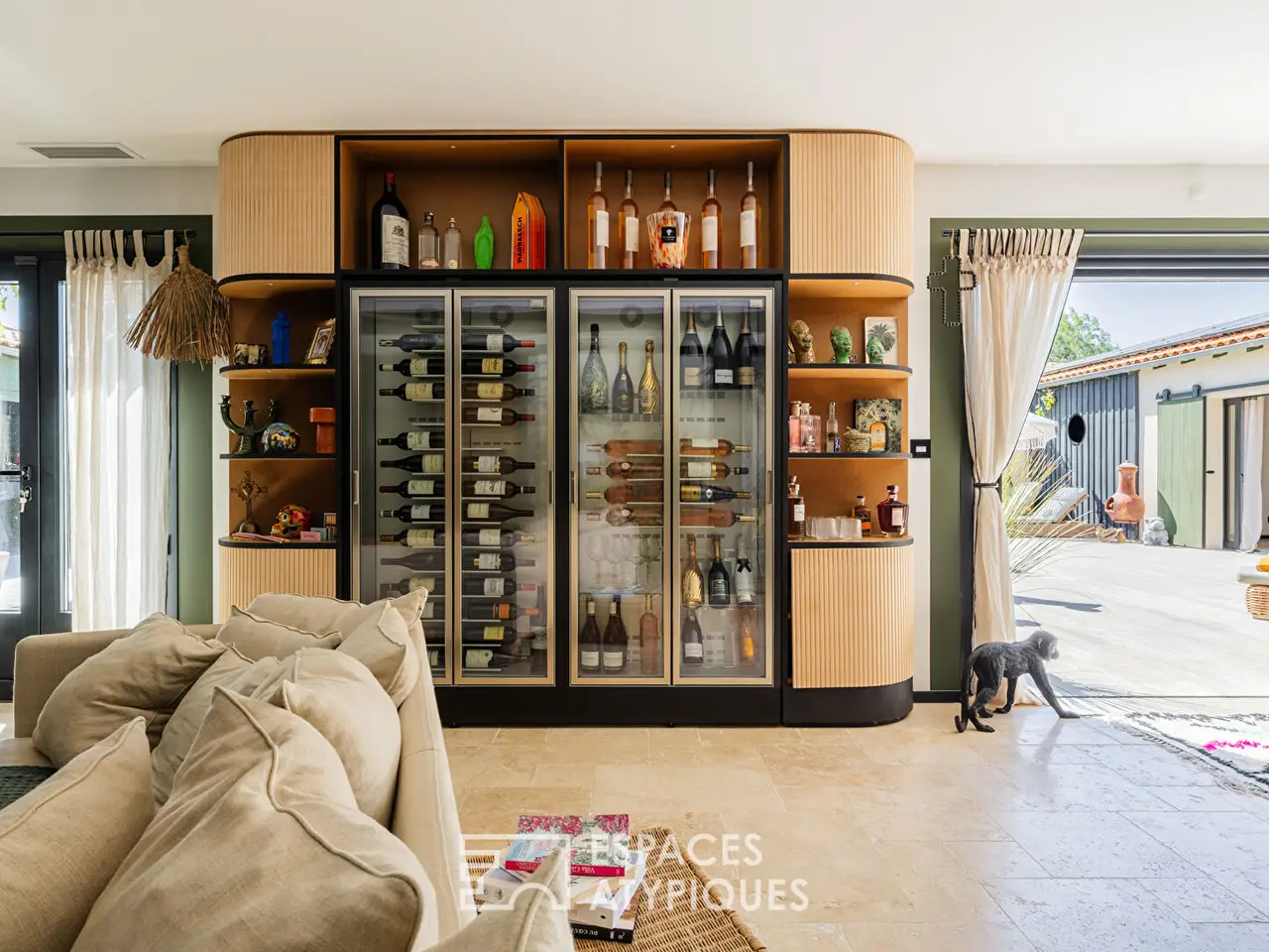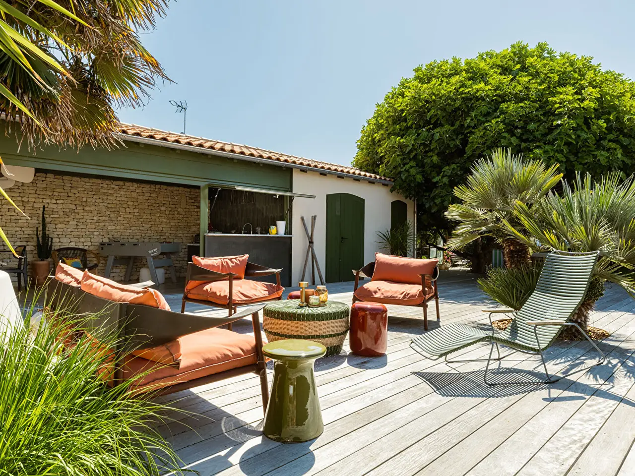Located in a sought-after neighborhood in the commune of Chatelaillon-Plage, this exceptional villa offers a unique living environment, blending elegance and functionality. The entrance leads to a light-filled living room, where a welcoming lounge and dining room harmoniously blend together. A large bay window generously opens the space onto the terrace, creating a natural continuity with the outdoors. In its extension, an office area benefits from a soothing view of the garden. The modern and welcoming kitchen features a comfortable central island, optimizing circulation. The meticulous appointments and noble materials, such as the travertine flooring, give an undeniable cachet to the whole. In one wing, the intimate layout of a master suite with its private bathroom and dressing room reveals a breathtaking view of the pool and garden. In its continuation, a space benefiting from a swim spa allows you to enjoy a water feature year-round. On the same level, a second suite benefits from its own private bathroom. Upstairs, two bedrooms share a bathroom. The design of the house also allows for additional sleeping accommodations as needed. Outside, the landscaped and wooded grounds house various living spaces: a summer lounge, a fully equipped summer kitchen, and a heated swimming pool. The lush vegetation and the furnished pool house create a holiday atmosphere, ideal for entertaining. This villa is a rare find on the real estate market, distinguished by its interior and exterior layout, its careful decoration, and its privileged location. A true haven of peace combining comfort and style. ENERGY CLASS: 'B' / CLIMATE CLASS: 'A'. Estimated average annual energy expenditure for standard use, based on energy prices for the years 2021, 2022, and 2023: between EUR2,020 and EUR2,800. REF. EALR2149 Additional information * 9 rooms * 4 bedrooms * 3 shower rooms * Outdoor space : 1115 SQM * Parking : 5 parking spaces Energy Performance Certificate Primary energy consumption b : 96 kWh/m2.year High performance housing