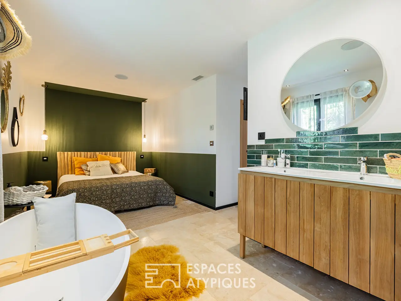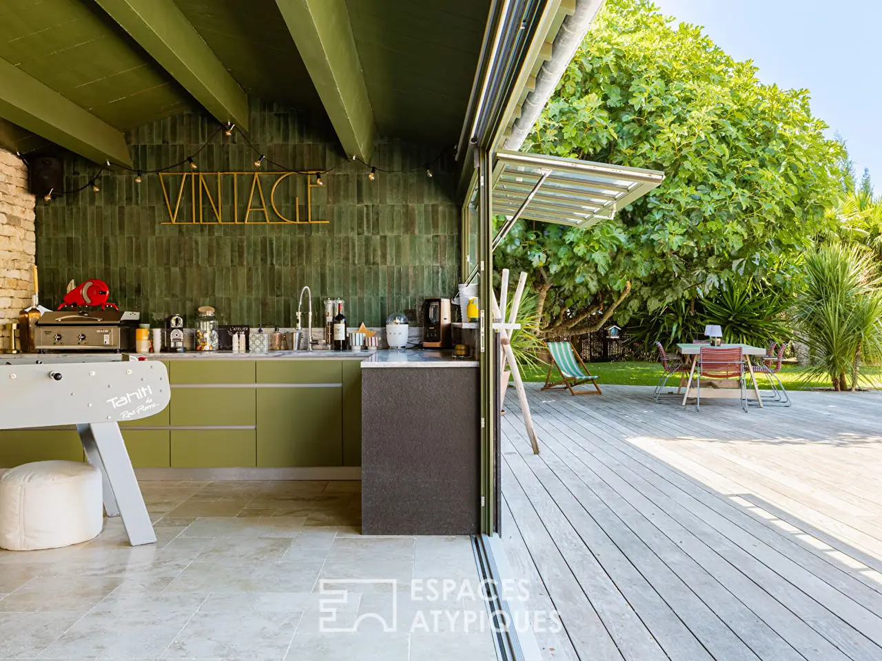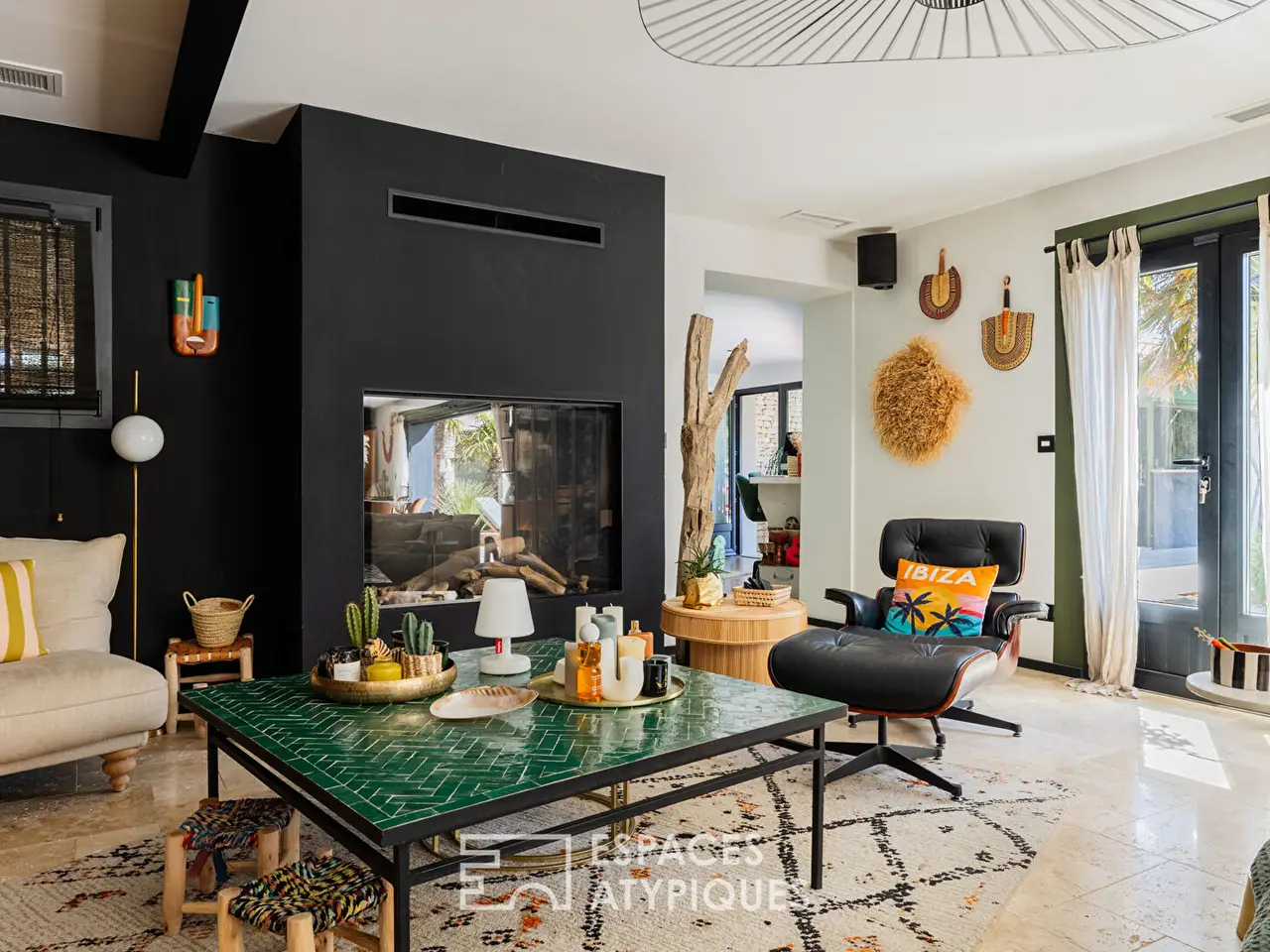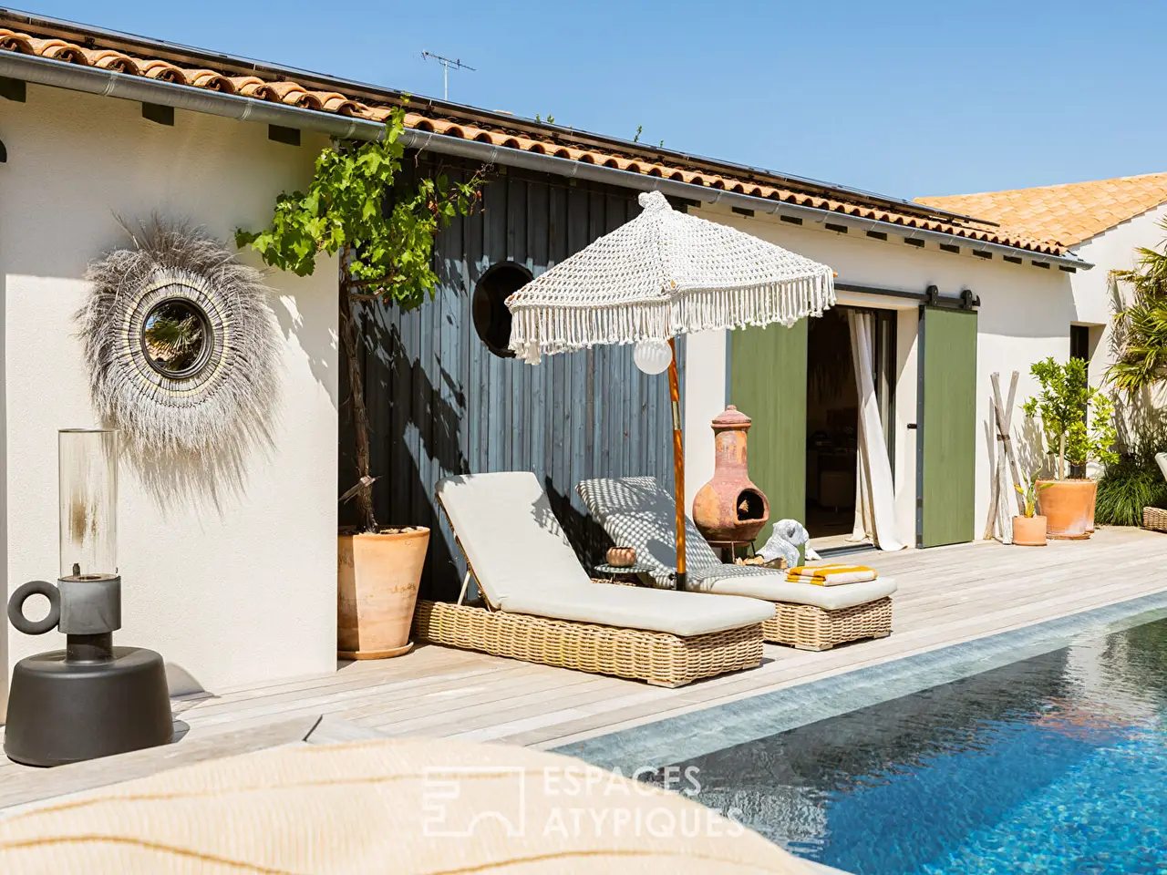 Located in a sought-after neighborhood in the commune of Chatelaillon-Plage, this exceptional villa offers a unique living environment, blending elegance and functionality. The entrance leads to a light-filled living room, where a welcoming lounge and dining room harmoniously blend together. A large bay window generously opens the space onto the terrace, creating a natural continuity with the outdoors. In its extension, an office area benefits from a soothing view of the garden. The modern and welcoming kitchen features a comfortable central island, optimizing circulation. The meticulous appointments and noble materials, such as the travertine flooring, give an undeniable cachet to the whole. In one wing, the intimate layout of a master suite with its private bathroom and dressing room reveals a breathtaking view of the pool and garden. In its continuation, a space benefiting from a swim spa allows you to enjoy a water feature year-round. On the same level, a second suite benefits from its own private bathroom. Upstairs, two bedrooms share a bathroom. The design of the house also allows for additional sleeping accommodations as needed. Outside, the landscaped and wooded grounds house various living spaces: a summer lounge, a fully equipped summer kitchen, and a heated swimming pool. The lush vegetation and the furnished pool house create a holiday atmosphere, ideal for entertaining. This villa is a rare find on the real estate market, distinguished by its interior and exterior layout, its careful decoration, and its privileged location. A true haven of peace combining comfort and style. ENERGY CLASS: 'B' / CLIMATE CLASS: 'A'. Estimated average annual energy expenditure for standard use, based on energy prices for the years 2021, 2022, and 2023: between EUR2,020 and EUR2,800. REF. EALR2149 Additional information * 9 rooms * 4 bedrooms * 3 shower rooms * Outdoor space : 1115 SQM * Parking : 5 parking spaces Energy Performance Certificate Primary energy consumption b : 96 kWh/m2.year High performance housing