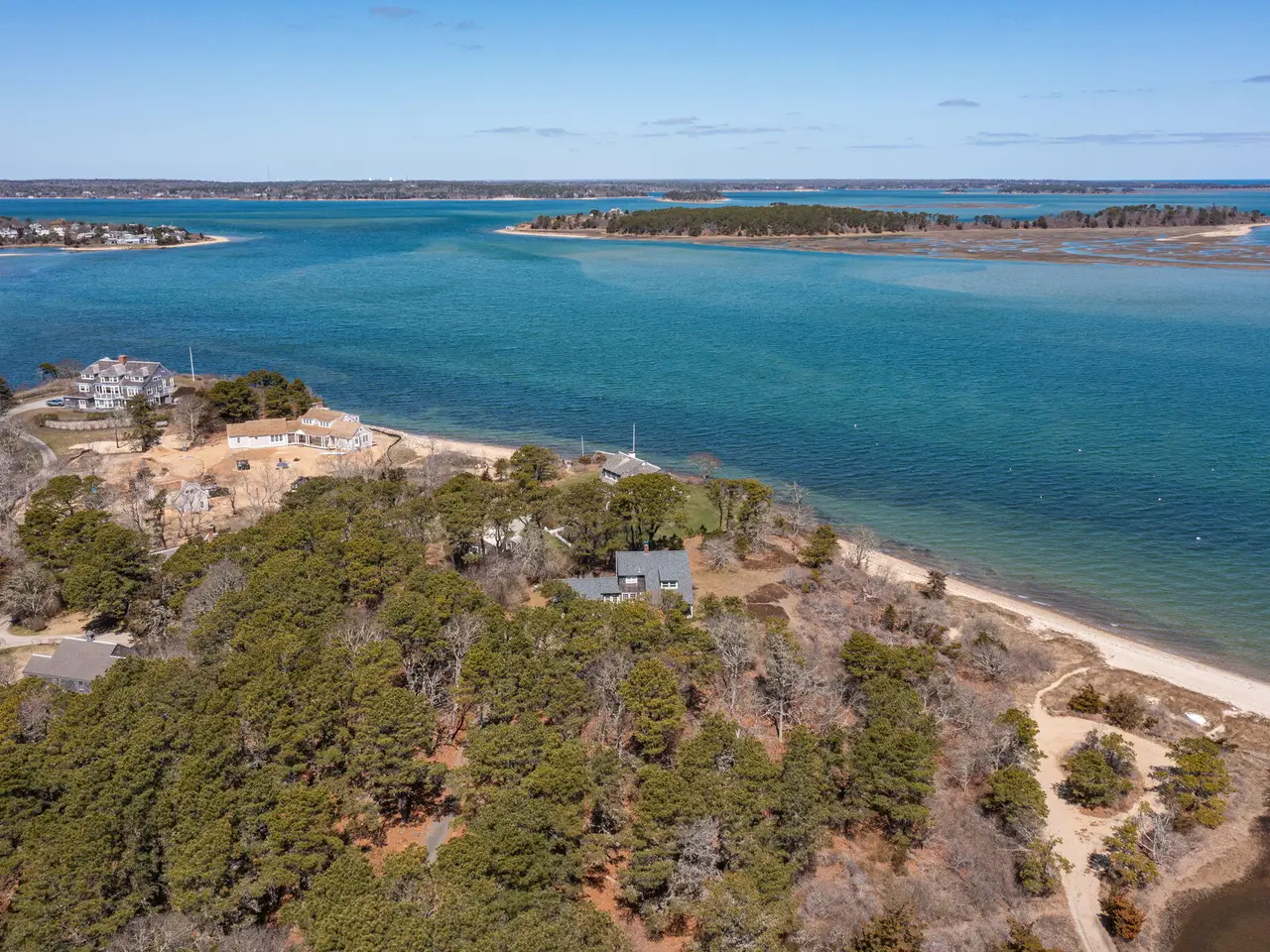 This private oasis in North Chatham , hidden by a long and winding lane, takes you into the past. A spectacular historic setting including natural vegetation rests on one of the last large water front parcels in Chatham. Surrounded by over 1.5 acres, with opportunities for a family compound on a fabulous bluff overlooking, and ownership of, prime beach front on Chatham Harbor, Pleasant Bay, and the Atlantic Ocean beyond. Over 114 feet of private beach protected by a beautiful rock revetment. Quick salt water access to anywhere by boat from your own beach. A perfect spot for relaxing, entertaining under the sun or stars and creating lasting memories .This coastal property features panoramic water views, five bedrooms, three baths, and 1850+ square feet of living space to leave as you will or make it your own... A 69,000 plus square foot lot in R 40 zone would allow a guest house and a pool with town approvals in addition to the main house. A short jaunt to Main Street, Chatham Bars Inn and Wequassett, and all that Chatham has to offer....Buyers and agents should verify all information herein.