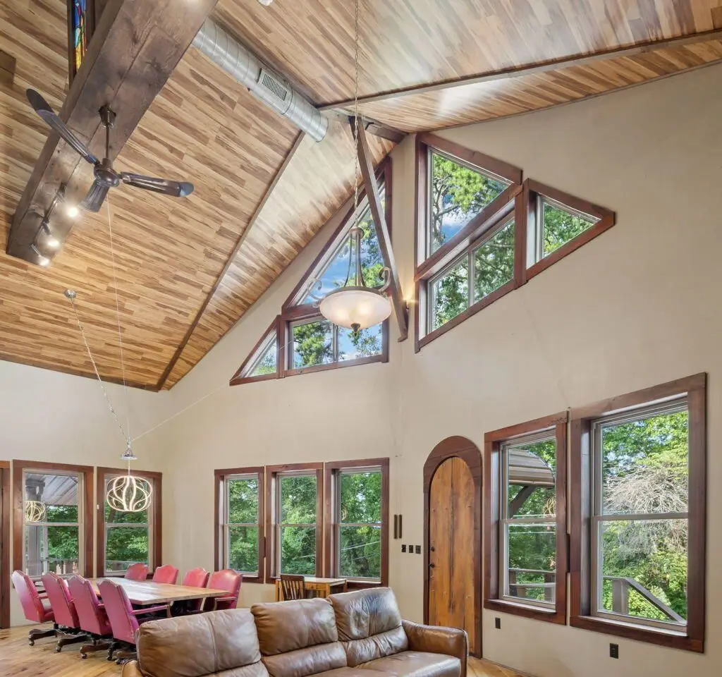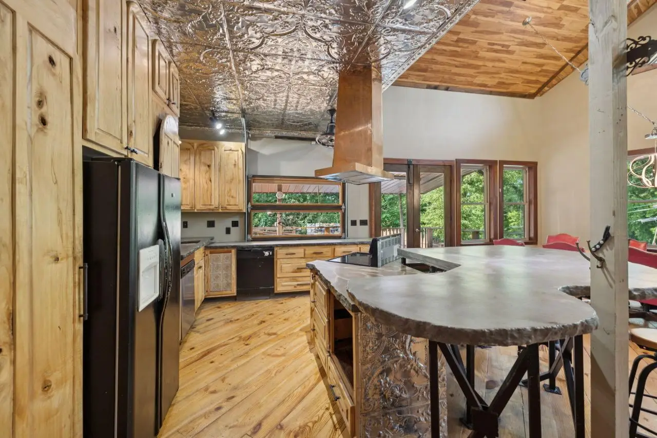 Eclectic Haven Discover 1014 Meroney Street, an eclectic 3-bedroom, 3.5-bathroom custom home on 0.82 acres in a tranquil cul-de-sac North Chattanooga. Just over a mile from Coolidge Park's vibrant shops and dining. This gem welcomes you with an 8-foot round-top front door with metal straps, a circular driveway, and two large rear garages for ample parking. The side deck offers ridge views, sunrises, sunsets, and distant festival music or fireworks, an outdoor kitchen with a sink and grill.Step inside to locally sourced wood floors, crafted from felled trees, atop 10-12-inch concrete basement walls. The kitchen dazzles with concrete countertops, a large concrete island, spalted maple cabinets with roll-out drawers and spice racks, two dishwashers, and a glass garage door connecting to the outdoor kitchen. It opens to a great room with 26-foot angled ceilings and a 9'x4' custom dining table, perfect for entertaining. The master suite features an 8-foot glass door to a wraparound deck, three large windows for sunrise views, and a bathroom with a concrete countertop, dual sinks, eclectic slate-like tile, an open stone shower, and a jetted tub with instant hot water. A cedar-lined master closet connects to the laundry room for convenience, and the guest bathroom sports a concrete countertop with a bowl sink. Double-hung windows with lifetime warranties and a whole-house exhaust fan enhance functionality. Ascend to an eclectic game room/art studio with industrial floors and a private deck boasting Lookout Mountain views. Two bedrooms with 4x8 closets and a bathroom with a concrete countertop complete the space. A pulley system simplifies moving furniture upstairs.The unfinished basement spans the home's footprint, featuring a storm shelter with a half bath, a workshop with antique doors, and ample space for customization.A painting of the home's love story, created by the artist owner, awaits the new buyer. Schedule a tour of this eclectic masterpiece today!