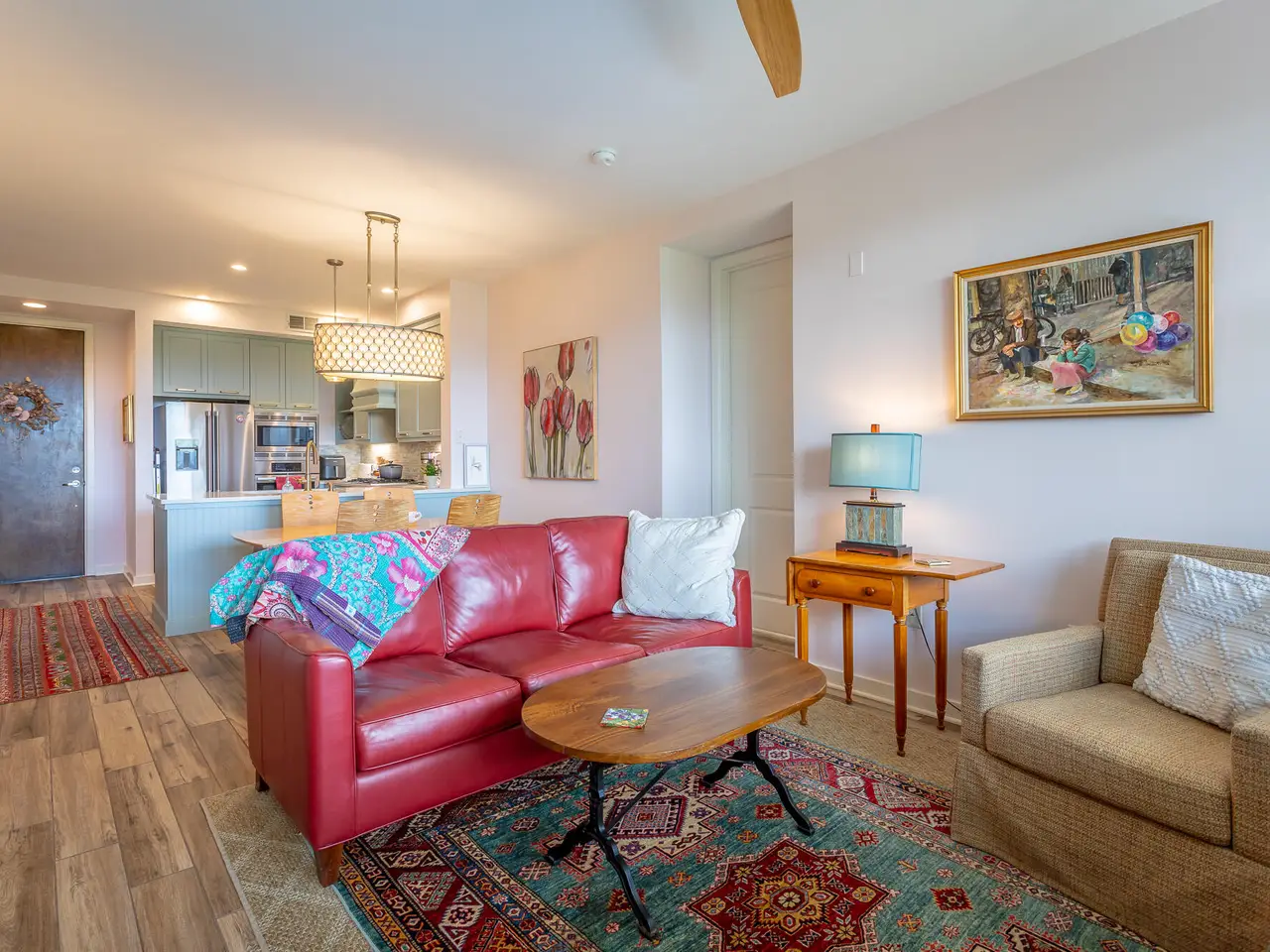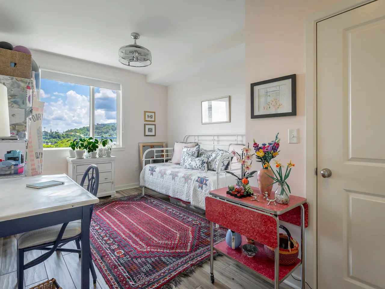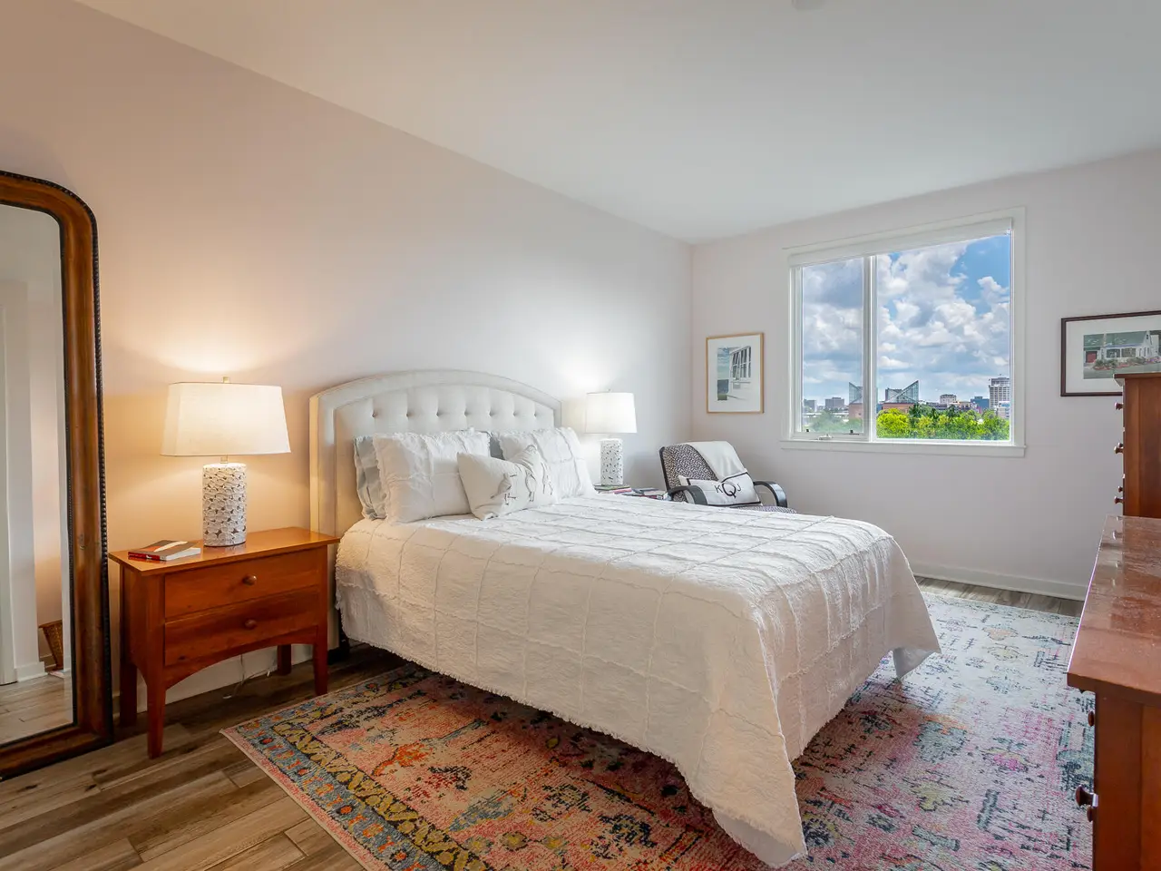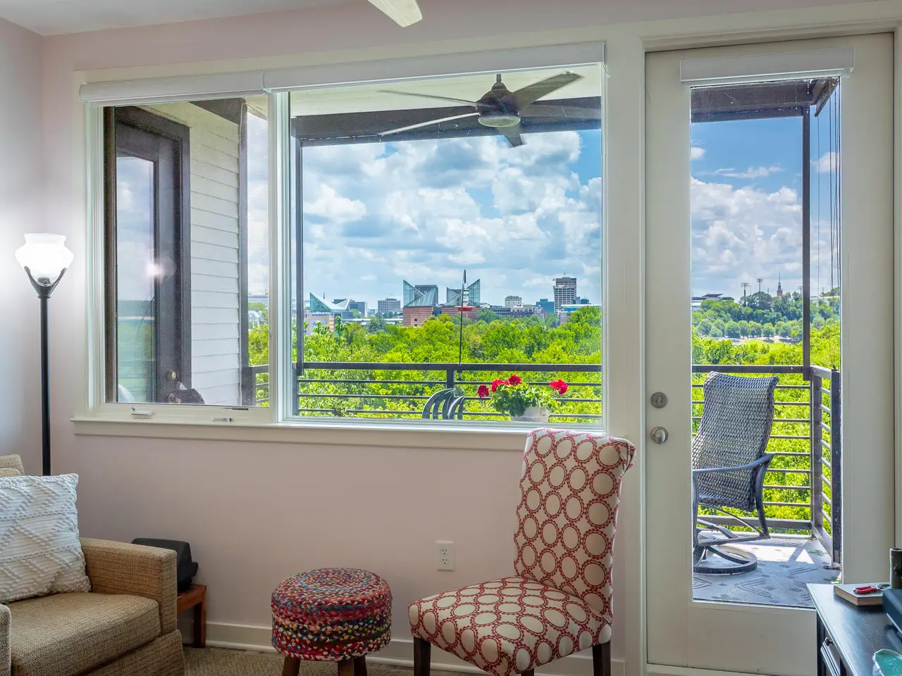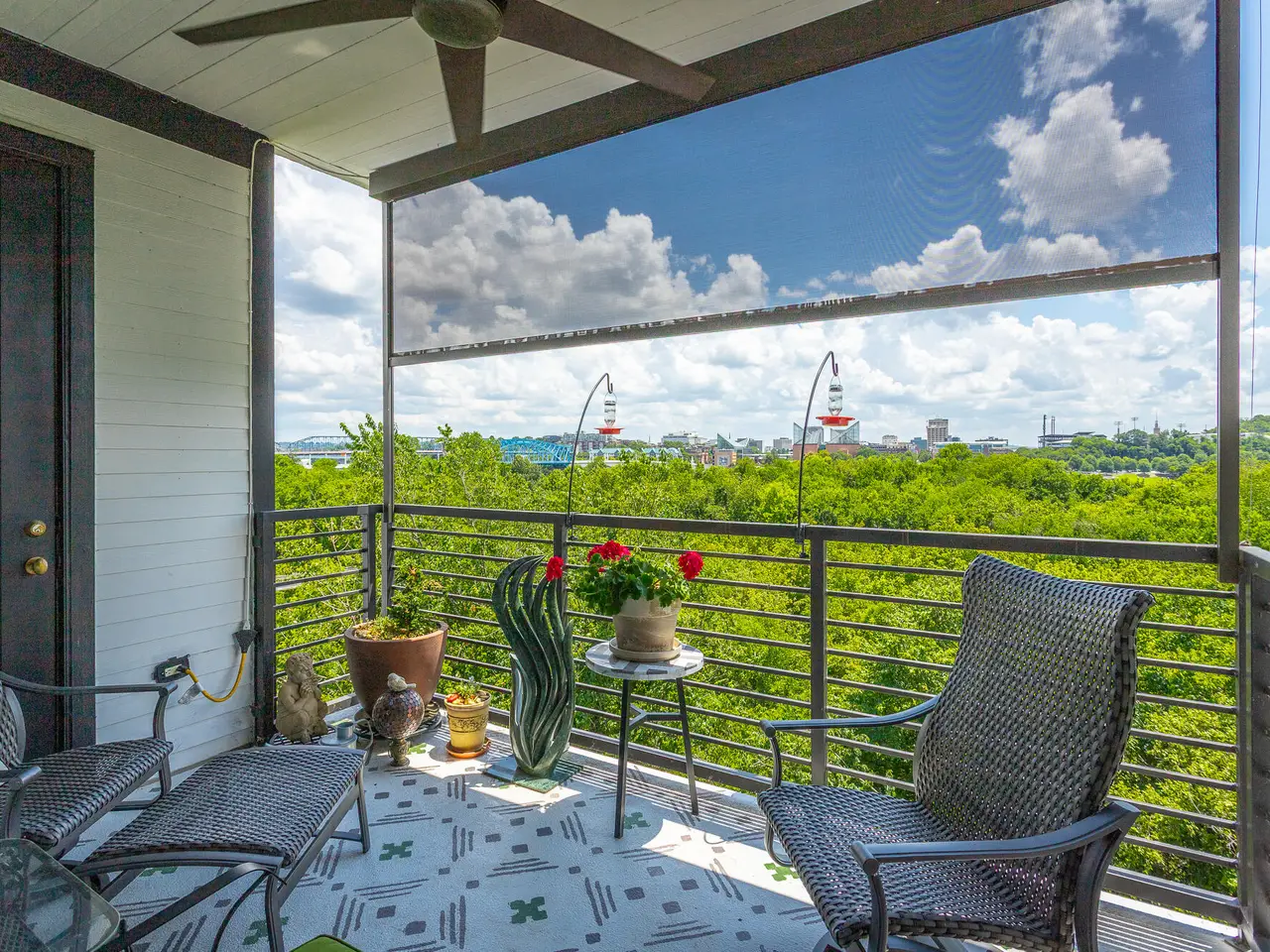 Enjoy sensational downtown and river views from this updated 2BR/2BA + bonus room condo at popular One North Shore. The unit has open floorplan and extra large covered balcony with electric sun shades for relaxing and taking in the amazing views. The balcony is easily accessed from both the main living area and the master bedroom. Owner has thoughtfully updated the home with custom cabinetry, quartz countertops, Bosch and Maytag stainless appliances, and a built in pantry in the kitchen, handsome porcelain floors throughout, and a totally new master bath with custom shower and vanity. The guest bath was also renovated, and the HVAC was replaced in 2023. The unit has 2 side by side assigned parking spaces in the main level of the gated garage. Additional 10X13 deeded storage space (located down the hall from the unit) is available for separate purchase. Ask listing agent for details. One North Shore amenities include on-site property management, very spacious Penthouse Clubroom boasting some of the best views in the city, resort style pool and cabana, outdoor fireplace gathering area, fitness room, and dog walking area. One North Shore is adjacent to Renaissance Park on Chattanooga's North Shore and affords great walkability and bikeability to Whole Foods, shopping, restaurants, entertainment venues, and all riverfront activities. This turn-key unit won't last long!!