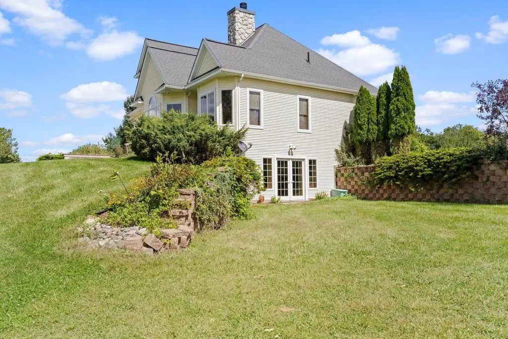 Beautiful country home on 55 acres for sale near historic Chelsea, MI. Custom built in 2007, this stunning house is situated atop a hill overlooking a 1/4 acre spring fed pond and hundreds of acres of high quality nature preserves. Scenic views throughout the home advertise the true beauty of this incredible property. With peaceful areas of woodland, pastures, marsh, fen and field, this is a nature lover's paradise! Step inside this small country estate and you will be enamored by the craftsmanship and attention to detail. Complete with 4 bedrooms and 3 full baths, this home boasts nearly 3,400sq/ft of finished living space. Walking through the front entry, there is a tiled foyer with storage closet, as well as a small family room/den with gas fireplace. The spacious primary level master suite offers comfort and convenience, with 2 walk in closets and a master bath complete with bubble tub and walk-in shower. The living room has cathedral ceilings, large bay windows, a marble-tiled wood burning fireplace, and an open floor plan that flows seamlessly into the kitchen and dining area. The charming kitchen has granite counter tops, cherry stained wood cabinets, stainless steel appliances and double French doors leading out to the 1,200sqft composite deck. Just around the corner is an elegant "butler style" room with utility sink, laundry closet, and full bathroom. This leads out to the 2-1/2 car garage that is fully insulated and heated/cooled. The cherry wood staircase takes you up to the second floor complete with the remaining 3 bedrooms and full bath. The walkout basement with french doors offers another whole living area. This finished space has 9' ceilings, a large family room, library, office space, and 2 storage closets. The utility room houses a 3 zone furnace, large hot water heater, full house vacuum, and is plumbed for additional bathroom. The property also comes with a large tobacco style pole barn that features a workshop, horse stalls, and a partially finished studio apartment with full kitchenette, bathroom, stacked laundry and pantry. Additionally, there is a garden shed and chicken coop with fenced in run. Conveniently located just 4 miles from downtown Chelsea, 16 miles from Ann Arbor, and just minutes away from the Waterloo Recreational area, this unique property offers the perfect blend of country living and accessibility. Exceptional location and incomparable views truly make this home one of a kind. Property sale includes 2 parcels. F-06-28-100-027 & F-06-28-100-028. 50 acre parcel is under conservation easement with the Washtenaw County Parks and Recreation Department.