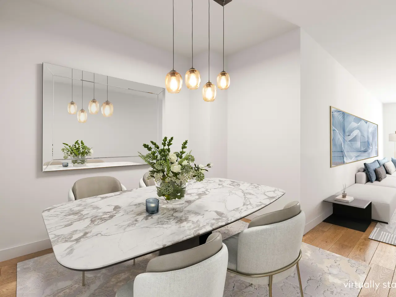 This is a condominium which requires submission of a condo online rental application. In Unit Washer/Dryer. Residence 6E is a beautifully designed two-bedroom, two-bathroom unit offering approximately 1,430 square feet (per offering plan) of stylish living space in the heart of Chelsea. Designed by Garett Gourlay and completed in 2008, this corner home showcases floor-to-ceiling windows, open city and sky views, and an abundance of natural light from South, East, and West exposures. The open kitchen features a breakfast bar finished with Zimbabwe black granite countertops, and top-of-the-line appliances including Sub-Zero refrigerator with two drawer freezer, Miele 5-burner gas cooktop, double convection oven, microwave, U-Line wine refrigerator and built in Nespresso system. A separate dining area easily accommodates a six-person table or can double as a home office. With its split-bedroom layout, the residence offers ideal privacy. The oversized primary suite features two closets including one customized walk-in, and a luxurious en suite bath with dual vanity, soaking tub and separate walk-in shower. On the opposite side of the home, the second bedroom comfortably fits a king-sized bed and includes its own custom closet. A second full bathroom with soaking tub and shower can be found close by. Modern comforts include nearly 10ft ceilings, in-unit washer/dryer (vented), in-sink garbage disposal, wide-plank oak hardwood floors and numerous oversized closets. Building amenities include 24-hour doorstaff, full-time super, fitness center, bike room, and a package room with cold storage. On the second floor, residents enjoy access to a meeting room with a catering kitchen and an entertaining terrace. A beautifully furnished, ADA-accessible 3,500 SF common roof terrace offers a grilling station and iconic panoramic views spanning from Chelsea to Tribeca and featuring the Empire State Building and World Trade Center. Perfectly situated, this full-service condominium offers the best of prime Chelsea, just moments from Westside Market, Trader Joe's, Whole Foods and Fairway. Convenient subway and bus access ensures seamless connections throughout Manhattan, with Union Square, the Flatiron District, and Greenwich Village only minutes away. Select images have been virtually staged for design inspiration. Please contact us to schedule a private showing. Pets case-by-case. Upfront Tenant's Fee Disclosure: First month's rent; One month's security deposit, Move in deposit $500; Move in fee $1,000; Move out fee $1,000, Online application processing fee $65; Application Administration fee 5% of total