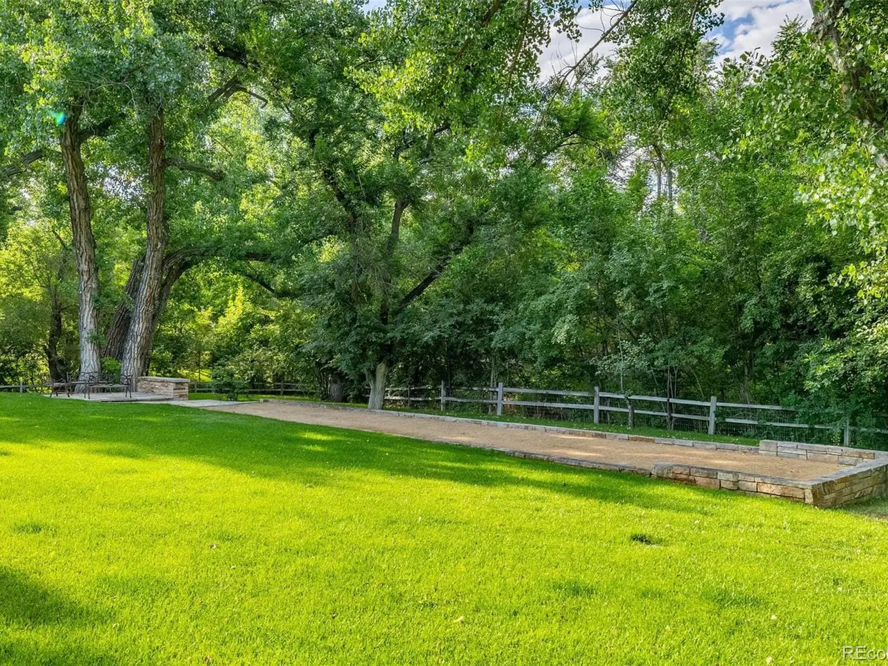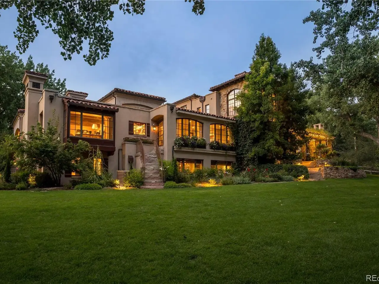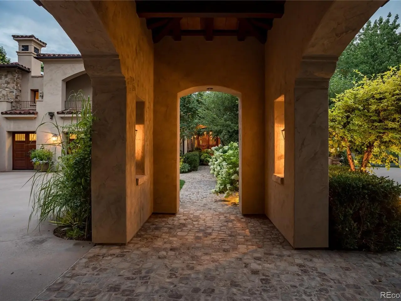 Residing at the end of a private lane and backing to Little Dry Creek, this magnificent property spans nearly 2 acres. Gated circular drive & porte-cochre invite you to this European style residence, incorporating uncompromising architecture, outstanding craftsmanship, customized details + stunning natural surroundings. Remarkable park-like grounds are comprised of multiple patios including an incredible space featuring outdoor fireplace & expansive vine-covered arbor, perfect for al fresco dining. Garages accommodating 4 cars feature epoxy floor coating + snow melt at the car court, courtyard & north walkway. Amazing flex space in the 650sf garage attic + a Martha Stewart potting shed. Enjoy gathering with friends at the bocce ball court, and watching sunsets over the exquisite pond, the epitome of outdoor activity & relaxation. Dramatic entry brings you into the thoughtfully designed dining & living rooms overlooking the impressive backyard with doors leading to the balcony. Well-equipped kitchen features attractive hand-painted tile, an original Scott Yablonski, signed by the artist; and accented by a colorful butlers serving area. Sumptuous primary boasts illuminating sunlight with patio, 6pc bath & walk-in closets + adjacent guest en suite. Vast lower level includes 2 en suites, family/game room, wine room, study, gym, laundry + storage. Richly accented with reclaimed hardwood floor, plastered walls, artistic wrought iron, custom carved European stone fireplaces & exquisite lighting fixtures. Handsome stone staircase leads you to a private suite with 4pc bath, coffee bar & patio elevated above the courtyard. A landmark property - a perfect private sanctuary or wonderful place to entertain on a small or grand scale. High ceilings + expansive doors & windows invite lively interplays of light & color. One of the most revered locations in Old Cherry Hills, this exceptional property offers an unmatched combination of privacy & proximity to so many amenities.