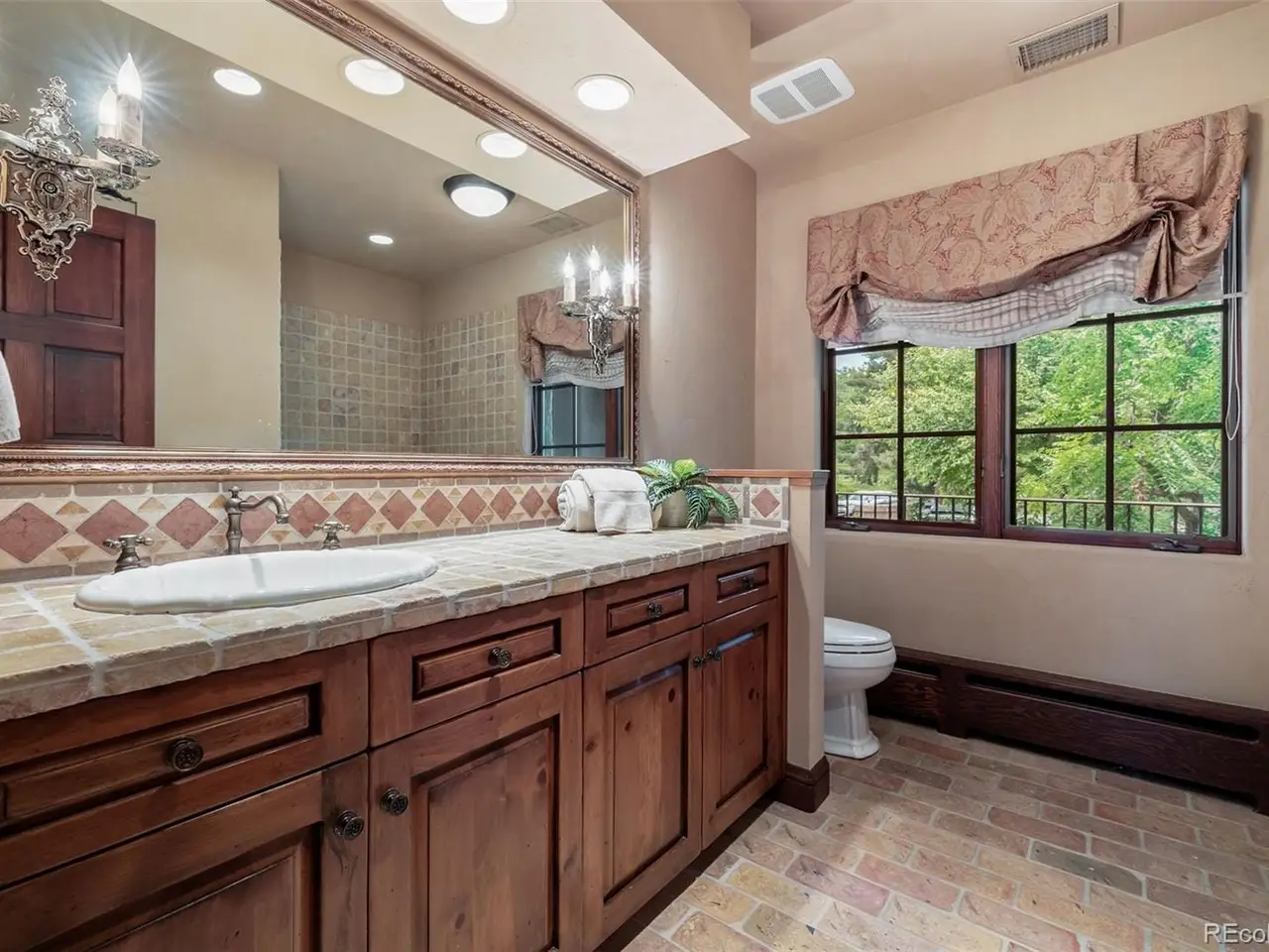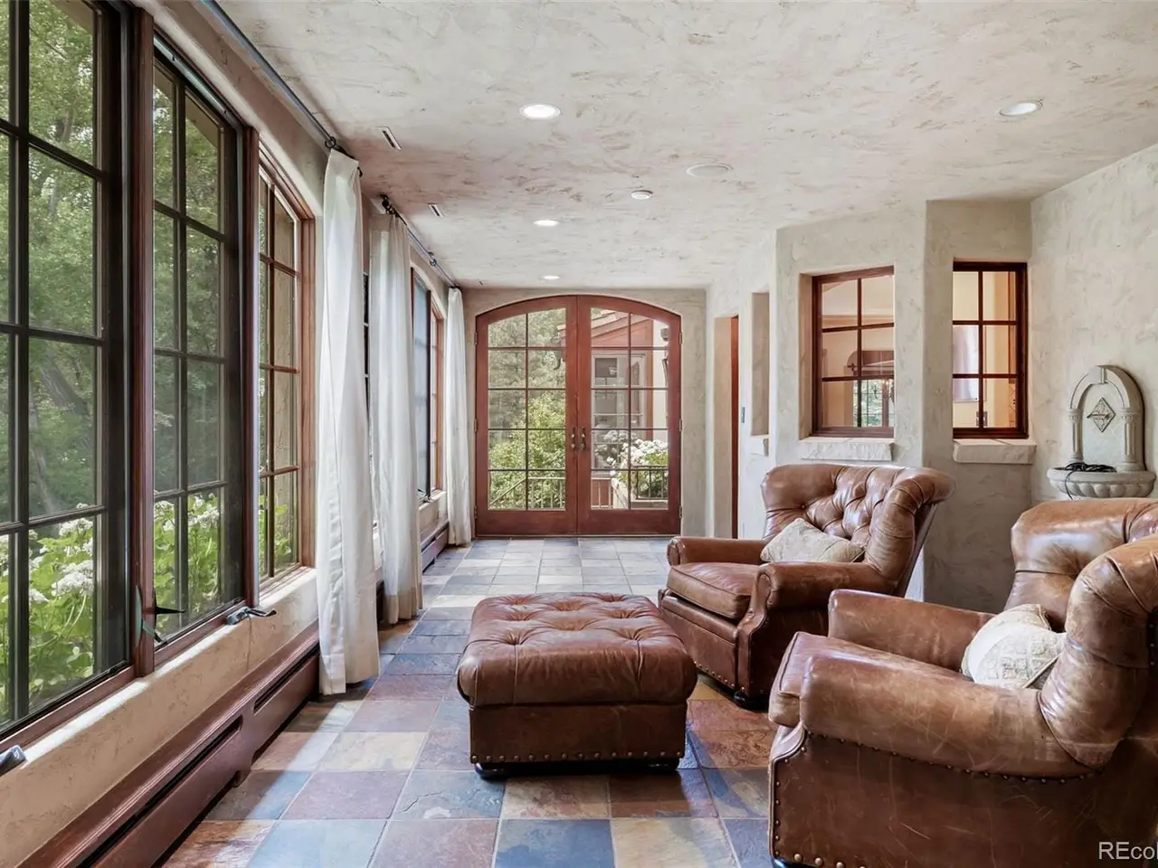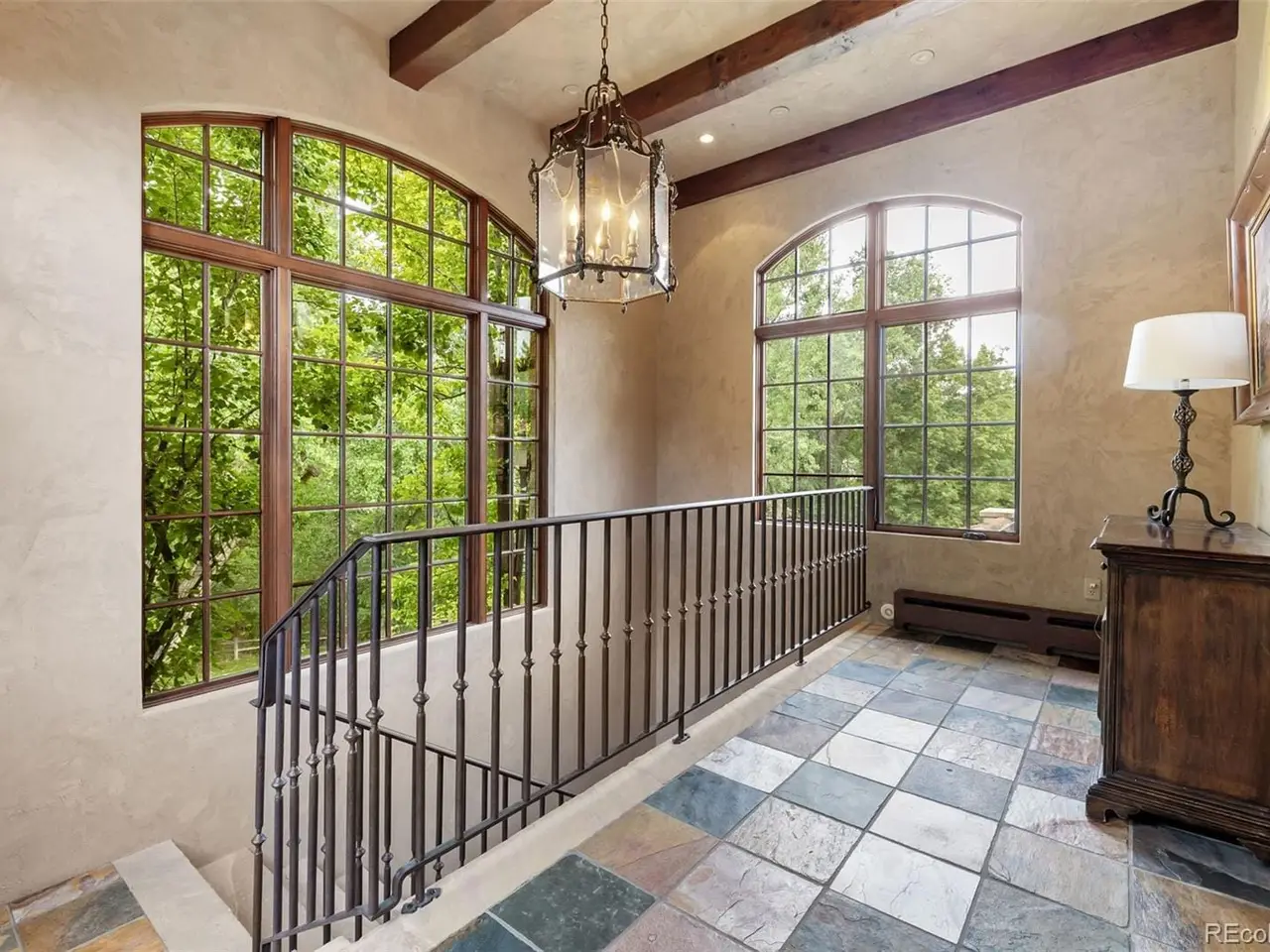 Residing at the end of a private lane and backing to Little Dry Creek, this magnificent property spans nearly 2 acres. Gated circular drive & porte-cochre invite you to this European style residence, incorporating uncompromising architecture, outstanding craftsmanship, customized details + stunning natural surroundings. Remarkable park-like grounds are comprised of multiple patios including an incredible space featuring outdoor fireplace & expansive vine-covered arbor, perfect for al fresco dining. Garages accommodating 4 cars feature epoxy floor coating + snow melt at the car court, courtyard & north walkway. Amazing flex space in the 650sf garage attic + a Martha Stewart potting shed. Enjoy gathering with friends at the bocce ball court, and watching sunsets over the exquisite pond, the epitome of outdoor activity & relaxation. Dramatic entry brings you into the thoughtfully designed dining & living rooms overlooking the impressive backyard with doors leading to the balcony. Well-equipped kitchen features attractive hand-painted tile, an original Scott Yablonski, signed by the artist; and accented by a colorful butlers serving area. Sumptuous primary boasts illuminating sunlight with patio, 6pc bath & walk-in closets + adjacent guest en suite. Vast lower level includes 2 en suites, family/game room, wine room, study, gym, laundry + storage. Richly accented with reclaimed hardwood floor, plastered walls, artistic wrought iron, custom carved European stone fireplaces & exquisite lighting fixtures. Handsome stone staircase leads you to a private suite with 4pc bath, coffee bar & patio elevated above the courtyard. A landmark property - a perfect private sanctuary or wonderful place to entertain on a small or grand scale. High ceilings + expansive doors & windows invite lively interplays of light & color. One of the most revered locations in Old Cherry Hills, this exceptional property offers an unmatched combination of privacy & proximity to so many amenities.
