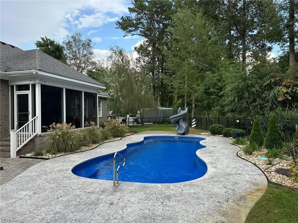 Welcome to 1100 Redding Ct in Chesapeake! This 4-bedroom, 3.5-bath home, built in 2017, is packed with upgrades and custom features. The spacious primary suite offers a luxurious en suite bath, while the backyard is a true retreat with a built-in fiberglass swimming pool and slide. Extras include Low E Anderson Windows, Gas Cooktop, Electric Oven, Rinnia Tankless Hot Water Heater, pocket doors, an insulated garage, high crawl space with lighting, a well for irrigation, security system, and 5-ft metal fencing. For RV enthusiasts, enjoy 50-amp hookups and a sewer connection. This home has it all - schedule your showing today!