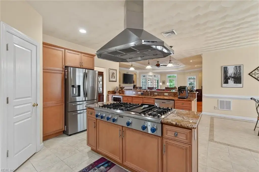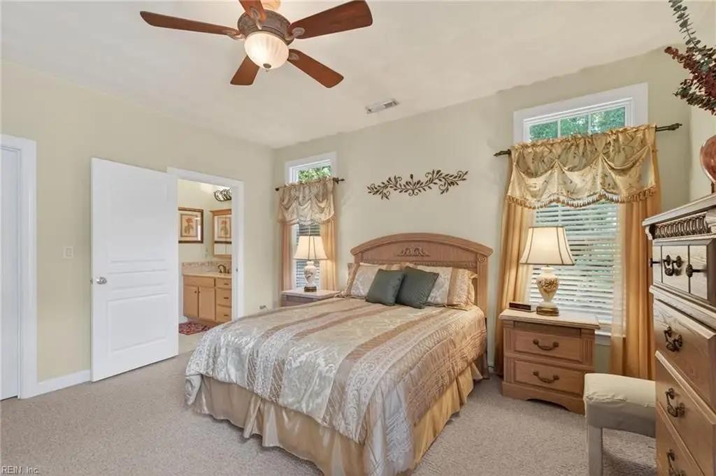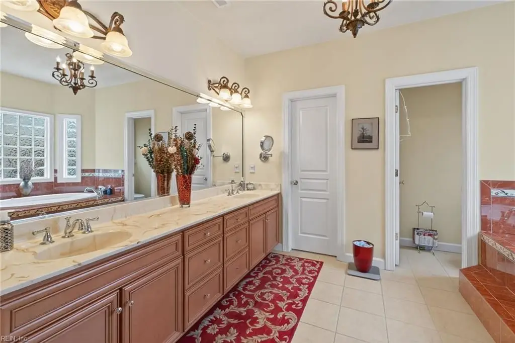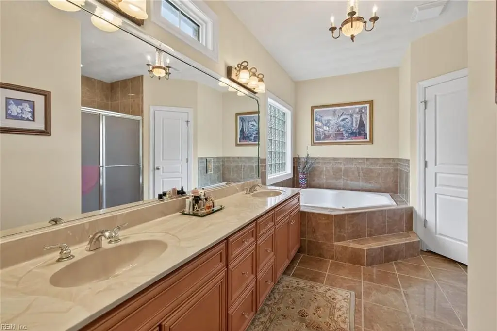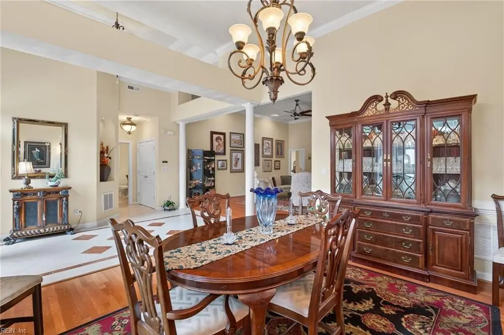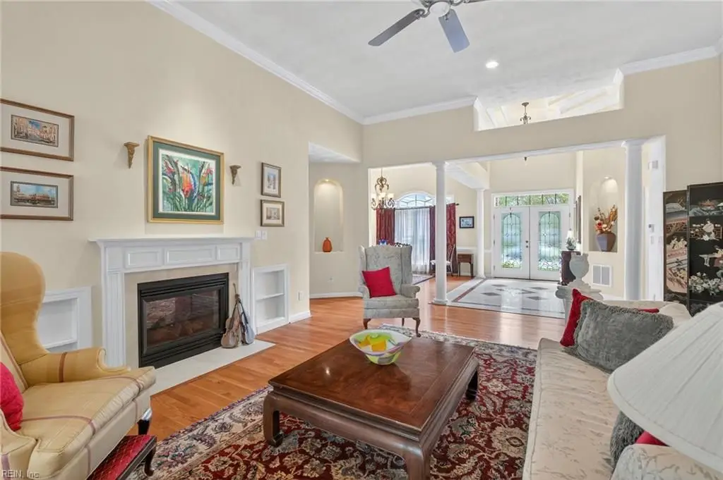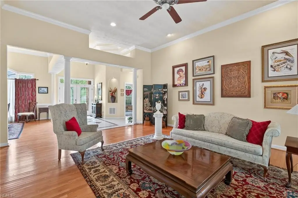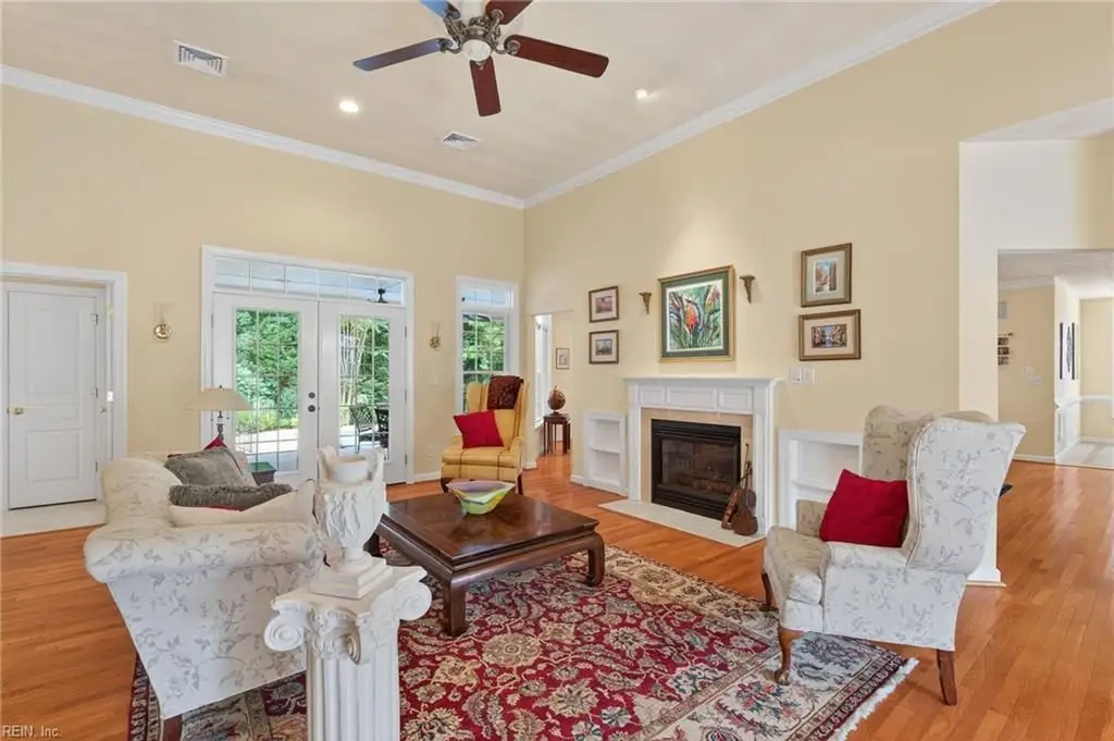 Gorgeous 5,100 sq. ft. home in the heart of Great Bridge, is luxury living at its best. 4BR/5 1/2B has two 1st floor Primary suites each with walk-in closets & ensuite baths w/double sinks, private WC, tub & separate shower. Home features open floor plan with hardwood floors, 2 large living rooms with shared gas fireplace, and spacious dining room, perfect for entertaining. Kitchen features 6 burner gas range granite counter-tops, walk-in pantry, SS appliances, eat in area, which is open to adjacent Living Rm. Huge FROG w/full bath and tons of storage. Large office can serve as 5th bedroom or multipurpose space. This home offers multi-gen. living w/In-law suite, full kitchen & Living Rm. with fireplace and separate entrance. Fabulous backyd with heated unground pool, bath w/shower, open porch and gas hook for grilling. Also home has attached oversized 3-car garage and off street parking. Close to interstate, shopping restaurants, all in the center of Hampton Roads.