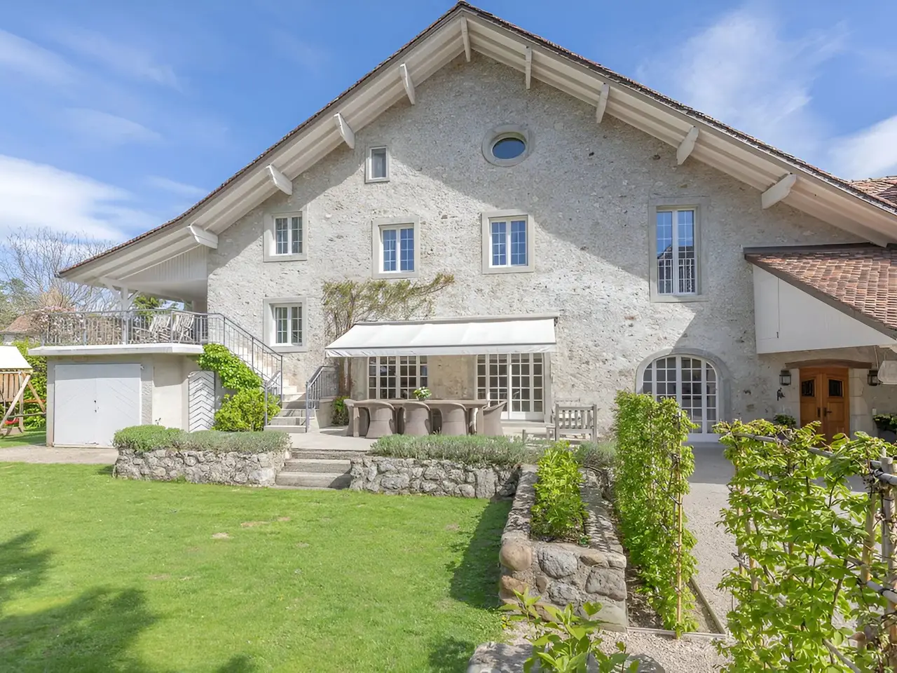 Discover an exclusive and exceptional village house in the heart of Chéserex, offering tranquility and authenticity. This 19th-century property, elegantly renovated, captivates with its unique character and high-end finishes. Ideally located just 3 minutes from the Nyon motorway, it enjoys a privileged setting close to public and international schools. Just steps away from the prestigious Golf & Country Club of Bonmont and several fine restaurants, this residence is nestled on a peaceful plot of nearly 950 sqm. It offers a charming setting with an intimate garden, spacious terraces, a vaulted wine cellar and a garage. Spread over five split levels, the house impresses with its warm atmosphere and exceptional materials. Exposed beams, ancient stone walls, and bright living spaces create a truly unique and cosy ambiance. The ground floor features a generous 80 sqm living room with a fireplace, seamlessly connected to a dining area and kitchen, opening onto a terrace overlooking the garden. The upper floors host 5 bedrooms (one converted into a dressing room) and two bathrooms. The attic, with over 40 sqm of space and a high ceiling, provides a flexible area ideal for additional bedrooms and a bathroom. A fully renovated independent 60 sqm apartment adds to the property’s appeal. With its own entrance, it is perfect for hosting guests or accommodating staff. Every detail of this home has been meticulously crafted to combine timeless charm with modern comfort. A rare opportunity for those who appreciate unique and authentic properties close to Nyon and Geneva.