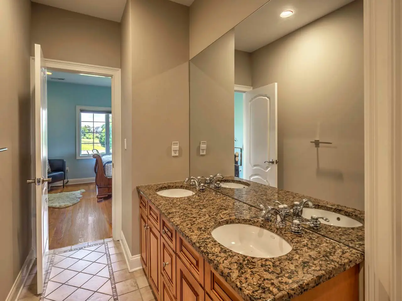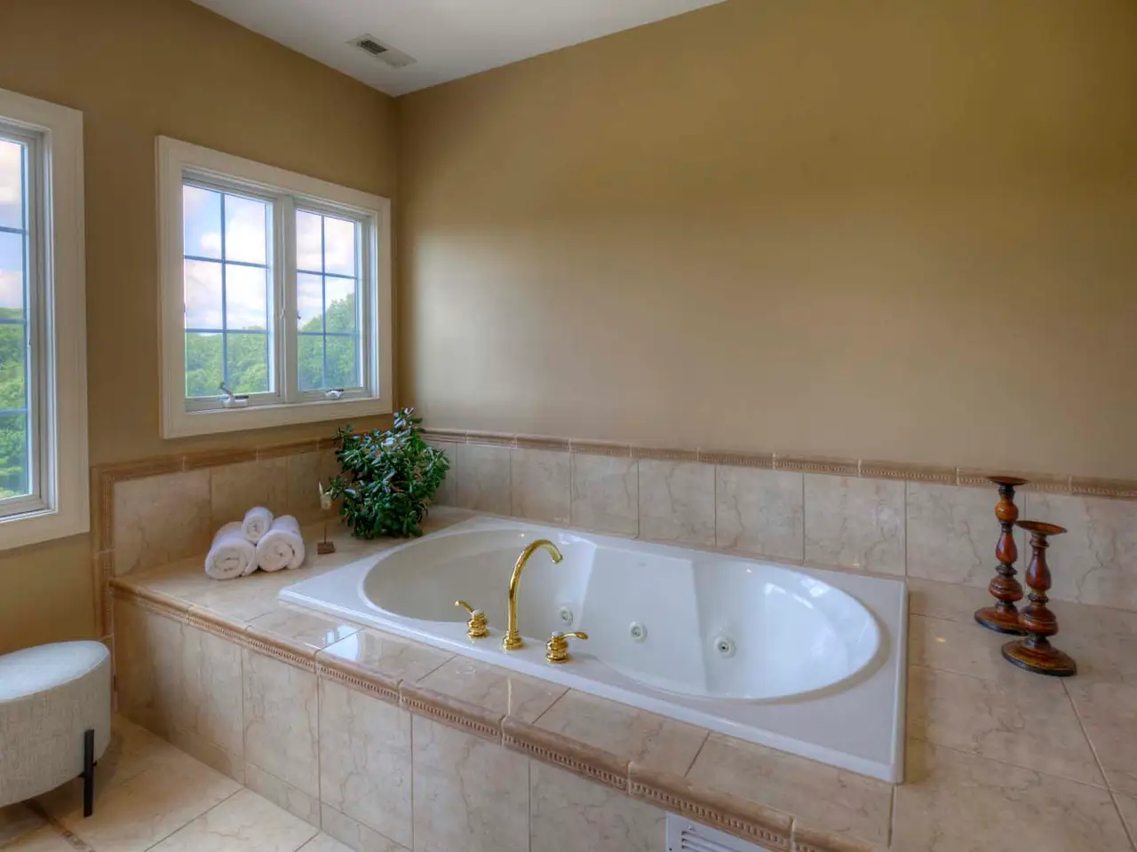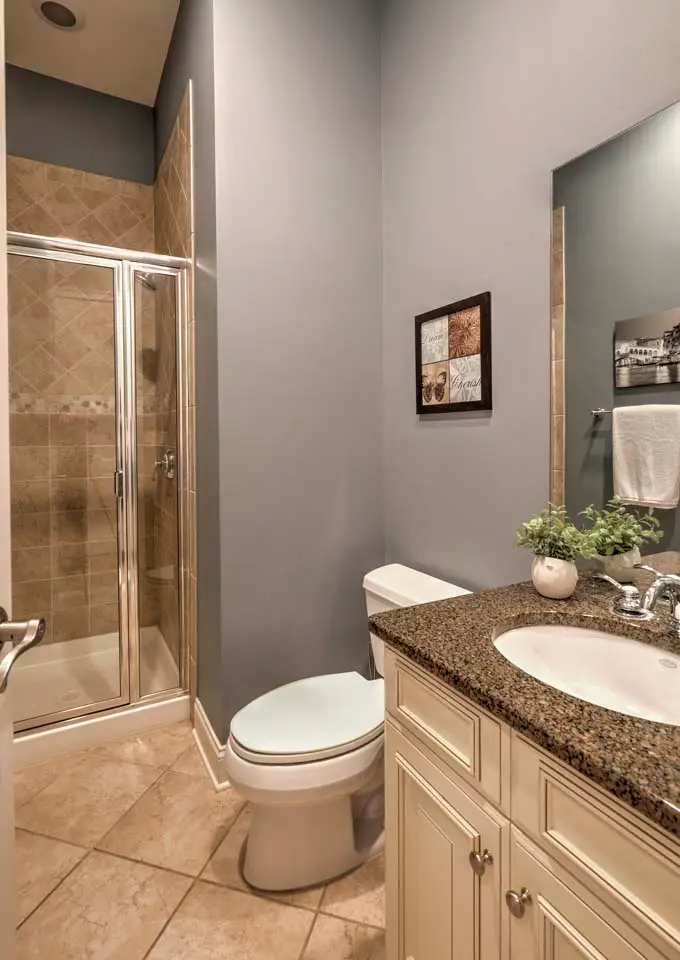 Ensuite bath with jetted tub and glass-door shower