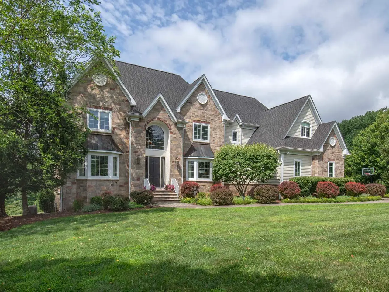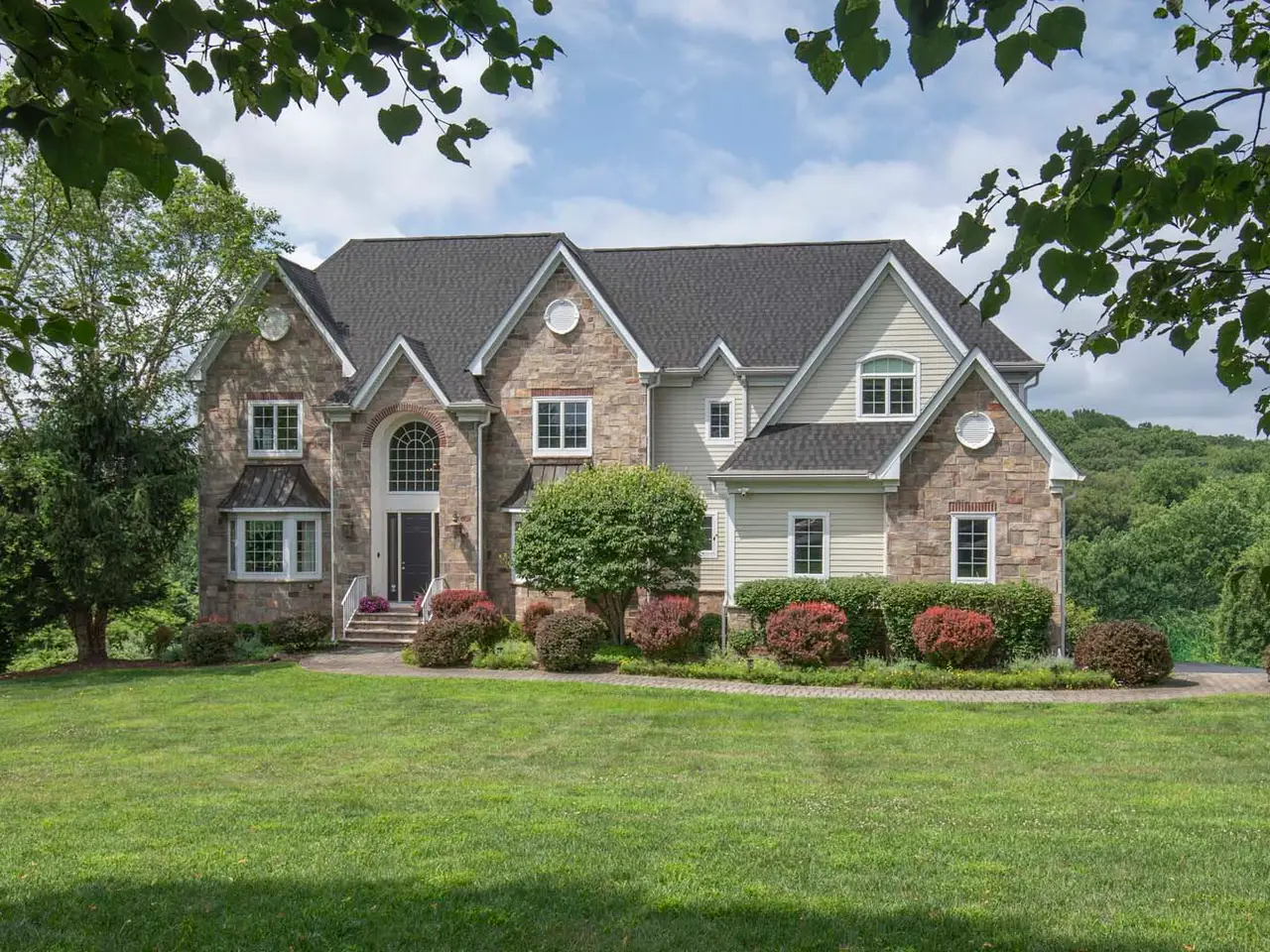 Welcome to 11 Trout Brook Court, where a tree-lined driveway leads to a colonial with a two-story foyer, revealing an open floor plan with distinct gathering spaces. The dining and living rooms provide formal areas, while the two-story family room with a floor-to-ceiling stone fireplace is perfect for relaxing. An expansive kitchen features a center island, custom cabinetry, professional-grade appliances, a separate breakfast dining area plus a butler's pantry/wet bar. A guest suite with an adjacent full bath, office with country views, formal powder room and a laundry/mud room complete this level. The primary suite offers serenity with a large sleep area, sitting room with fireplace, home gym and custom walk-in closet. The ensuite bath is a relaxing oasis with a jetted tub, glass-door shower, dual vanities and private water closet. A back staircase separates the additional bedrooms, including a generously-sized ensuite with shower and two bedrooms connected by a full bath. The finished walkout lower level offers a home theater and an open recreation area roughed for a full kitchen, plus gaming/lounging spaces and a bar area with built-in cabinetry. This level also has a full custom bath with a walk-in shower. Outside, stunning views from the expansive deck and patios below offer complete privacy. Centrally located in Chester Township, this colonial is bordered by Hacklebarney State Park, Black River Park and Kay Environmental Center, providing additional natural beauty.