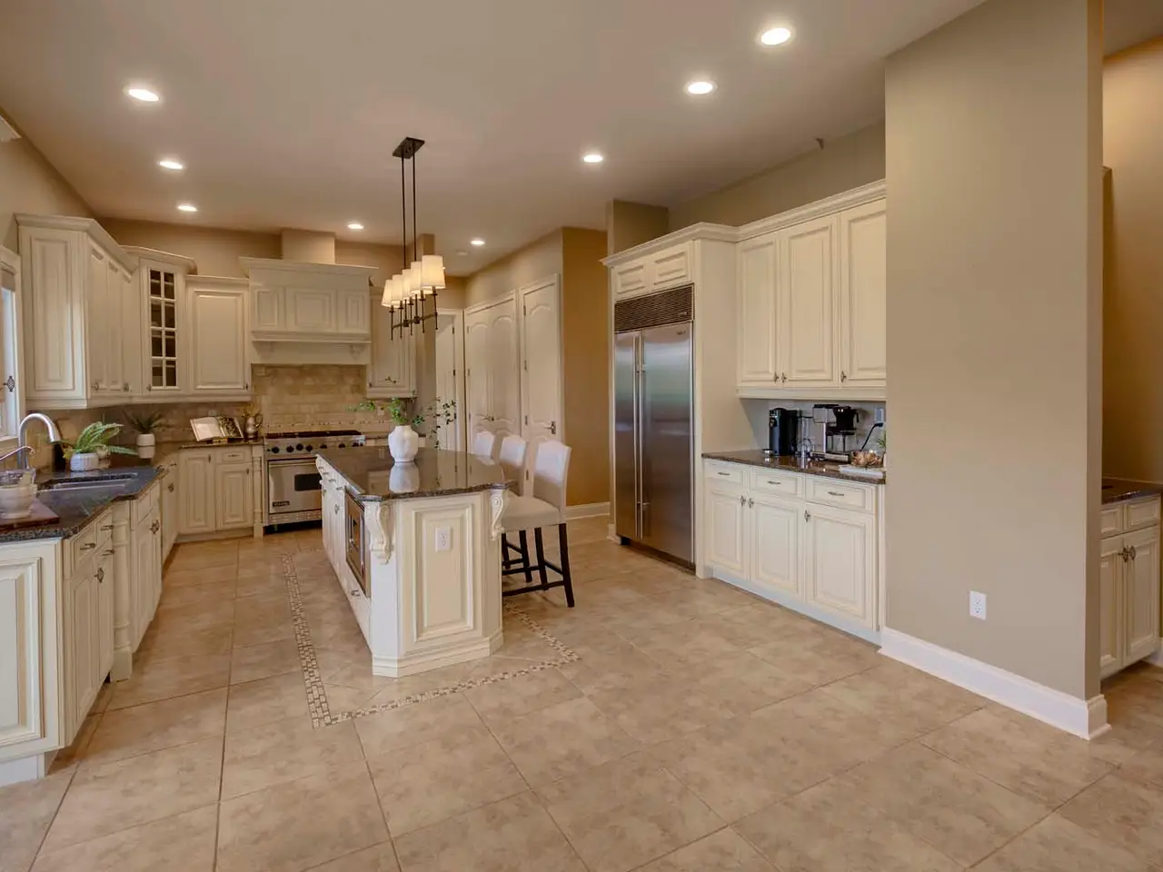 Professional-grade appliances and custom cabinetry in kitchen