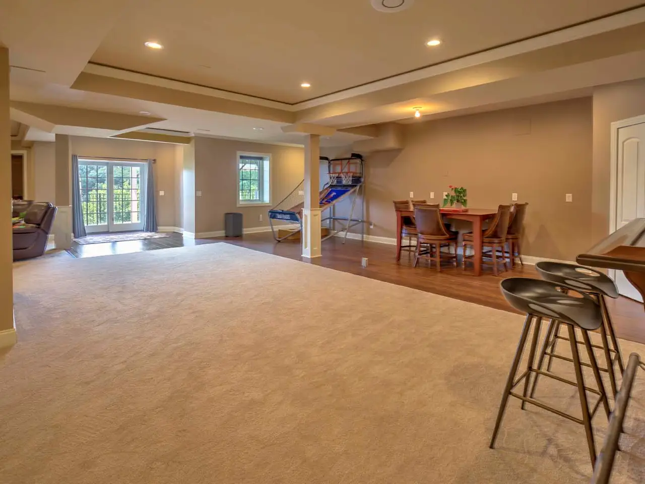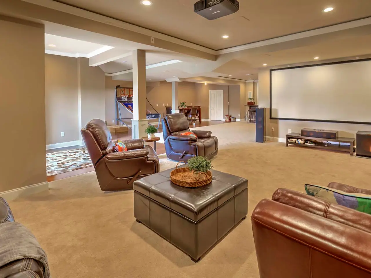 Home theater in the finished walkout lower level