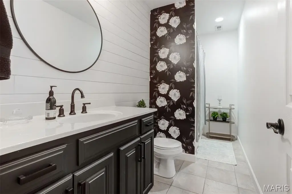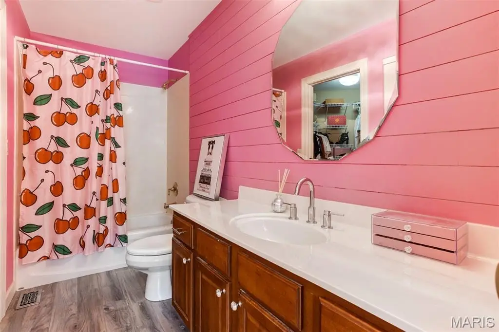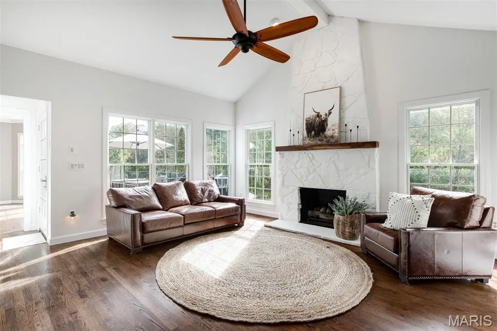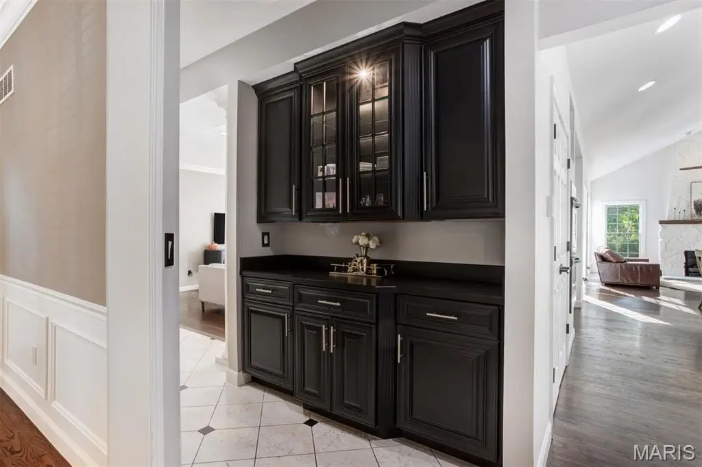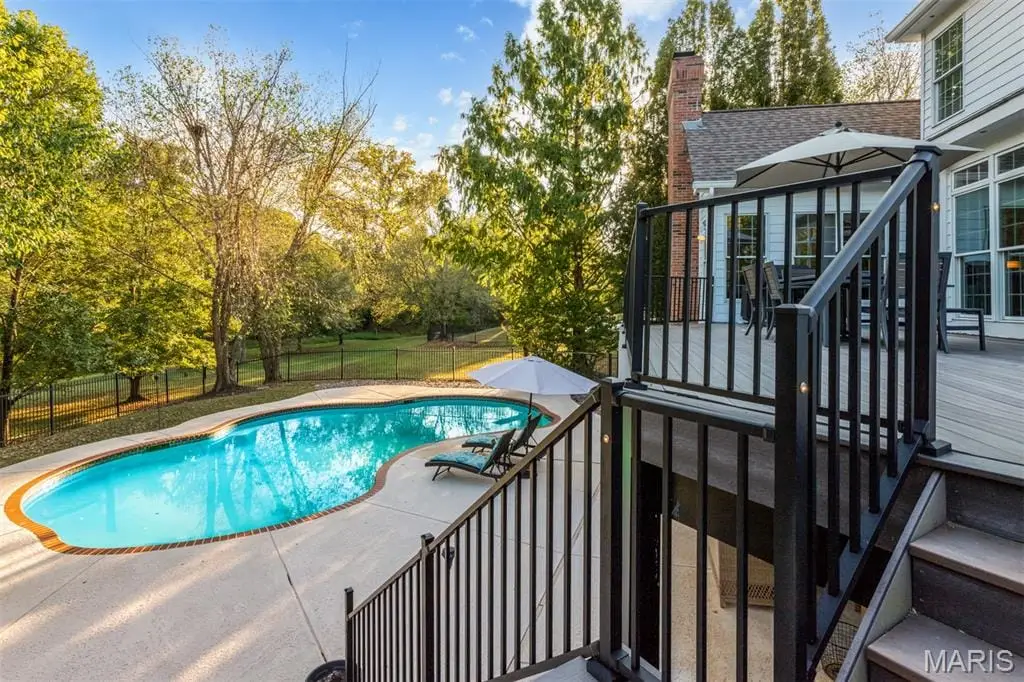 Prepare to be impressed by this absolutely stunning 1.5 story home, perfectly situated in the highly sought-after Greystone Manor subdivision. Fully renovated inside and out, this 5 bedroom, 4.5 bath residence combines timeless elegance with modern luxury. As you step into the grand two-story foyer, youre greeted by a beautiful curved staircase and an open floor plan that flows seamlessly throughout the home. Just off the entry, a private office and formal dining room lead into the sprawling living room filled with natural light and expansive bay windows overlooking the backyard pool oasis. The updated kitchen and adjoining hearth room feature vaulted ceilings, large windows, and access to the spacious deck all perfect for entertaining or enjoying serene views of the private backyard, sparkling pool, and lush landscaping. The main level primary suite offers a peaceful retreat with large walk-in closet, picturesque backyard views, and a beautifully updated full bath, renovated fall 2025, with dual vanities, shower, soaking tub & brand new shower. Upstairs, youll find two generously sized bedrooms connected by a Jack and Jill bath, along with a fourth ensuite bedroom overlooking the backyard. The recently renovated lower level is ideal for gatherings, boasting a large family room with wet bar & fireplace, 5th bedroom, full bath, theater room, exercise room and walkout access to the covered patio and pool area. Additional highlights include a 3 car garage, plantation shutters, composite deck, and a prime location within walking distance to Chesterfield Elementary. This exceptional property truly has it all including luxury, location, and lifestyle, making it the perfect place to call home.