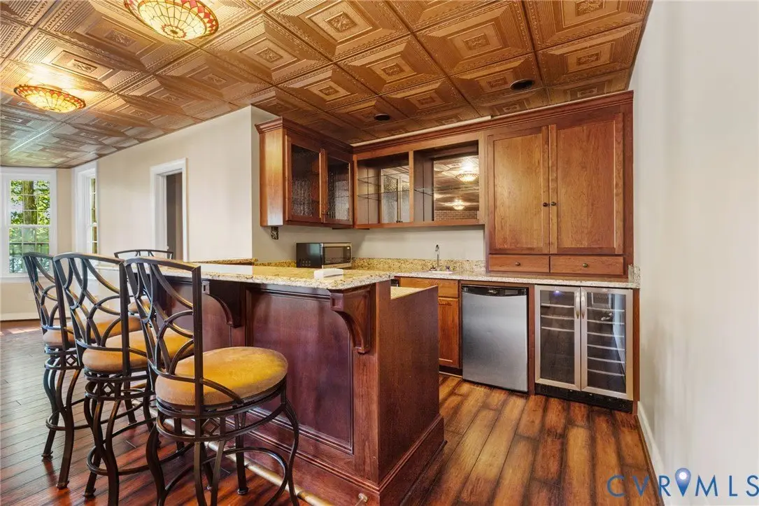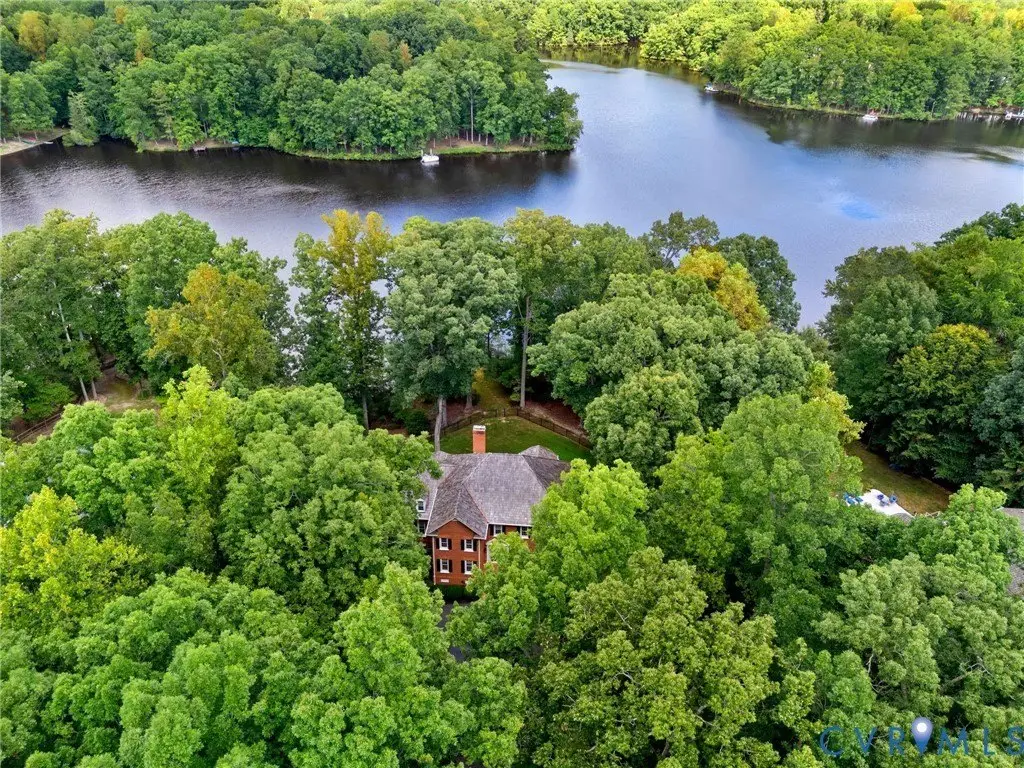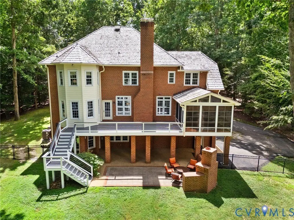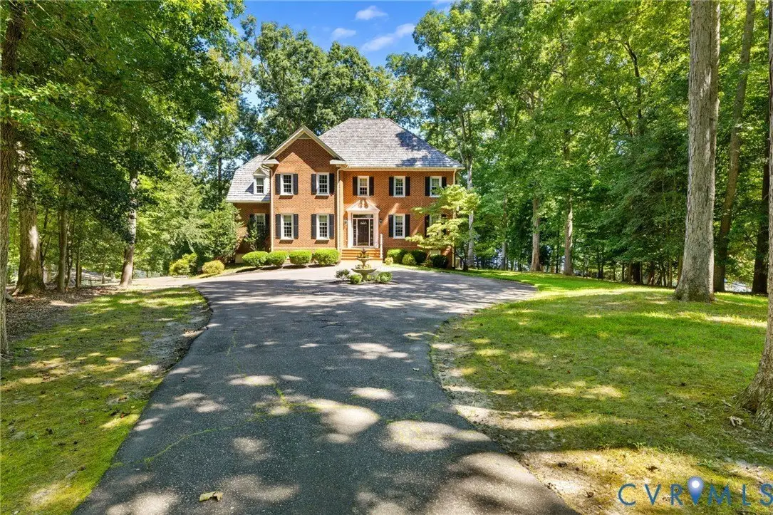 WATERFRONT Elegance on Woodland Pond! Welcome to this stately mostly-brick waterfront home, perfectly situated on the serene 125-acre lake of Woodland Pond. From the moment you arrive, the circular driveway and newer cedar shake roof (2018) set the tone for timeless quality and charm. Step inside to the grand foyer with gleaming hardwood floors and dual staircases - one from the foyer and one from the kitchen. The layout is designed for both entertaining and everyday living, offering a spacious formal living room complete with custom built-ins, and a formal dining room with custom trim work, a comfortable family room with fireplace and custom wet bar area that overlooks the deck and backyard. The adjacent sunroom and screened porch offer versatility and year-round spaces to enjoy the view and all that this home has to offer. The kitchen features ceramic tile flooring, raised-panel oak cabinetry, granite countertops, gas cooking with double ovens and black and stainless appliances. A walk-in pantry, recessed lighting and an octagonal breakfast nook overlooking the water make this a true chef's and entertainer's delight. Work from home in style with a stately office showcasing beautiful wood built-ins and intricate moldings. Upstairs, the oversized primary suite offers a serene sitting area, spa like en-suite bath and walk in closet. A second-floor laundry with washer and gas dryer for added convenience. Additional bedrooms are generous in size and have access to a bath. The walk-out basement level is designed for recreation and relaxation, featuring a garage, exercise room, bedroom/craft room and a stunning great room with copper ceiling, corner gas fireplace, full bath, wet bar with ice maker and beverage center. Outdoor living shines here with a fenced yard, expansive Trex decking, paver patio bordered in brick and aggregate and a corner outdoor fireplace. The private boat dock (also Trex decking) competes the lifestyle-just bring your boat and start enjoying Woodland Pond living at its best.