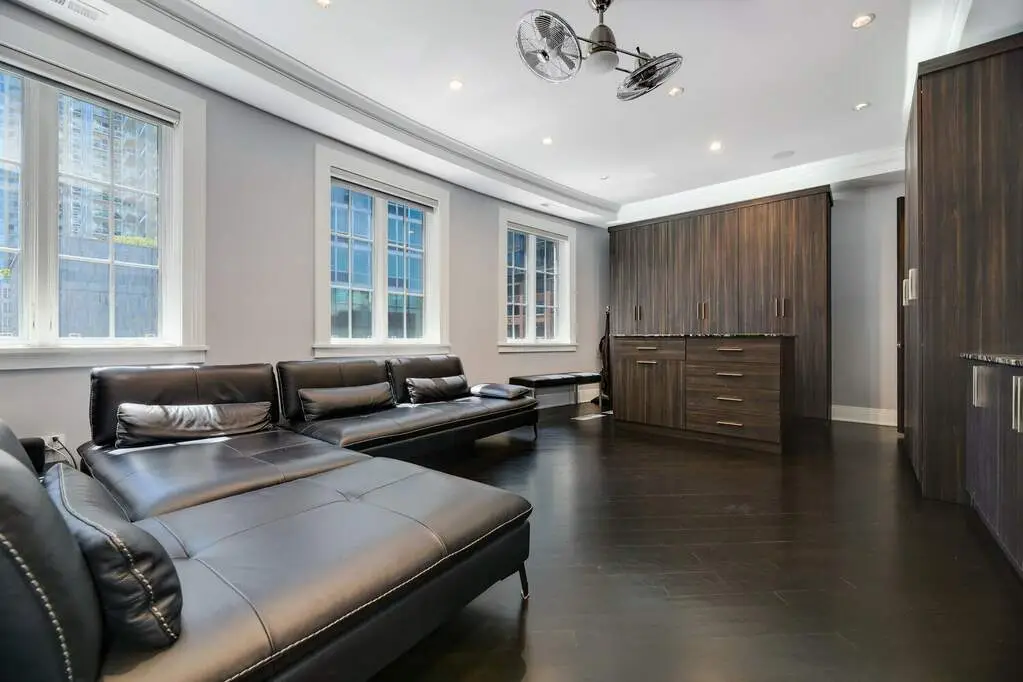 Spanning 68' in coveted Kingsbury Estates, this home is truly one of a kind! Offering over 10,300 square feet, plus an additional 4200 square feet of the absolute best outdoor space, this home offers a suburban lifestyle right in the heart of the city. The entry is a great spot to host parties or events in the lounge & wine room. This entertaining space connects to a secondary living space featuring a professional home gym with a resistance pool. There is also a bedroom, kitchenette/family room, and an entire lower level. Back in the main part of the home, you will love the paneled library, full bath, powder room, and the most gracious foyer which takes you to the second floor, allowing for amazing light and privacy. The extra-large chef's kitchen/great room features a 60" Wolf range plus cooktop, three Wolf ovens, double Miele dishwashers, built-in espresso machine, plus a steam oven. This is all open to fantastic space for informal gathering plus a super sunny breakfast nook, both of which open onto one of the massive terraces. This terrace features multiple spaces for sitting and dining, a large resistance swimming pool, and an outdoor fireplace. The third level of the home is devoted to the primary suite, allowing for a spacious bedroom with a terrace, sensational closet space, dual luxurious baths, and a coffee bar. There is an additional sitting room that could double as an office or perfect nursery space. Bedroom level laundry can also be found, conveniently located off the primary bath. The top level of the home has 2 more ensuite bedrooms, plus an additional lounge or bedroom with a kitchenette and terrace as well as an additional laundry area. An interior staircase leads to the enormous rooftop terrace with a second outdoor fireplace, multiple levels for entertainment, and the best city views. Allowing for even more entertaining space, the lower level has a true theater room. An additional bedroom, bath, sitting/playroom complete the lower level. An elevator to all levels makes for easy living! Perfect for car enthusiasts, this home has an attached garage with parking for six cars! Located within a gated community with parks, fabulous dining, and the riverwalk steps from your front door, this home is true gem and a rare find in the city!
