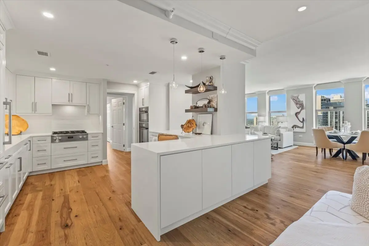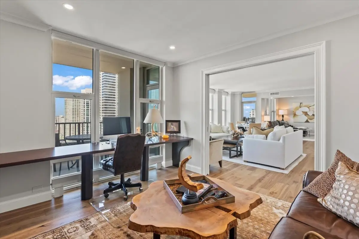 Enter into timeless sophistication in this beautifully renovated, sun-drenched 3-bedroom, 3-bathroom residence at The Fordham - one of Chicago's most prestigious luxury buildings. Enjoy sweeping north, east, and west exposures with breathtaking views of Holy Name Cathedral and Lake Michigan from two private balconies. The entire unit was renovated in 2023. No detail was spared. At the heart of the home is a stunning custom-designed kitchen. It showcases handcrafted cabinetry, quartz countertops, under-cabinet lighting, brand-new Miele appliances, a Sub-Zero refrigerator, and two Sub-Zero under-counter wine refrigerators. A Miele washer and dryer add modern convenience. Just off the main living space, a dedicated office with elegant wood built-ins and pocket doors provides a quiet workspace. The third bedroom has been opened up and is currently used as a sitting room which features additional built-in storage for versatility. Thoughtful design details include engineered pecan hardwood floors, crown molding, new lighting fixtures, and electric window shades. The oversized primary suite easily accommodates a king-sized bed and features a custom large closet, an additional shoe closet, and a fully renovated ensuite bath with sweeping city views. Luxe finishes include dual vanities, custom cabinetry, tile flooring, premium lighting, and a large shower with both rain and handheld showerheads. The spacious second bedroom is perfect for guests and is adjacent to a spa-inspired bath with a dramatic lighted feature wall, soaking BainUltra tub, and high-end finishes. A third full bathroom off the hallway offers a standing shower and custom wood countertops. A smart split floor plan provides privacy between bedrooms. Additional features include a private storage unit (S309) and two side by side garage parking spaces (P-905 & P-906). The Fordham is a full-service, amenity-rich building offering 24-hour door staff, an indoor pool, fitness center, private theater, wine cellar, humidor, and more.