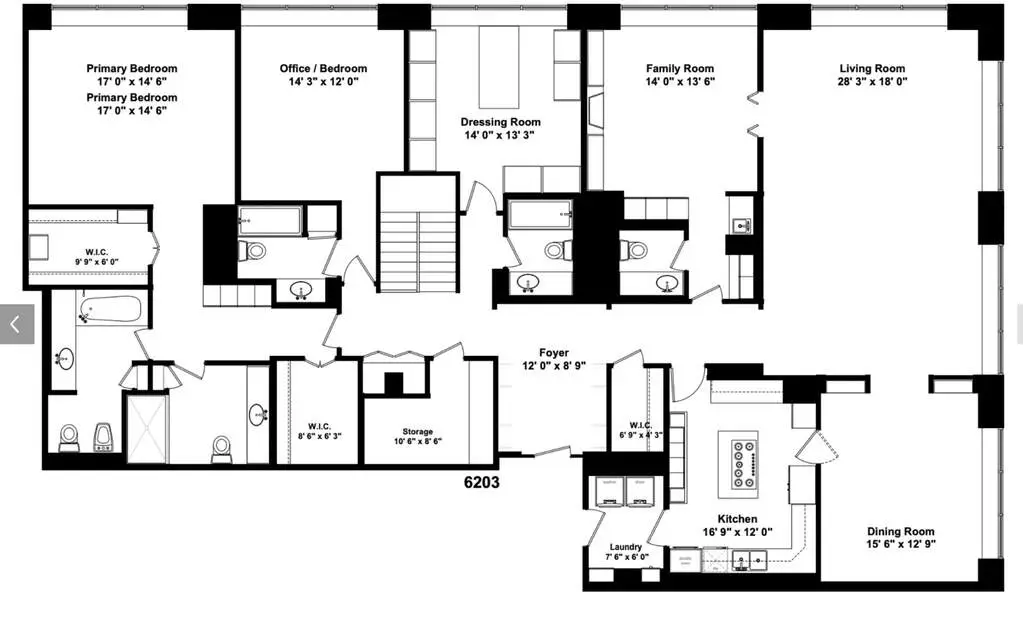 Perched atop the iconic Water Tower Place Residences, this exceptional two-floor residence spans approximately 6,600 square feet across the north and east sides of the 61st and 62nd floors. Featuring identical, thoughtfully designed layouts on each level, the home offers an extraordinary sense of scale, privacy, and versatility. Expansive picture windows in every room frame sweeping, panoramic views of Lake Michigan, Navy Pier, the downtown skyline, and as far north as the eye can see along Lake Shore Drive. Both levels include a fully appointed chef's kitchen with an adjacent dining room, ideal for hosting or multi-generational living. The open-concept design, generous proportions, and two full floors of living space offer an unmatched opportunity for flexible, luxurious living. Residents can enjoy exclusive access to the world-class Ritz Carlton Hotel amenities, including 24-hour concierge service, in-residence dining, a state-of-the-art fitness center, serene indoor pool, and spa. On-site valet and self-parking options are available, along with private storage.
