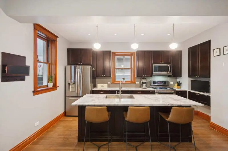 Sitting on an oversized lot, this gorgeous brick single-family home on a pretty tree-lined street is just a stone's throw to Lincoln Square and offers an ideal blend of classic Chicago charm and modern convenience. This intelligently converted and redesigned two-flat to single family, provides exceptional space with 4 bedrooms, and 3 full bathrooms, including a beautiful primary suite. Throughout the home, you'll appreciate the restored vintage millwork that adds character and warmth to every room. The main level welcomes you into the charming living room that opens to the formal dining room, complemented by a beautifully updated eat-in kitchen with Quartzite stone counters. This floor also provides a guest bedroom and full bathroom. Upstairs offers the most incredible space boasting 3 bedrooms, 2 full baths plus TWO additional rooms that can be used as living/family/office, etc. You have a generous primary suite with attached bathroom, and an organized walk-in closet with vintage pocket doors. The clean, unfinished basement houses the washer and dryer while offering excellent storage potential, or additional build out opportunity. Outside, enjoy the large backyard with patio space and the convenience of a two-car garage. Location is everything with this property, plus easy access to the EL & Metra. Enjoy all that Lincoln Square has to offer including boutique shops and notable restaurants. Sprawling 22 acres is Winnemac Park offering a prairie garden/nature trail, playground, trails, softball fields, soccer field, track, gym & more. Residents will appreciate the Sacred Heart bus pickup just two blocks away and proximity to so many additional coveted schools including Lycee, Montessori, Waldorf, German International School, Waldorf, Gardner School and North Park Elementary.