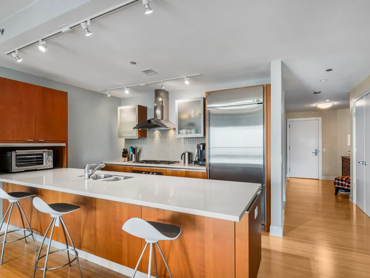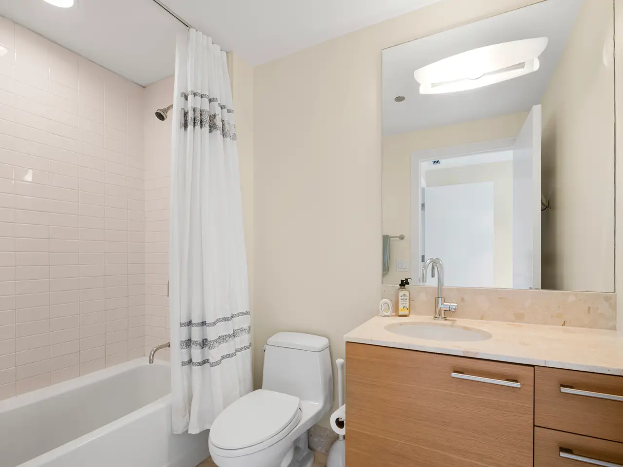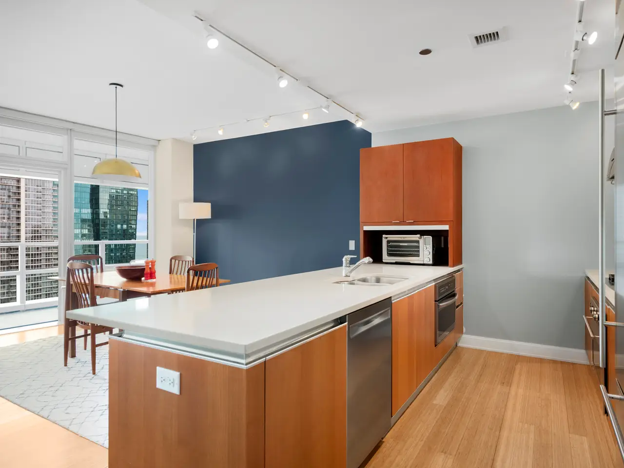 Lakeshore East's Prize. 340 on the Park surrounded by the Lakeshore East Park, Marianos, Maggie Daley Park, Millennium Park and so much more. This central location caters to a complete lifestyle with easy walking access to the office, either on the street or in the underground pedway, bike and jogging path and lake front access, Michigan Ave, Art Institute and more. Residence 3304 features 1902 square feet, a large split bedroom and bathroom floor plan, additional powder room or half bathroom, plus private enclosed 9' x 8' den which can be used as a versatile room. Residence 3304 lives as a two and a half with this versatile room lending itself to the perfect "work from home" office, guest room with Murphy bed and office combination, guest room accommodating queen of pullout sofa, day bed, nursery, exercise/yoga room. Pristine and lightly lived in condition, well protected bamboo floors, open kitchen concept with culinary vented hood, top of the line GE Monogram stainless steel appliances, Frigidaire Gallery Series dishwasher & microwave, 6' pantry, quartz counters, full height rectangular shaped glass backsplash, large peninsula with very comfortable seating for four, under mount sink, cook top gas range and oven built into Snaidero cabinetry. Undoubtedly the best 2/2.1 bedroom/bathroom + separate enclosed den floor plan 340 On the Park offers, also features a 25' by 20' living and dining room for 6-8 at the table, private balcony off living/dining space. Living room wonderful for entertaining. Full Size, front loading LG Steam Interverter Direct Drive, in-unit washer and dryer (gas vented dryer). Primary suite offers walk-in closet with built-ins, linen closet. Spa-like bathroom with double sinks and Snaidero vanity. Bathroom dressed in natural stone. Separate soaking tub, large shower with frameless glass. Second bath dressed in natural stone and white subway tiles. Gracious foyer large enough for a furniture piece or bench, front hall closet storage. 6' pantry behind and parallel to kitchen. All closets with professional designed built-in shelving and cabinetry throughout Residence 3304. Wired for speakers. A large storage cage outside of the home approximately 7' tall x 5' wide' x 6' deep. Enjoy views of the Lakeshore East Park, city scape and the city lights at night of some outstanding modern architecture. 340 on the Park is a full amenity building including a 24 hour doorstaff, onsite management and maintenance, dry cleaners. Bike storage, Courtesy Guest Parking Program, heated garage with access to Upper, Middle and Lower Randolph for convenience. 25th Floor amenities boast a 4000 square foot gym with magnificent and permanent views to the south, state of the art exercise equipment like Pelotons and cardio theater. Dry Sauna, private steam rooms, 75' indoor two lane lap pool, whirlpool, sundeck, two gas grills and outdoor seating, Winter Garden to use freely or reserve for a private event, private conference and dining room, full caterer's kitchen. Outdoor pet relief area, pedway access on second level of the garage. Just steps to Mariano's and all the Lakeshore East Village Market has to offer. Prime garage parking space very close to elevator bank included in the LIST PRICE. This unit will not last and Brokers, bring your most discriminating buyers.
