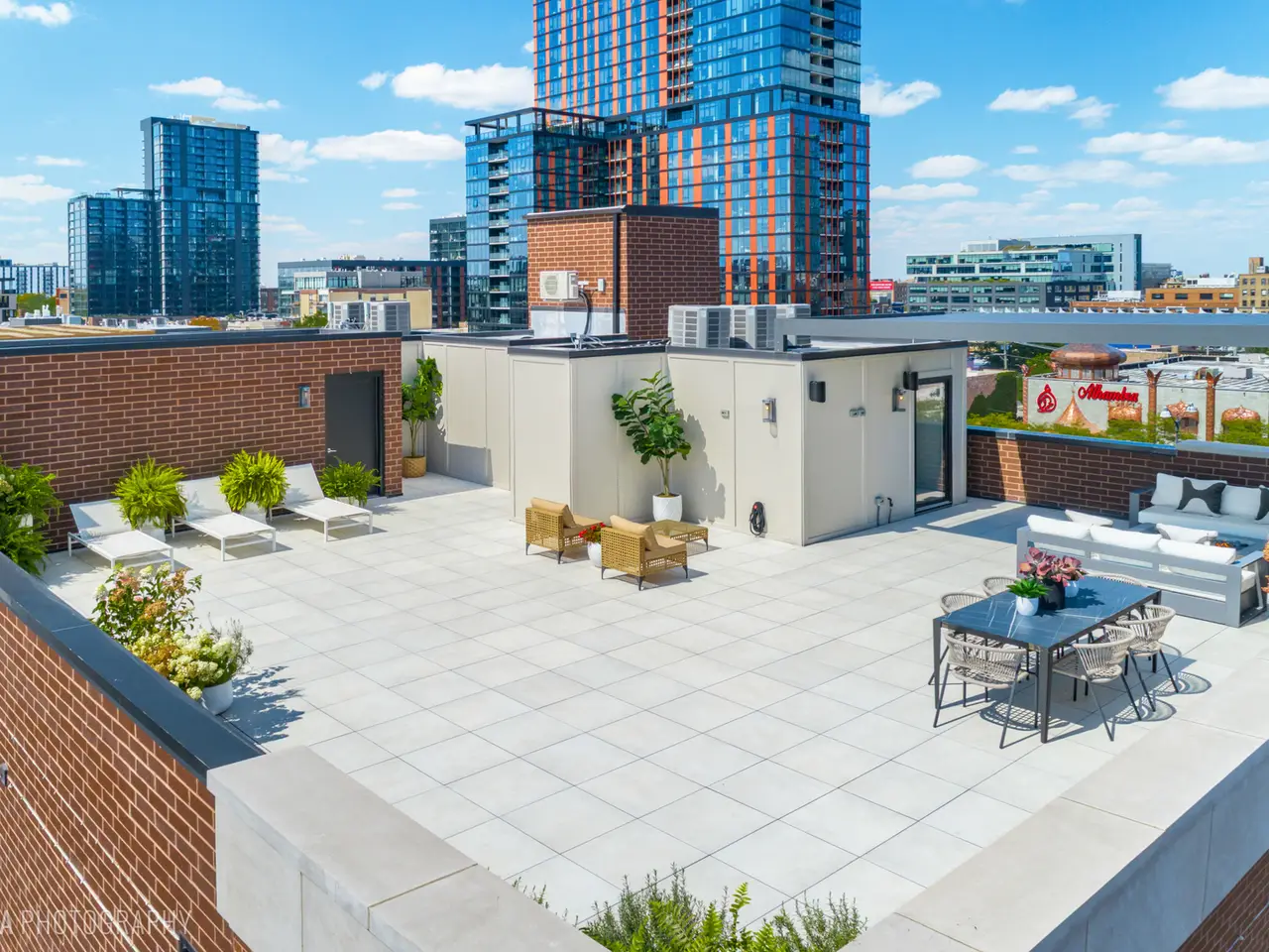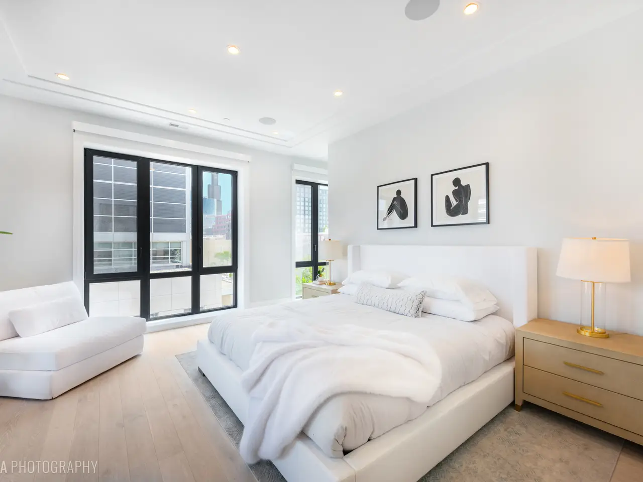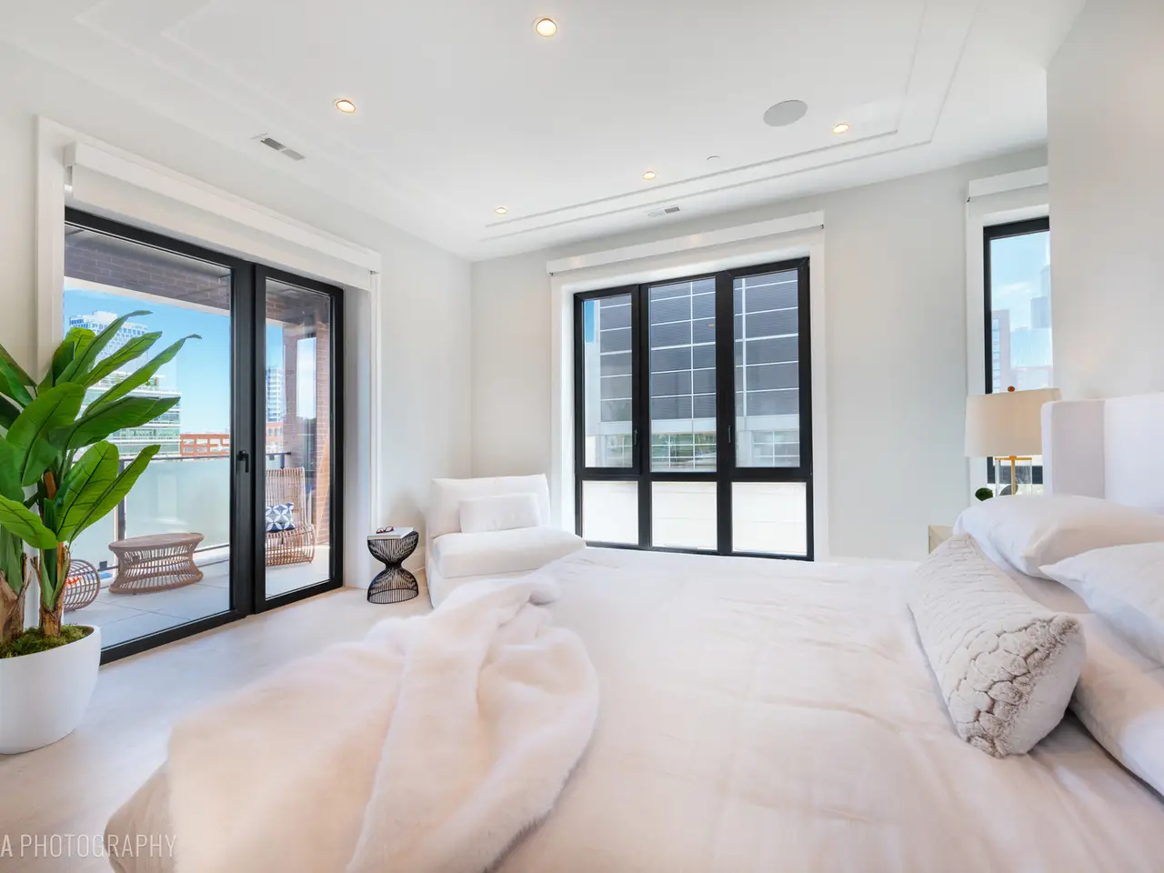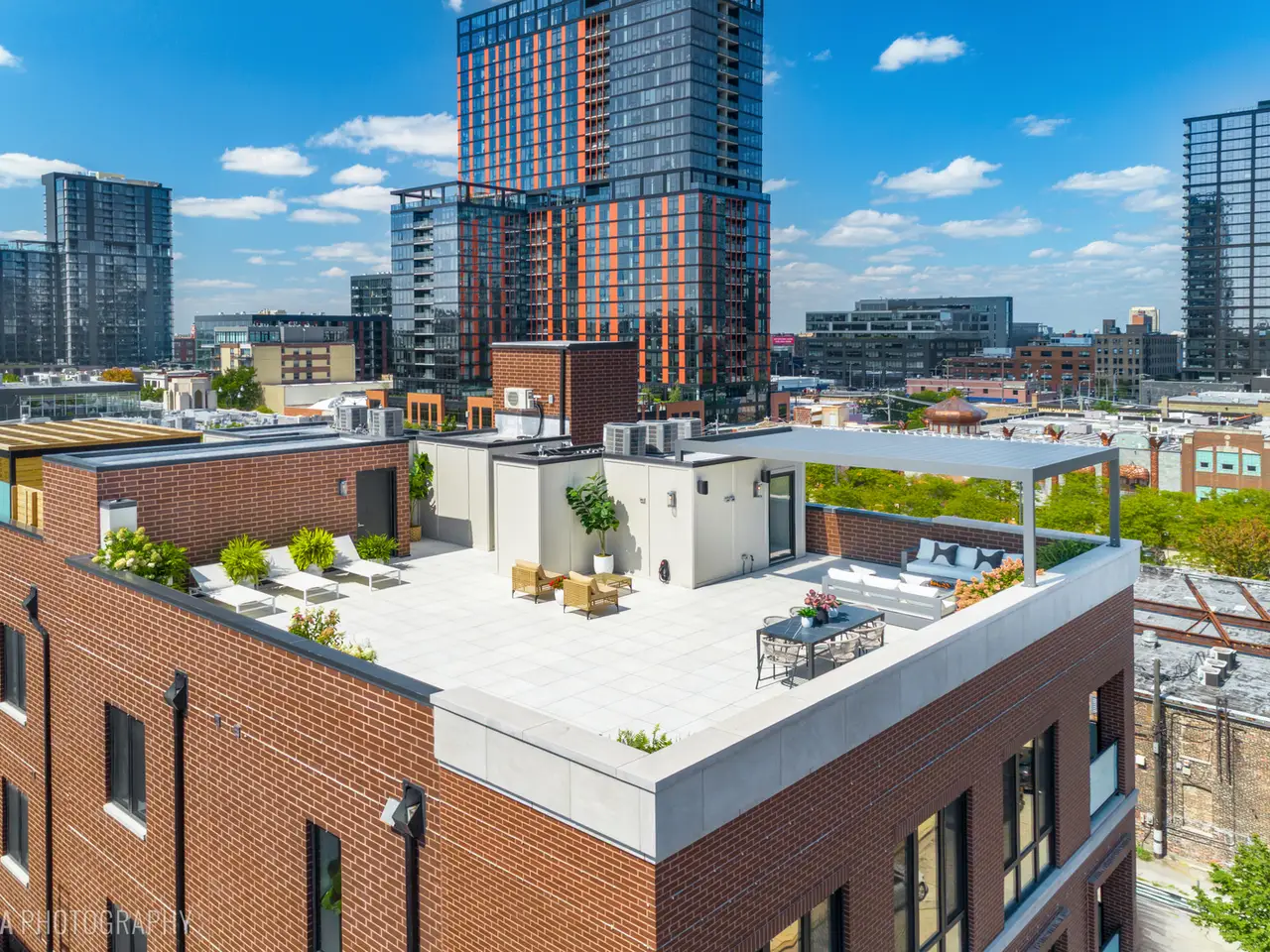 BEST VALUE PENTHOUSE WITH PRIVATE ROOFTOP IN THE WEST LOOP! LAST 2 UNITS REMAIN IN THIS DEVELOPMENT. Tucked away on a quiet side street in the heart of Chicago's vibrant West Loop, this stunning new-construction duplex penthouse offers an unparalleled blend of luxury, space, and privacy. Spanning two expansive levels with over 1700 sq ft of private rooftop deck, this 5-bedroom + den/office, 4-bathroom residence includes direct elevator access and an attached heated 2-car garage-a rare find in the city. Developed by the highly regarded PLD Homes, every inch of this home exudes quality craftsmanship and sophisticated design. The 35-foot-wide interior is flooded with natural light, showcasing a wide-open floor plan ideal for both everyday living and elevated entertaining. Main Living Level: Open-concept layout with floor-to-ceiling east-facing windows Expansive living room, separate dining area, and custom wet bar Designer chef's kitchen with panel-ready Thermador appliances, quartz countertops, and custom cabinetry Fifth bedroom or a family room + office/den a full bathroom and covered private terrace - all on the main floor. Second Level: Luxurious primary suite with walk-in closet, private terrace, and spa-caliber bathroom featuring a soaker tub, steam shower, and heated floors. Three additional bedrooms with custom closets and two full bathrooms. Enter this level directly through a private mudroom. Spacious laundry room and separate storage area. Rooftop Oasis: A private interior stairway leads to the top-floor flex space, ideal for a second office or lounge with wet bar-opening to your exclusive rooftop retreat. Enjoy panoramic 360 skyline views, unforgettable sunsets, and endless entertaining potential. Hot tub and shower will be installed on the roof. This boutique building offers the privacy and feel of a single-family home with the luxury conveniences of a high-rise. Located just steps from award-winning restaurants, premier shopping, trendy nightlife, parks, and top-rated schools-this is truly a rare gem in the West Loop.
