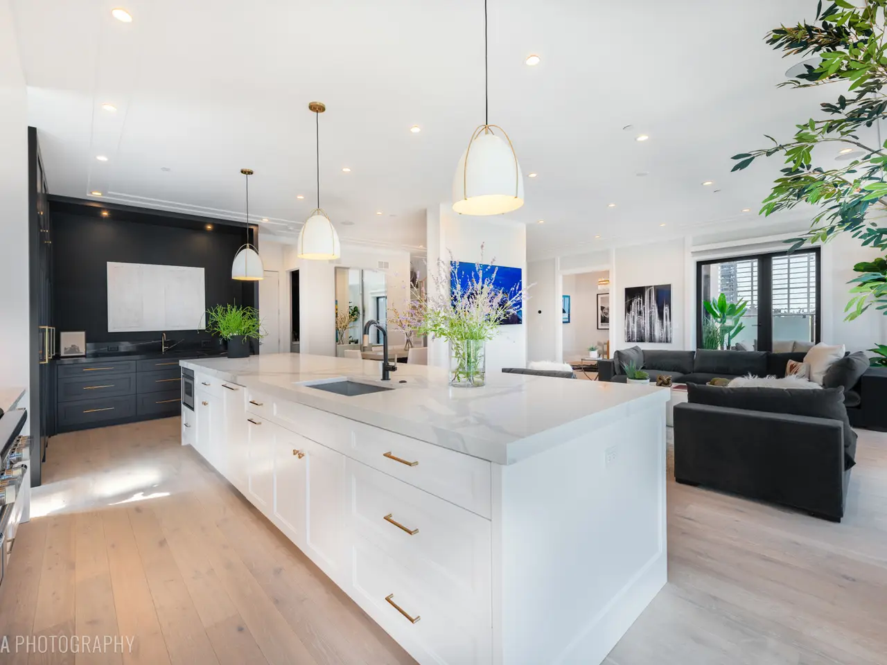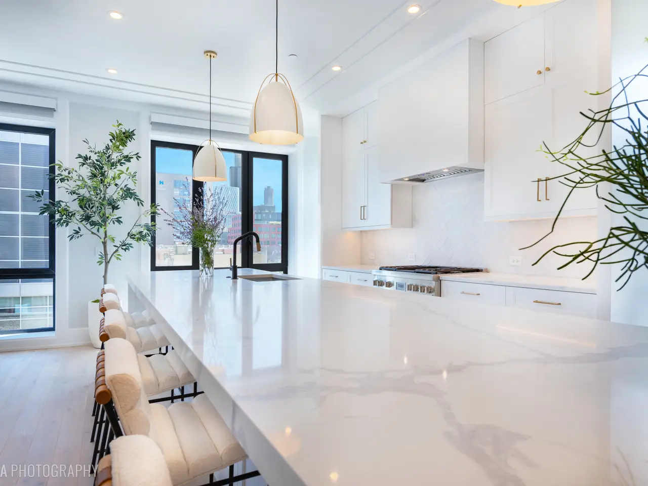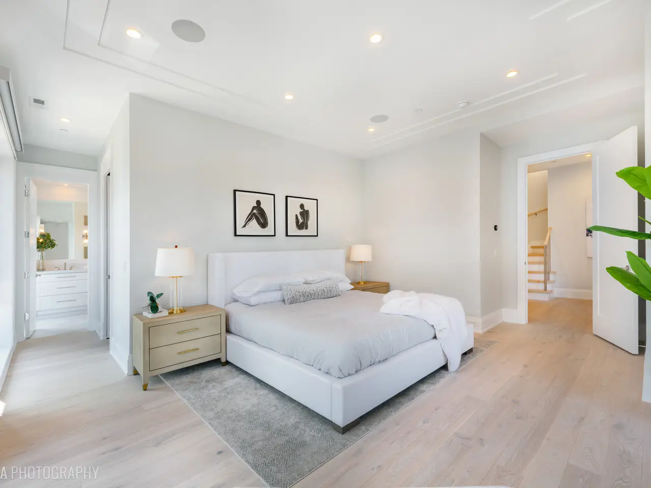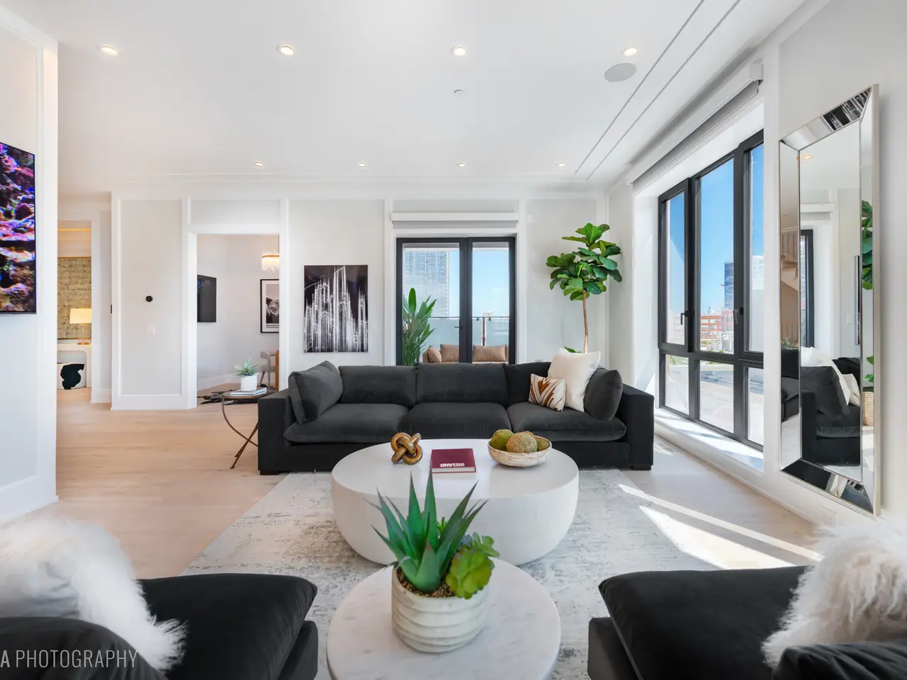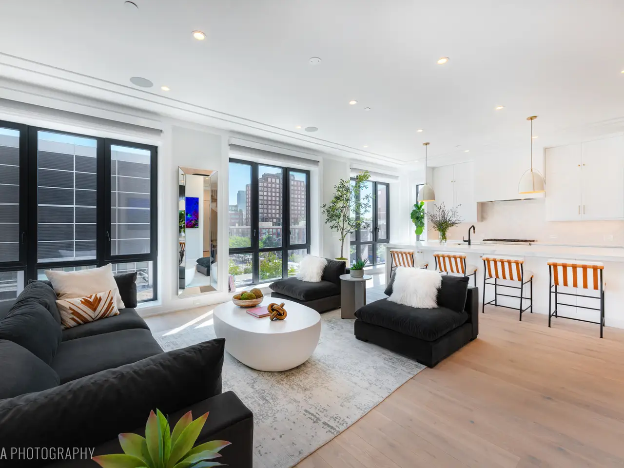 BEST VALUE PENTHOUSE WITH PRIVATE ROOFTOP IN THE WEST LOOP! LAST 2 UNITS REMAIN IN THIS DEVELOPMENT. Tucked away on a quiet side street in the heart of Chicago's vibrant West Loop, this stunning new-construction duplex penthouse offers an unparalleled blend of luxury, space, and privacy. Spanning two expansive levels with over 1700 sq ft of private rooftop deck, this 5-bedroom + den/office, 4-bathroom residence includes direct elevator access and an attached heated 2-car garage-a rare find in the city. Developed by the highly regarded PLD Homes, every inch of this home exudes quality craftsmanship and sophisticated design. The 35-foot-wide interior is flooded with natural light, showcasing a wide-open floor plan ideal for both everyday living and elevated entertaining. Main Living Level: Open-concept layout with floor-to-ceiling east-facing windows Expansive living room, separate dining area, and custom wet bar Designer chef's kitchen with panel-ready Thermador appliances, quartz countertops, and custom cabinetry Fifth bedroom or a family room + office/den a full bathroom and covered private terrace - all on the main floor. Second Level: Luxurious primary suite with walk-in closet, private terrace, and spa-caliber bathroom featuring a soaker tub, steam shower, and heated floors. Three additional bedrooms with custom closets and two full bathrooms. Enter this level directly through a private mudroom. Spacious laundry room and separate storage area. Rooftop Oasis: A private interior stairway leads to the top-floor flex space, ideal for a second office or lounge with wet bar-opening to your exclusive rooftop retreat. Enjoy panoramic 360 skyline views, unforgettable sunsets, and endless entertaining potential. Hot tub and shower will be installed on the roof. This boutique building offers the privacy and feel of a single-family home with the luxury conveniences of a high-rise. Located just steps from award-winning restaurants, premier shopping, trendy nightlife, parks, and top-rated schools-this is truly a rare gem in the West Loop.