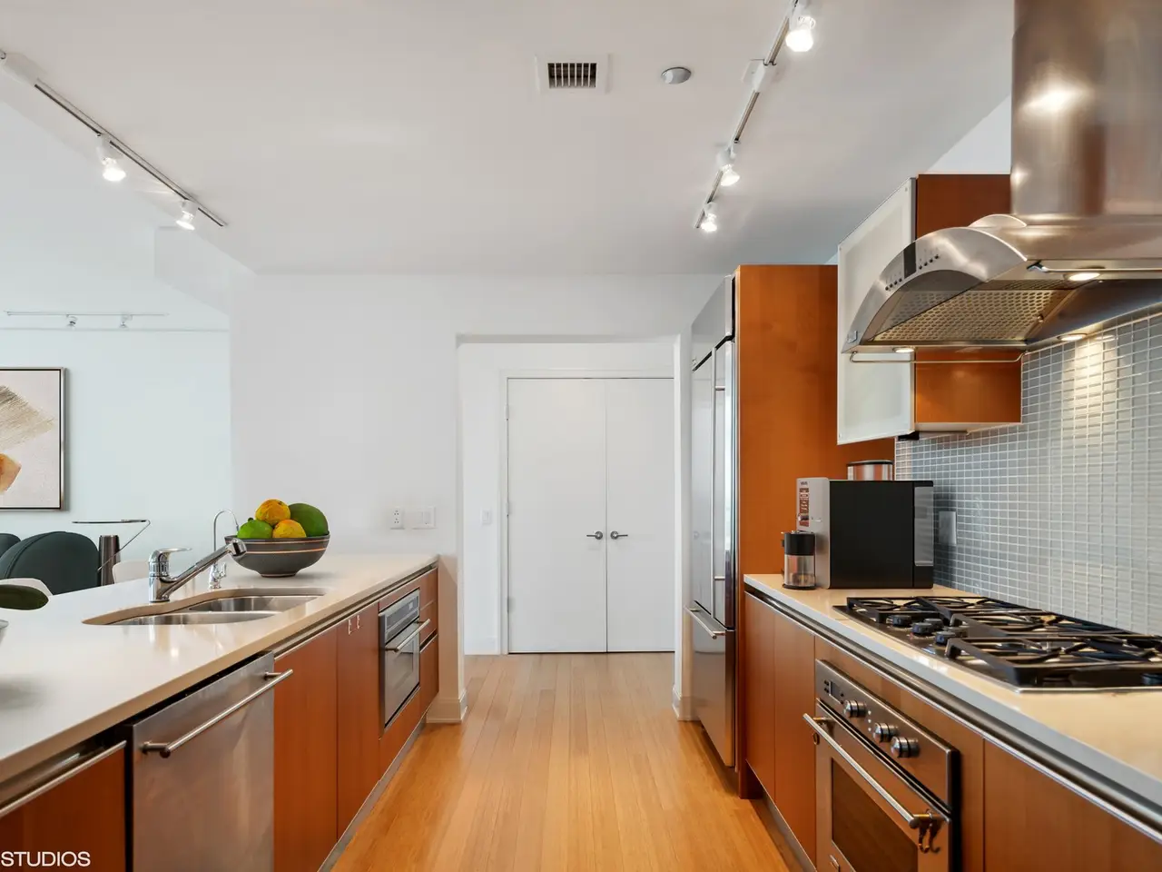 The Only perfectly located residential high rise in Lake Shore East at the feet of Lake Michigan, Maggie Daley Park, Millennium Park and the enormous architectural wall of ""Old Chicago"" on Michigan Ave. Built by Related Midwest, the first Leed Certified/Green Residential building in the city, offers only condos with a sun drenched lobby of steel and glass, onsite management, maintenance and engineering staffs, onsite dry cleaners, Locker package system, pet relief area, grand shortcut to Mariano's and the Village Market. Residence 803 lines up near perfectly with a view of Buckingham Fountain and with no end of view in site to the south, east and west. Unobstructed views forever of Museum Campus, Grant Park, harbor, Lake Michigan, and more. This Residence features pen foyer with immediate and incredible views, open kitchen concept, large peninsula with seating, 1.25"" quartz counters, porcelain slab backsplash, Flat panel wood Snaidero cabinetry, GE Monogram Stainless Steel appliances, vented culinary hood. Bamboo floors, separate dining and living areas, very adequate south facing balcony off dining area. Second bathroom dressed in natural stone. Primary bath featuring separate shower and soaking tub, natural stone, dual Snaidero vanity, closet built-ins. Every window in Residence 803 faces south, with NO BUILDING NEIGHBORS, ALL FLOOR TO CEILING WINDOWS, direct sun, with the best views of 340 on the Park. 25th floor amenities include brand new Winter Garden, Private Conference and Dining Room, full caterer's kitchen, sundeck, furniture, two gas grills, 4000 square foot gym, Sauna, locker rooms with steam rooms, 75' indoor two lane lap pool, whirlpool. Internal Access to Pedway. First floor Heated garage parking, (P1-56) INCLUDED IN LIST PRICE. First Leed Certified Residential High-rise Building built in Chicago by Related Midwest who also built One Bennett, 840 N. LSD and Park Tower.