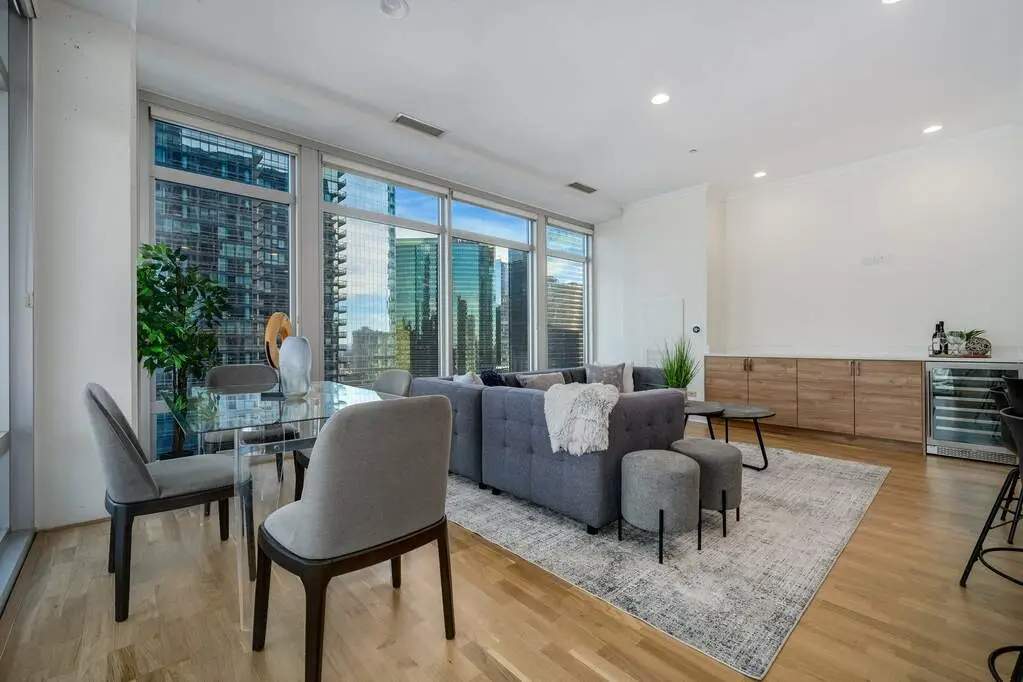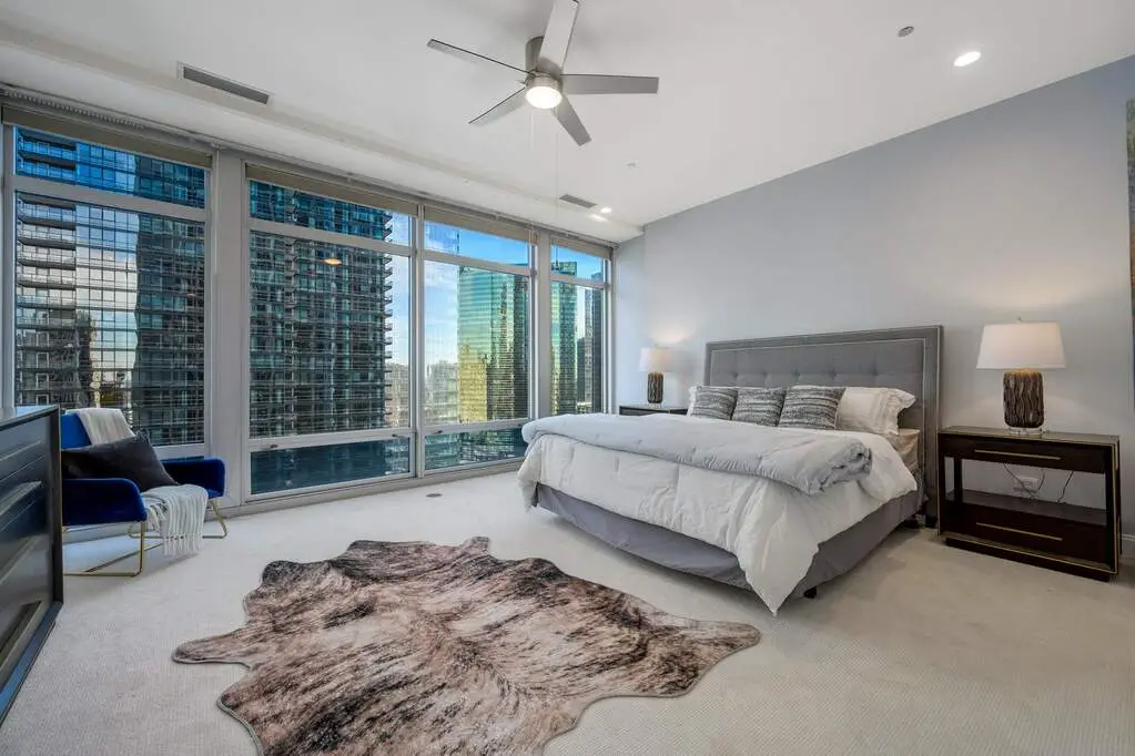 Floor-to-ceiling windows for day and night views