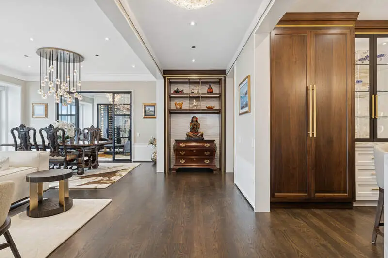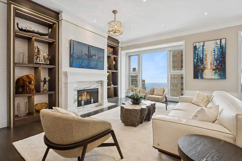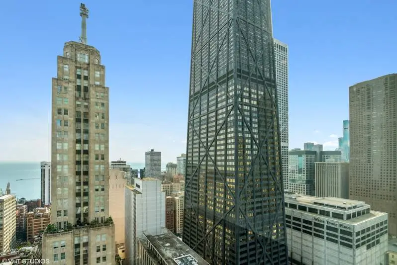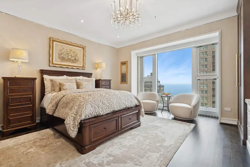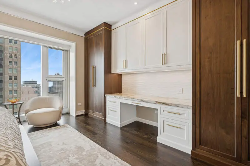 Experience refined elegance, world-class service, and unmatched convenience at one of the Gold Coast's most prestigious addresses-77 E Walton, nestled within the iconic Bloomingdale's Building. With only 47 residences in this boutique association and over $3M in reserves, this exclusive community offers a level of privacy, service, and security that is simply unparalleled. Spanning 3,100 square feet with soaring 10-foot ceilings and full-height windows, Unit 24B is a gracious, light-filled home with breathtaking views of Lake Michigan, the Palmolive, the John Hancock, and all of Michigan Avenue. This custom residence has been fully reimagined for both sophistication and comfort. The designer kitchen is a showpiece: custom, handcrafted, solid walnut cabinetry with brass insets, integrated appliances, a fully enclosed coffee bar, Restoration Hardware lighting, and a dramatic porcelain waterfall island and backsplash. Culinary-grade appliances include a 60" Wolf range with 6 burners and dual infrared griddle, vented hood, Sub-Zero column fridge and freezer, under-counter ice maker, and Cove dishwasher. The main living space feels like a live art installation, framed by stunning skyline views and anchored by a gas fireplace with bespoke walnut and metal shelving on both sides. The expansive primary suite is a true retreat, featuring lake views, a luxurious Calacatta marble bath with oversized soaking tub, dual vanities, a separate glass-enclosed shower, and an extraordinary 16x11 custom walk-in closet. Each of the three bedrooms is designed as a private suite, entered through its own dedicated foyer, with large closets and private baths. The guest suite includes a custom built-in desk and storage-ideal for a home office-and a perfectly framed view of the Palmolive, the lake and Oak Street Beach. The third bedroom has been transformed into an elegant lounge, showcasing a 500-bottle, double-paned glass wine wall, temperature-controlled by the building's four-pipe HVAC system. Wide glass and steel doors create a stunning visual transition from the living area. Additional features include a spacious laundry/mudroom with a secondary entrance, new Lutron LED lighting and built-in surround sound throughout, and a dedicated 11x9 private storage room located on the same floor. Residing in this storied skyscraper-also home to The Four Seasons Hotel, 132 E Dearborn Condos, and The Shops at 900-means having the very best of Chicago at your fingertips. Residents enjoy direct indoor access to Equinox, The Four Seasons, the Astor Hall food court, and luxury retailers including Bloomingdale's, Gucci, Lululemon, J.Crew, and more. Self-care is effortless with onsite services from Merchant & Rhoades Barbershop and Mario Tricoci Salon, and room service from the acclaimed Adorn Restaurant is just a call away. Residents may join The Four Seasons Health Club at exclusive discounted rates. The building offers 24-hour door staff, continuous building monitoring, and exceptional emergency preparedness with a reinforced steel security door that can seal off residential floors from the 8th floor up at the push of a button. Owners benefit from highly attentive staff-particularly helpful for part-time residents-with services that ensure homes are well-maintained even when vacant. With a private 10th-floor rooftop terrace, grill stations, and multiple parking options (valet, EV valet, and self-park), this full-service building leaves nothing to be desired. Monthly assessments of $3,995 cover a full suite of services and amenities including internet, cable, gas, HVAC via the building's four-pipe system, water, doorman, maintenance, and more. The owner only pays for electricity. The association is pet-friendly and is managed with exacting attention to detail by First Service Residential. With its iconic address, dramatic views, bespoke interiors, and unmatched access to luxury and lifestyle, Unit 24B at 77 E Walton is truly exceptional