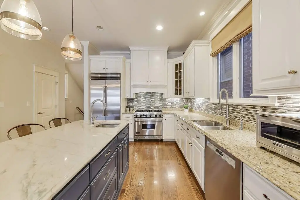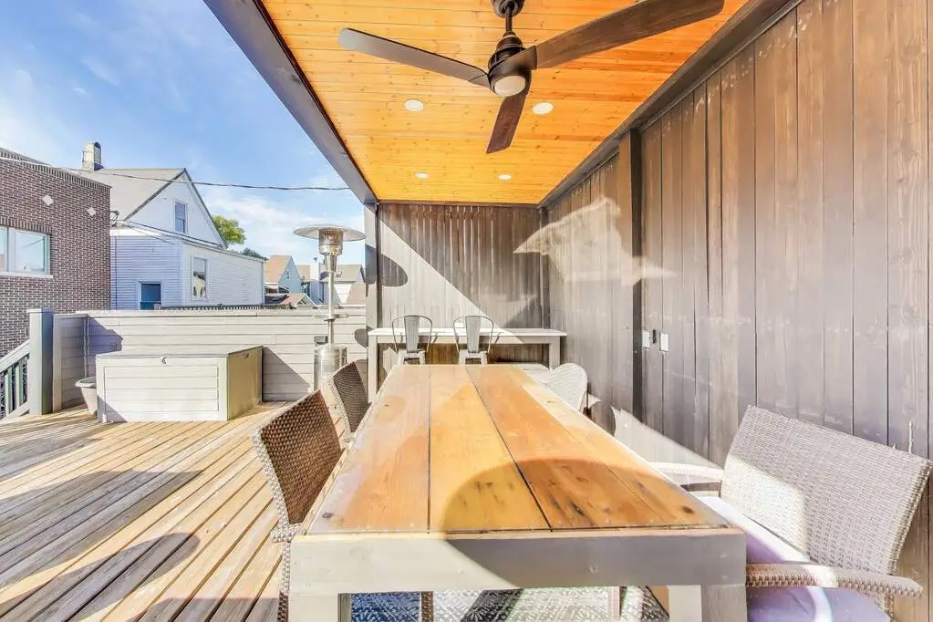 Stunning 5000 sq ft, 6-bedroom residence in the heart of Roscoe Village and the coveted Audubon School District! With 4 bedrooms conveniently located on the upper level, this thoughtfully designed home combines luxurious living with family-friendly functionality. Enjoy soaring 10' ceilings, radiant heated lower level, and three fireplaces throughout. The chef's kitchen boasts SubZero, Viking, and Dacor appliances, granite countertops, custom cabinetry, and premium Grohe and Kohler fixtures. Spa-inspired baths feature steam and rain showers, whirlpool tubs, and double vanities. Exceptional outdoor space includes a paver patio, garage roof deck, and two additional decks off a spacious top-floor bonus room. The finished English basement offers a rec room, office, and guest suite-perfect for extended family or flexible living. Zoned HVAC, pre-wired sound, and incredible storage complete this exceptional offering-just steps to parks, dining, and all the charm of Roscoe Village!
