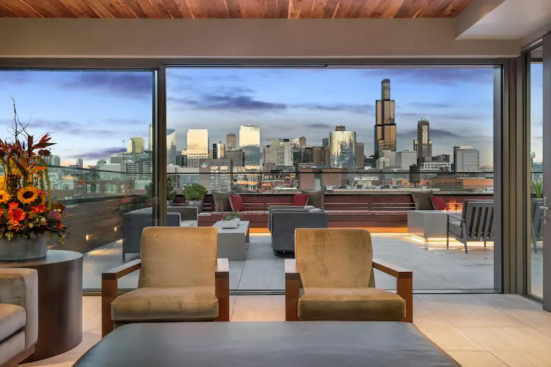 Welcome to Fulton Market, one of the hottest and most sought-after neighborhoods in Chicago. This warm and welcoming multi-level penthouse residence offers a spacious 4575SF open floor plan living space with spectacular, unobstructed and unprecedented Chicago skyline views. Many upgrades in 2025 brings a fresh look to this residence including the massive stone features in the chef's kitchen loaded with all the lux amenities you'd expect including custom cabinetry, a large island for entertaining, and high-end appliances from Miele, Wolf, and Sub Zero. With four oversized bedrooms, an oversized family room/playroom, and a guest room/office, this home offers plenty of space. The oversized primary bedroom features twin walk-in closets, and each of the other bedrooms includes large walk-in closets and access to the centrally located playroom/rec room. Other features of the home include solid newly sanded and stained hardwood floors in 2025 throughout; built-in custom cabinetry in each room, and a walk-in laundry room. The property offers three deeded parking spaces additionally available: two outdoor spaces and one indoor space all behind the secure automatic entry gate. Sellers currently swap one outdoor spot for an indoor garage space which could continue to buyers. Located in the top-ranked Skinner Elementary School District, this home is also conveniently located near world-class restaurants, iconic festivals, and popular nightlife offerings such as Soho House's Fox Bar, The Press Room, CH Distillery, and City Winery. Easy transportation to and from the core central business district, the parks, and the lake and beyond. Common capital improvements are completed.