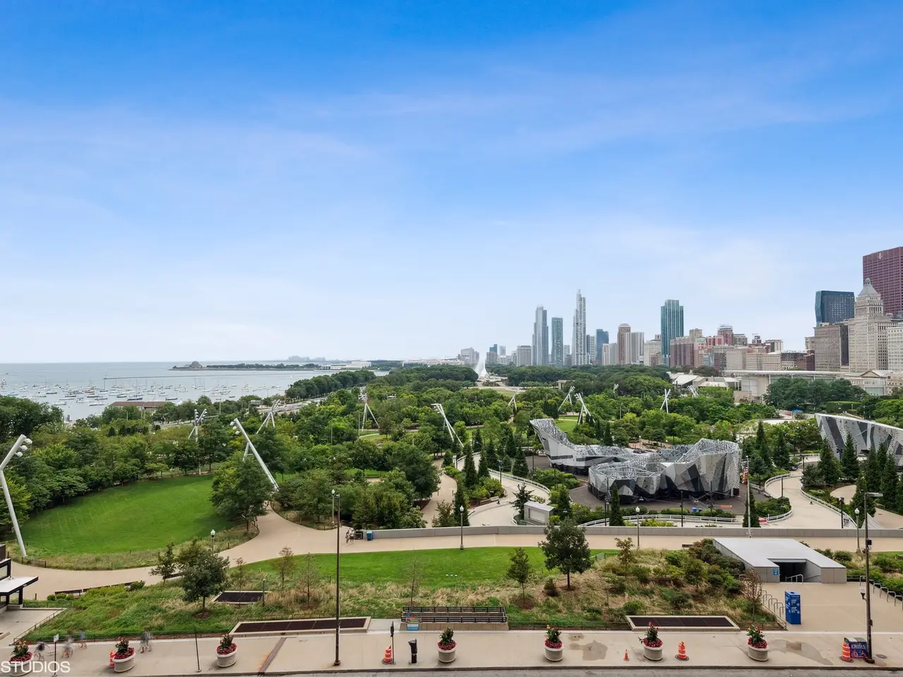 The Only perfectly located residential high rise in Lake Shore East at the feet of Lake Michigan, Maggie Daley Park, Millennium Park and the enormous architectural wall of ""Old Chicago"" on Michigan Ave. Built by Related Midwest, the first Leed Certified/Green Residential building in the city, offers only condos with a sun drenched lobby of steel and glass, onsite management, maintenance and engineering staffs, onsite dry cleaners, Locker package system, pet relief area, grand shortcut to Mariano's and the Village Market. Residence 803 lines up near perfectly with a view of Buckingham Fountain and with no end of view in site to the south, east and west. Unobstructed views forever of Museum Campus, Grant Park, harbor, Lake Michigan, and more. This Residence features pen foyer with immediate and incredible views, open kitchen concept, large peninsula with seating, 1.25"" quartz counters, porcelain slab backsplash, Flat panel wood Snaidero cabinetry, GE Monogram Stainless Steel appliances, vented culinary hood. Bamboo floors, separate dining and living areas, very adequate south facing balcony off dining area. Second bathroom dressed in natural stone. Primary bath featuring separate shower and soaking tub, natural stone, dual Snaidero vanity, closet built-ins. Every window in Residence 803 faces south, with NO BUILDING NEIGHBORS, ALL FLOOR TO CEILING WINDOWS, direct sun, with the best views of 340 on the Park. 25th floor amenities include brand new Winter Garden, Private Conference and Dining Room, full caterer's kitchen, sundeck, furniture, two gas grills, 4000 square foot gym, Sauna, locker rooms with steam rooms, 75' indoor two lane lap pool, whirlpool. Internal Access to Pedway. First floor Heated garage parking, (P1-56) INCLUDED IN LIST PRICE. First Leed Certified Residential High-rise Building built in Chicago by Related Midwest who also built One Bennett, 840 N. LSD and Park Tower.