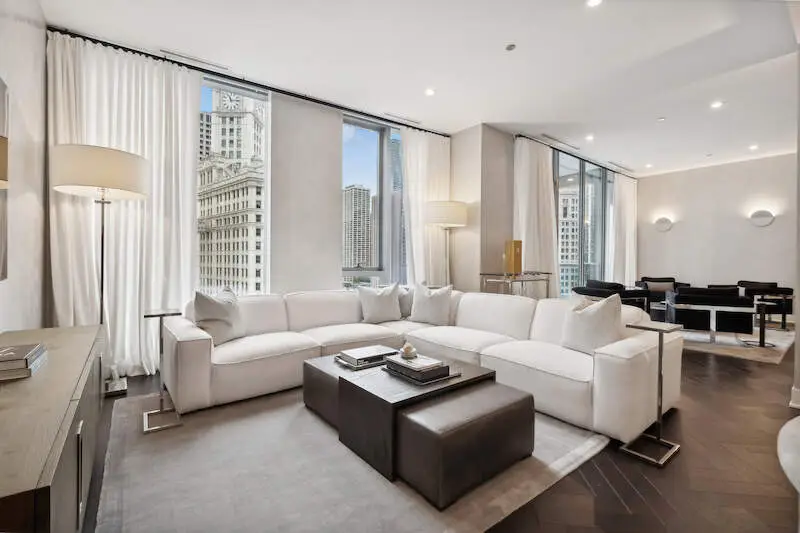 Exquisite Riverfront Residence with Unparalleled Upgrades Every inch of this highly upgraded residence has been meticulously curated for the discerning homeowner. Elegant Venetian plaster walls, bespoke wall coverings, custom-designed closets, and sophisticated lighting create a refined ambiance throughout. Perfectly positioned along the river and surrounded by Chicago's most iconic architecture, this enviable address offers walkability to the finest dining, shopping, and cultural experiences downtown has to offer. The gracious three-bedroom, three-bath floor plan showcases sweeping city and river views from every room and the private terrace. Art enthusiasts will appreciate the expansive gallery-style walls, while design connoisseurs will admire details such as Waterworks fixtures, a spa-inspired primary bath with a Victoria + Albert freestanding tub, and a sleek Snaidero kitchen appointed with Wolf and Sub-Zero appliances. Residents enjoy world-class amenities, including 24-hour door staff, a state-of-the-art fitness center with a private yoga studio, bicycle storage, and a dedicated dog run. The penthouse-level club is an entertainer's dream, featuring a rooftop lounge with game and media rooms, indoor and outdoor kitchens, and a terrace with a fireplace overlooking Chicago's magnificent skyline and river. One garage parking space is included. The residence may also be purchased fully furnished for a truly turnkey experience.