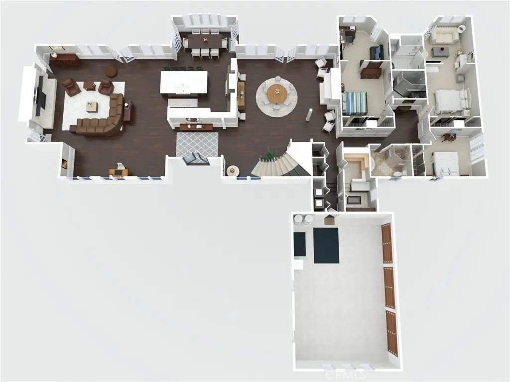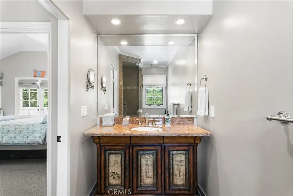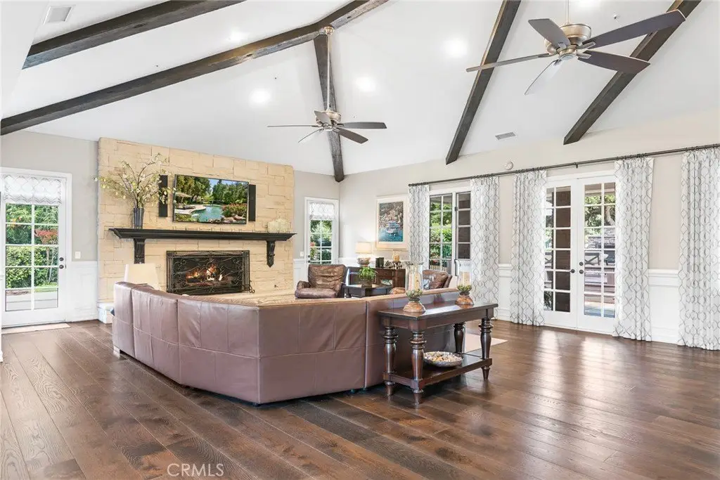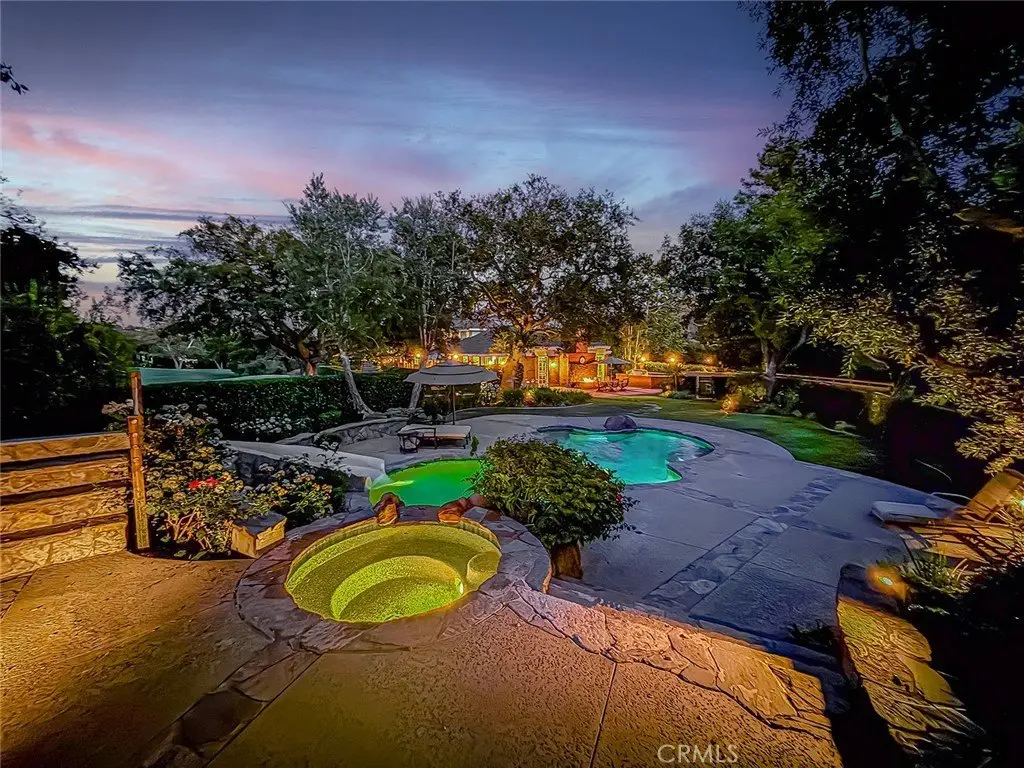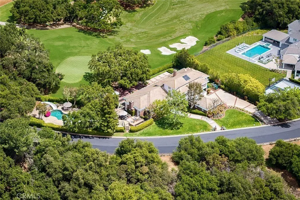 Welcome to 5135 Island Forest Place — a private sanctuary gracefully positioned along the serene sixth fairway of the esteemed North Ranch Country Club. This contemporary estate is a testament to architectural elegance and thoughtful design, encompassing over 5,100 square feet of living space. With five generously appointed bedrooms and five bathrooms, the home offers abundant room for both grand entertaining and quiet retreat. Two main-level bedrooms feature ensuite baths, affording exceptional privacy and comfort for family members or discerning guests. Set on over 260 feet of prime golf course frontage, the residence enjoys uninterrupted views of rolling fairways framed by mature oaks providing both visual splendor and a natural sense of seclusion. The expansive great room, crowned by soaring 16-foot ceilings, floods with natural light and offers an ideal setting for sophisticated gatherings, fireside reading, or peaceful reflection. Step outside to a resort-inspired backyard, where a shimmering pool and spa are embraced by lush landscaping, creating an intimate outdoor haven. Whether entertaining under the stars or savoring a quiet morning by the water, this space is designed to restore and inspire. Located on a tranquil cul-de-sac within the exclusive gated enclave of Island Forest—comprised of just 14 distinguished residences—this home offers the rare combination of security, privacy, and community. Low HOA dues add to the appeal of this elite setting. Enhancing the property’s value and lifestyle offering, a significant renovation of the North Ranch Country Club’s renowned golf courses is currently underway, promising an elevated playing experience and world-class amenities upon completion. Unlike other homes in the area, 5135 Island Forest Place is thoughtfully situated away from through-traffic, ensuring a sense of peace that is both rare and cherished, truly evoking the feel of a personal island retreat. Here, luxury meets tranquility in one of North Ranch’s most coveted addresses.