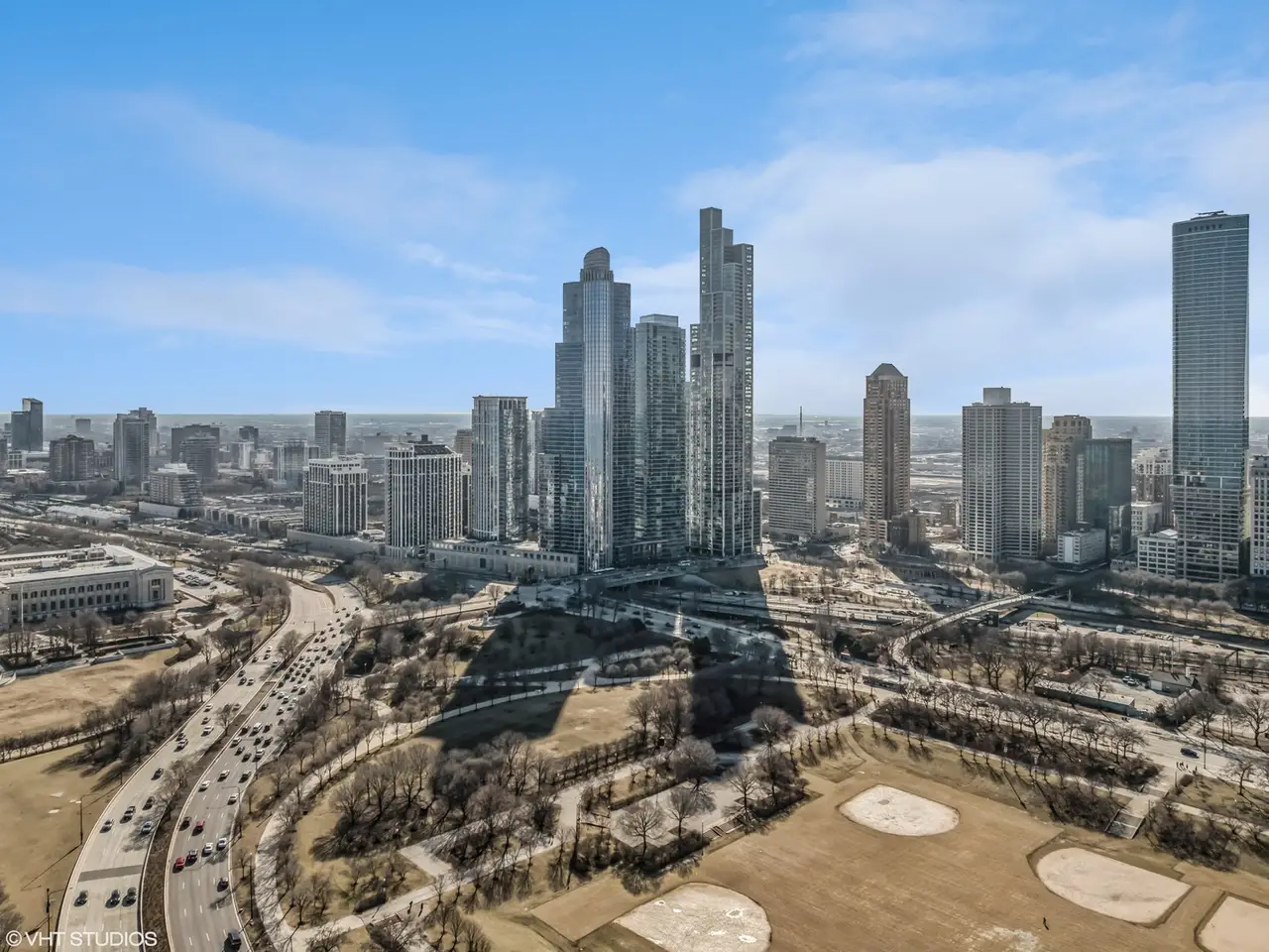 Spectacular Penthouse with the Best Views in Chicago. . . .Experience the best of city living in this extraordinary penthouse condo, perfectly situated across the street from Grant Park and the Museum Campus. Marvel at breathtaking, unobstructed views of Chicago's skyline, Lake Michigan, Millennium Park, and beloved landmarks like the Field Museum, Shedd Aquarium, Adler Planetarium, Burnham Harbor, and Soldier Field -- all visible through nine-foot, floor-to-ceiling windows. Boasting 2,920 square feet, this three-bedroom, three-bath residence features a large great room with living and dining areas, ideal for hosting gatherings while enjoying panoramic views of the Chicago Marathon, NASCAR races, park concerts, Bears games, and summer boating. . . .The gourmet kitchen is outfitted with custom cabinetry, granite countertops, and a breakfast bar, alongside high-end Sub-Zero and Wolf appliances, including a 48"" side-by-side refrigerator, double ovens, a six-burner gas cooktop, and a microwave-all in stainless steel. The spacious primary bedroom features two large walk-in closets, with an en-suite bath offering granite countertops, double sinks, marble floors, a bubbler soaking tub, and a separate walk-in steam shower. The second bedroom also has an en-suite bath with double sinks, separate tub, and shower, as well as its own walk-in and linen closets -- perfect for ensuring your guests' privacy. The third bedroom provides ample space and is adjacent to a full bath. A dedicated laundry room with a high-end washer/dryer and pantry adds extra convenience. Throughout the home, you'll find beautiful hardwood floors in the main living areas and hallways, and comfortably carpeted bedrooms, with custom-built closets and solid core doors in every room. . . .The building's resort-style amenities include both indoor and outdoor pools, a large sun deck, saunas, a playroom, an outdoor BBQ and dining area, and a state-of-the-art exercise facility. Two stylish hospitality rooms can be reserved for private events, and the 24-hour door staff along with on-site management ensure a welcoming experience. This unit has two prime side-by-side deeded parking spaces on the first floor -- both EV-ready -- along with a large storage locker and a larger storage room on the same floor as the unit. The parking spaces and storage room are deeded separately and may be purchased at an additional cost. Pet owners will appreciate the dog-friendly building complete with a covered dog run. . . .Don't miss the opportunity to enjoy these unrivaled panoramic views -- schedule your private showing today and experience one of the finest residences Chicago has to offer!