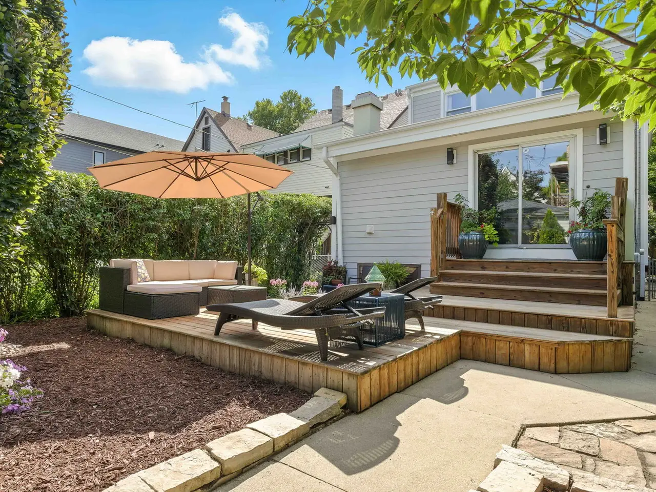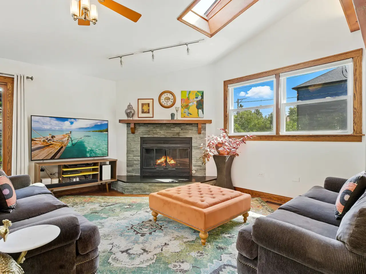 Stunning and spacious five-Bedroom Single Family Home in Lincoln Square, close to Winnemac Park! This updated home offers the perfect blend of character, space, and modern comfort. With five bedrooms up and three and a half baths, it provides incredible flexibility for today's lifestyle. The main level is ideal for entertaining, featuring a formal living room, elegant dining room, and a thoughtfully updated kitchen with large peninsula/breakfast bar that flows seamlessly into a massive family room. This addition has wood burning fireplace (with gas starter), skylights, vaulted ceilings & full bath. The second level features four bedrooms and a full bath, while the top floor is dedicated to a serene, recently-finished primary suite with bright, white bath with double sinks and huge walk-in shower with window. Downstairs, the finished basement adds even more living space-with a rec room, bonus office, laundry and half bath, plus an entire extra storage room. Step outside to enjoy a fully fenced rear patio and deck, offering plenty of space for outdoor gatherings (great spot for outdoor movies), dining, with outdoor speakers, privacy fence, hot tub hookup, vegetable garden beds, hot and cold water spigots, patio area, mature landscaping and water fountain. A two-car garage, dual-zoned HVAC and Hardie Board Siding complete this home. All of this in an amazing Lincoln Square location - just minutes to restaurants, shops, CTA Brown Line, Metra, farmer's market, LA Fitness and green space. Come home!