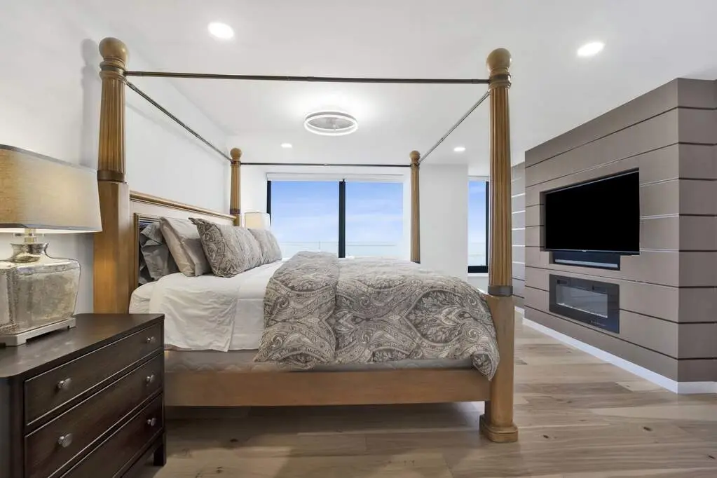 Stunning 2,500-square-foot combined unit boasts three bedrooms and three-and-a-half bathrooms in prestigious Harbor Point! Magnificent curved open floor plan showcases panoramic views of Lake Michigan, Navy Pier, DuSable Harbor, Grant Park, and Chicago's iconic skyline through oversized windows! Natural finished hardwood floors and recessed lighting flow throughout this meticulously designed space. Centrally positioned kitchen features quartz countertops, custom tile backsplash, and stainless steel appliances, complemented by an elegant wet bar with quartz counters, wine fridge, and custom cabinetry with glass panel accent doors. Sophisticated living room highlights an elongated fireplace and accent wall, while flexible den and breakfast nook spaces capture breathtaking views! Formal dining area opens to kitchen, accommodating large-scale entertaining beneath custom lighting fixture. Primary suite impresses with lake views, fireplace, accent wall, expansive walk-in closet, and dual en-suite bathrooms - one featuring a custom glass-enclosed shower/tub combination, the other offering a stand-alone shower, both showcasing custom tilework and vanities. Two additional bedrooms are serviced by a full bathroom with glass-enclosed shower/tub combination and custom tilework, with one bedroom featuring built-in shelving. Convenient half bath and separate laundry room complete this exceptional home. Building amenities include 24-hour door staff, indoor pool, exercise room, sauna, steam room, sundeck, storage, and valet/cleaning services. Steps from Millennium Park, the Art Institute, world-class dining at Gibson's Italia and RPM Seafood, shopping along Michigan Avenue, and easy access to Lake Shore Drive!