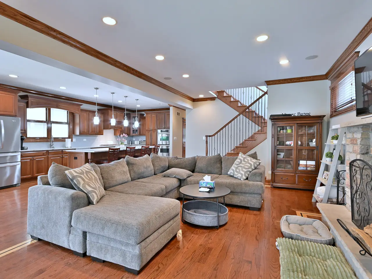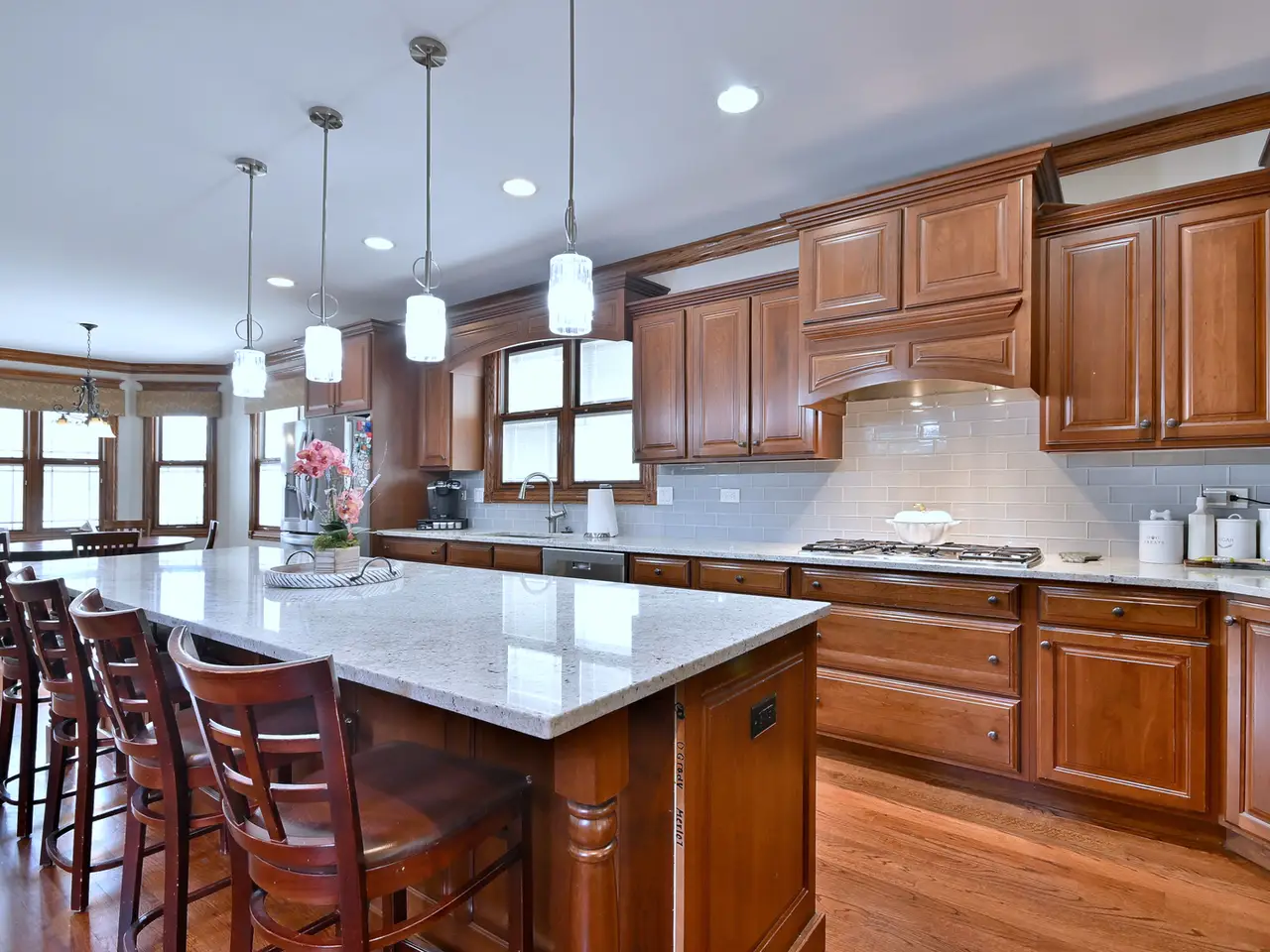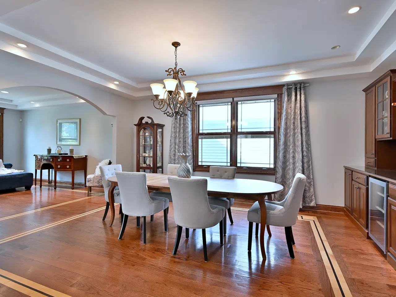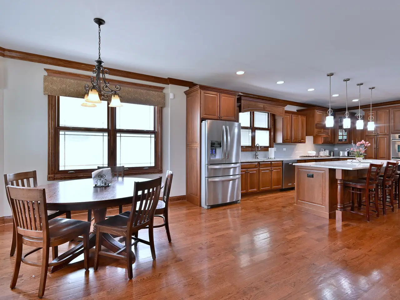 Stunning Norwood Park custom built home boasts almost 4000 square feet above grade. Large living, formal dining room with custom built in Amish hutch. Huge Chef's kitchen has custom Amish cabinets, new refrigerator, 10 foot Island, adjacent eating area and 25 x 20 family room with wood-burning fireplace. Rare front and rear interior oversized oak staircases, bonus three car brick garage with full staircase to second floor loft that makes for amazing storage. Custom hand crafted cove moulding throughout home! First floor office/bedroom with french doors, first floor powder room. Second floor has four amazing bedrooms, including a 20 x 18 primary, with huge primary bedroom bath, steam shower and jacuzzi, ( other bathrooms are ""en-suite"", and ""Jack and Jill'). Large walk-in laundry room. Finished basement has 10 foot ceilings, wet bar with seating for 10, and wine refrigerator. Large Rec room area has wood-burning fireplace, and an 18 x 18 ""pool-table"" room, full bathroom and 6th bedroom/ ""Nanny suite"" or work-out room. Basement has second laundry room, and exterior access to yard. Additional amenities include a central vacuum system, a brand-new first-floor HVAC system heat and air-installed August 2024), a 200 AMP electrical panel, and an in-ground sprinkler system. Bonus three car brick garage with full staircase to second floor loft that makes for amazing storage. This extraordinary home is a short walk to the Norwood Metra, and offers the perfect blend of timeless craftsmanship, modern comfort, and thoughtful design.