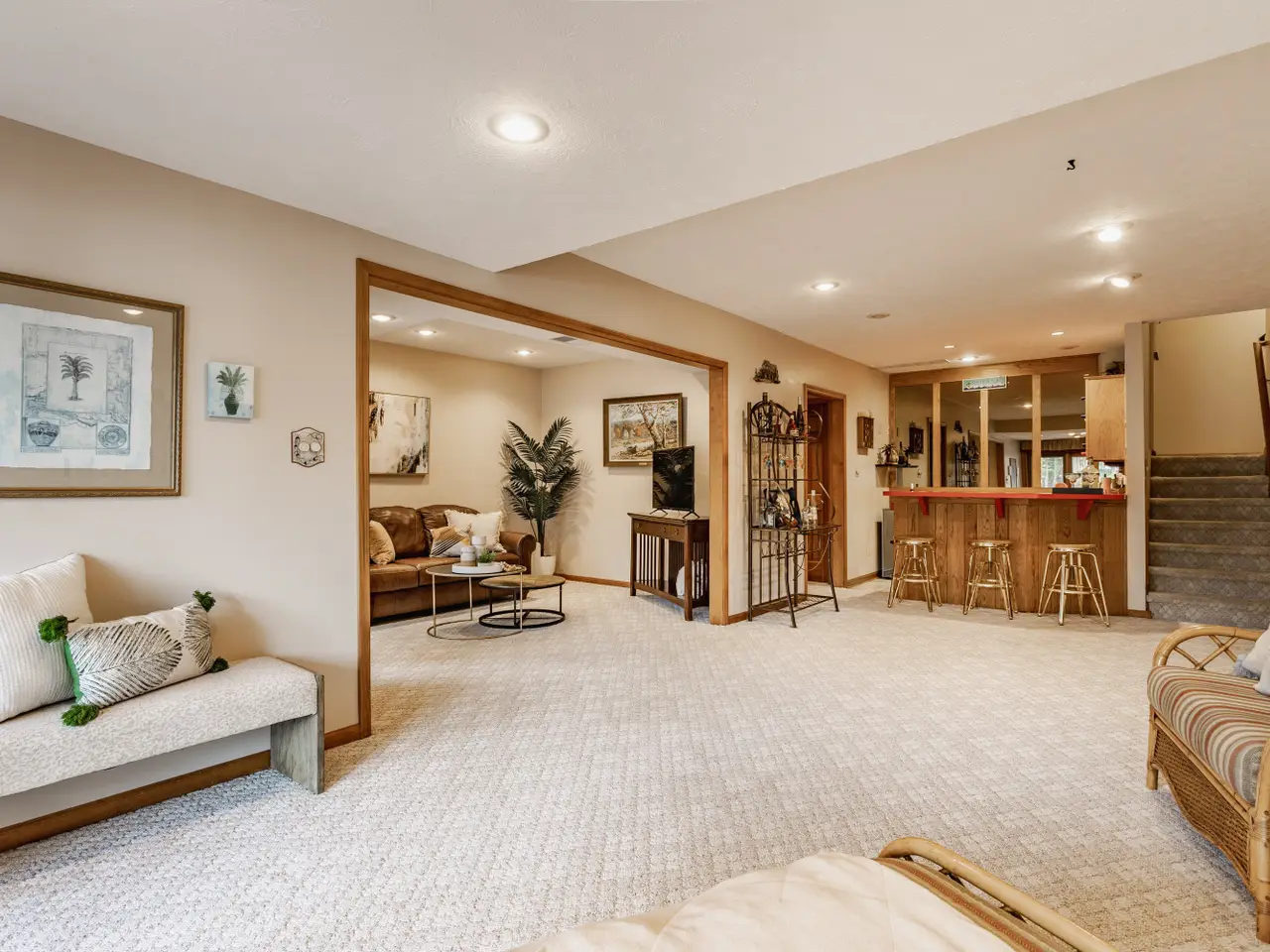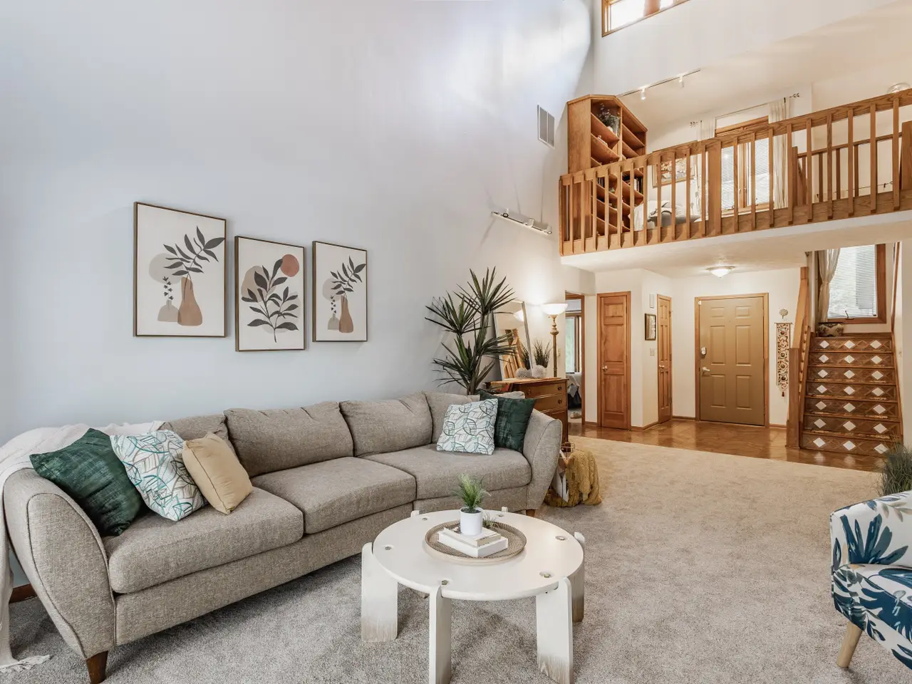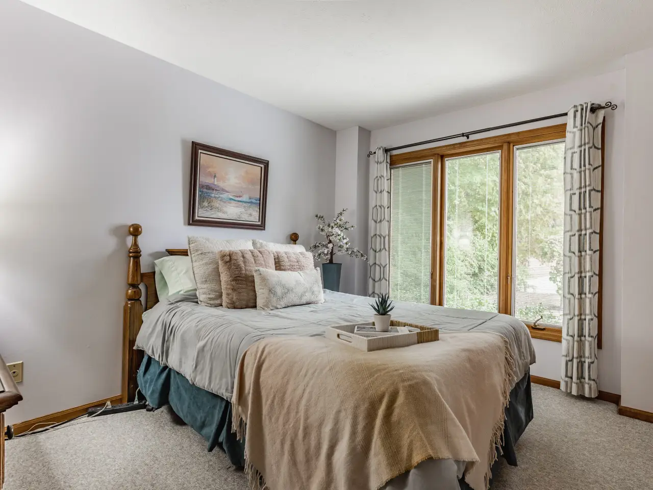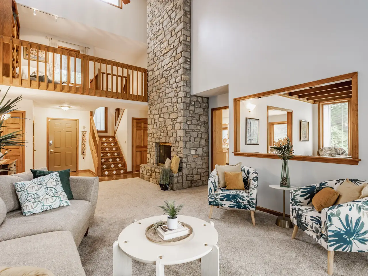Welcome home to lake life at its best- where comfort meets tranquility on the water! Nestled on a quiet cul-de-sac, this beautiful lakefront home offers spacious living and stunning views. The main level features a two-story great room with vaulted ceilings, new carpet, a two-story stone gas fireplace, and access outside to a multi-level deck-perfect for relaxing or entertaining by the water. The kitchen showcases stainless steel appliances, marble countertops, and a charming garden window, flowing seamlessly into the eat-in area and sunroom, where you can enjoy lake views. Two bedrooms are conveniently located on the main level. Upstairs, a cozy loft overlooks the great room-an ideal reading nook or quiet retreat. The primary suite features another cozy fireplace, its own sunroom with automatic skylights, blinds, and screens-perfect for enjoying your morning coffee with a peaceful lake view. Primary also includes an on-suite bathroom with an oversized marble tub and shower with dual showerheads. The cedar-lined closet includes a hidden door for extra storage. The walk-out basement opens to a beautiful deck designed for entertaining, complete with a hot tub and relaxing lake views. Inside, you'll find a wet bar, gas fireplace, flex room, and generous storage areas-perfect for both gatherings and quiet evenings in. Step outside to enjoy your private boat dock with canopy and one lift, ideal for effortless lakeside living. Recent updates include a new roof and new AC unit, both completed in 2023.