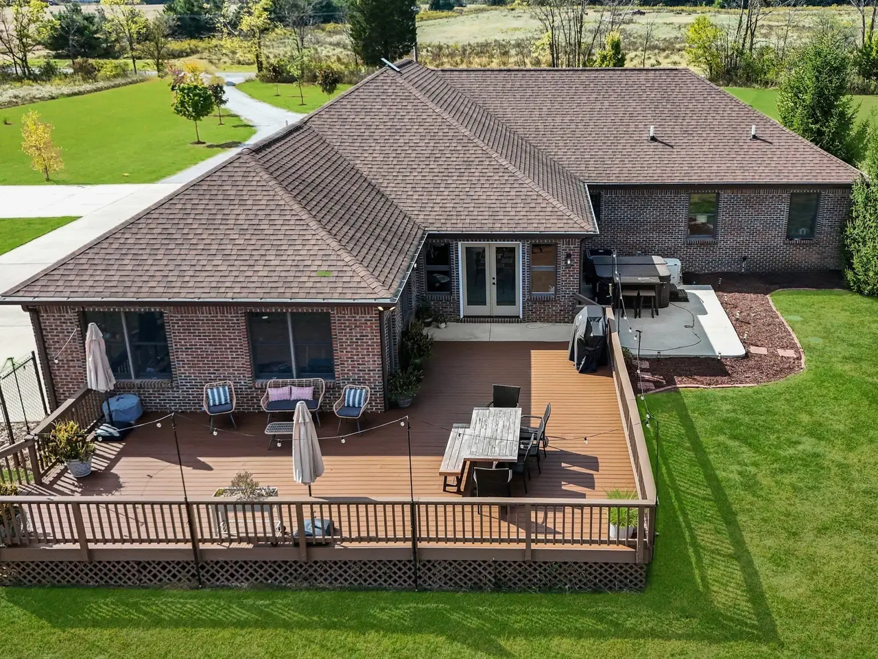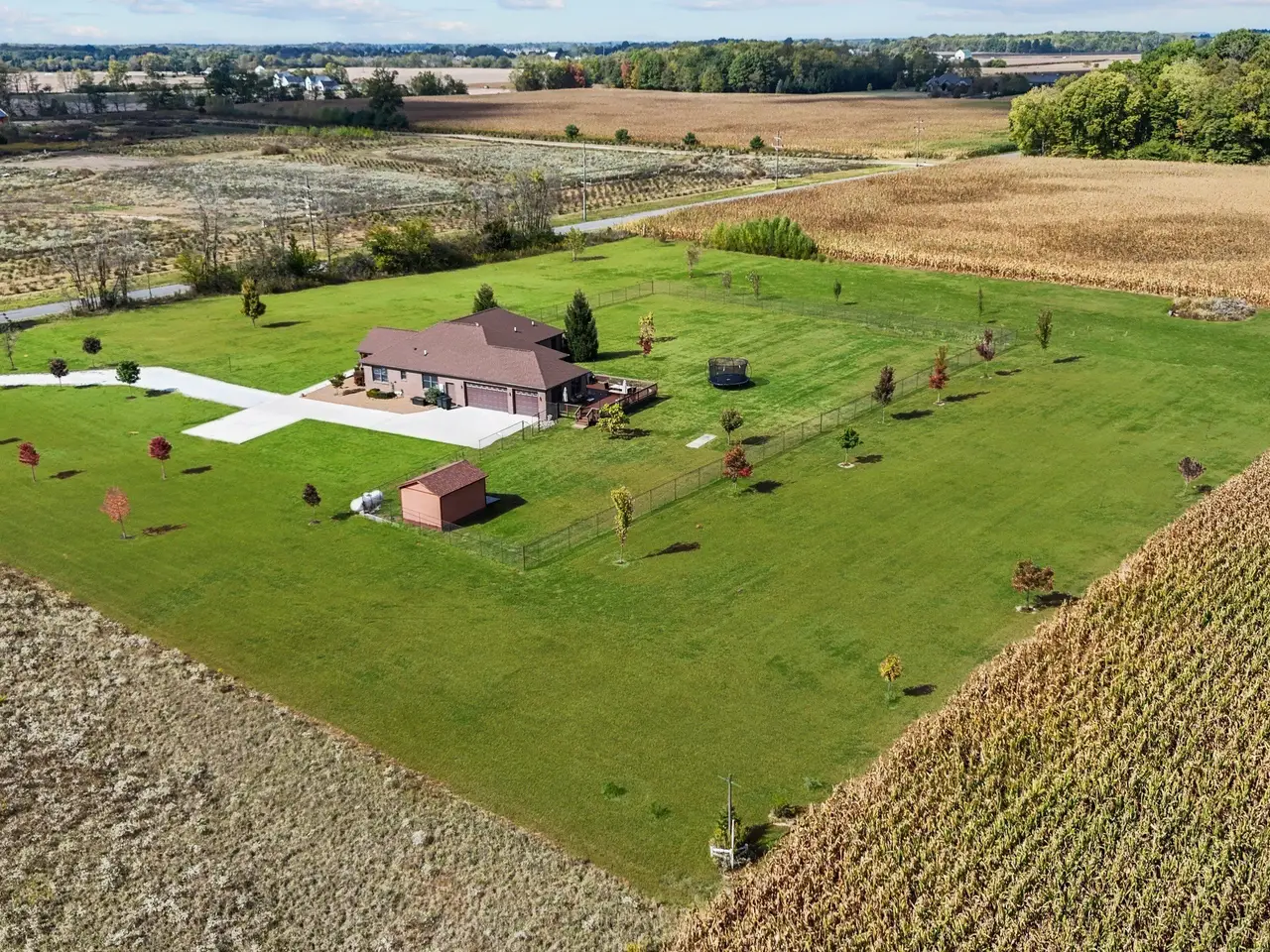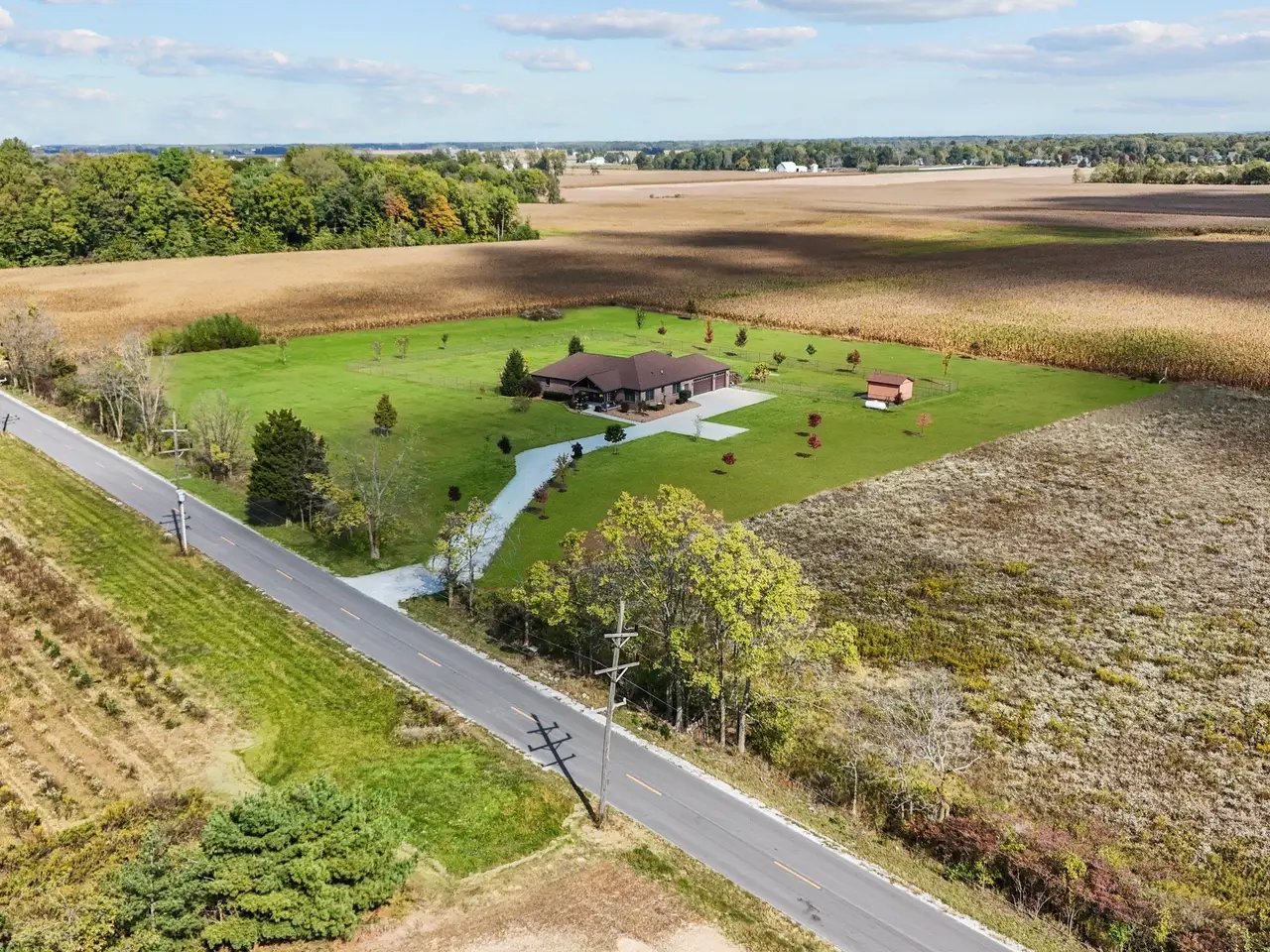 RARE OPPORTUNITY FIND with NO HOA! Custom-built well-maintained brick ranch sits on 4 acres w/no visible neighbors with finished basement. As you enter this beautiful open concept home you will see a new electric fireplace that provides the perfect ambience & will keep you warm on a chilly night. This home boasts tons of Anderson windows to allow a lot of natural light with soaring ceilings. Main floor has new LVP flooring throughout(original hardwoods underneath),freshly painted interior &white trim. Kitchen offers brand-new quartz countertop/backsplash & cooktop, walk- in pantry, lots of cabinets/soft close drawers for storage w/an oversized island that seats 4 comfortably.The spacious MBR offers a newly renovated bathroom w/tile floor,oversized tile walk-in shower,double sink vanity w/large walk-in closet w/built ins.Watch your favorite show/movie while relaxing in the tub. Roomy dining room overlooks your peaceful back yard & is great for entertaining,especially with the holidays coming up.The extra room on the main can be used for a nursery, den, office, craft room, extra storage, many possibilities.Finished basement has BR with a walk-in closet, including a bathroom w/tile floor w/ tub/shower combo.Basement bonus room can be extra LR, toy room,gaming room,workout room,options are endless.House offers central vac, reverse osmosis,EV charger,GENERAC generator 3 car garage w/8 ft doors, 6 ft chain link fence, storage shed w/Toro mower that is included,all new wood doors,new recessed lighting throughout entire home,newly laid gravel drive,too many upgrades to mention! Unwind from a busy day under your 240 sq ft covered front porch,out back on your 775 sq ft TREX deck or soak in your relaxing hot tub overlooking your gigantic back yard as you enjoy the peace and quiet while watching nature at its best. .Property has several newly planted trees & several fruit trees (apple, pear,cherry) including raspberry, blueberry & strawberries bushes. Close to Morse Reservoir.