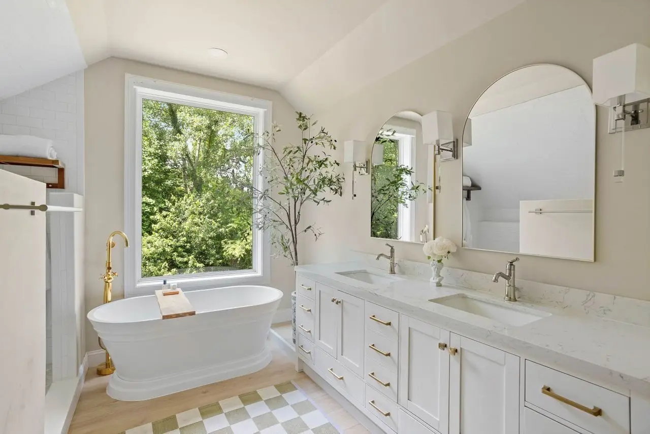Serene backyard with lush landscaping