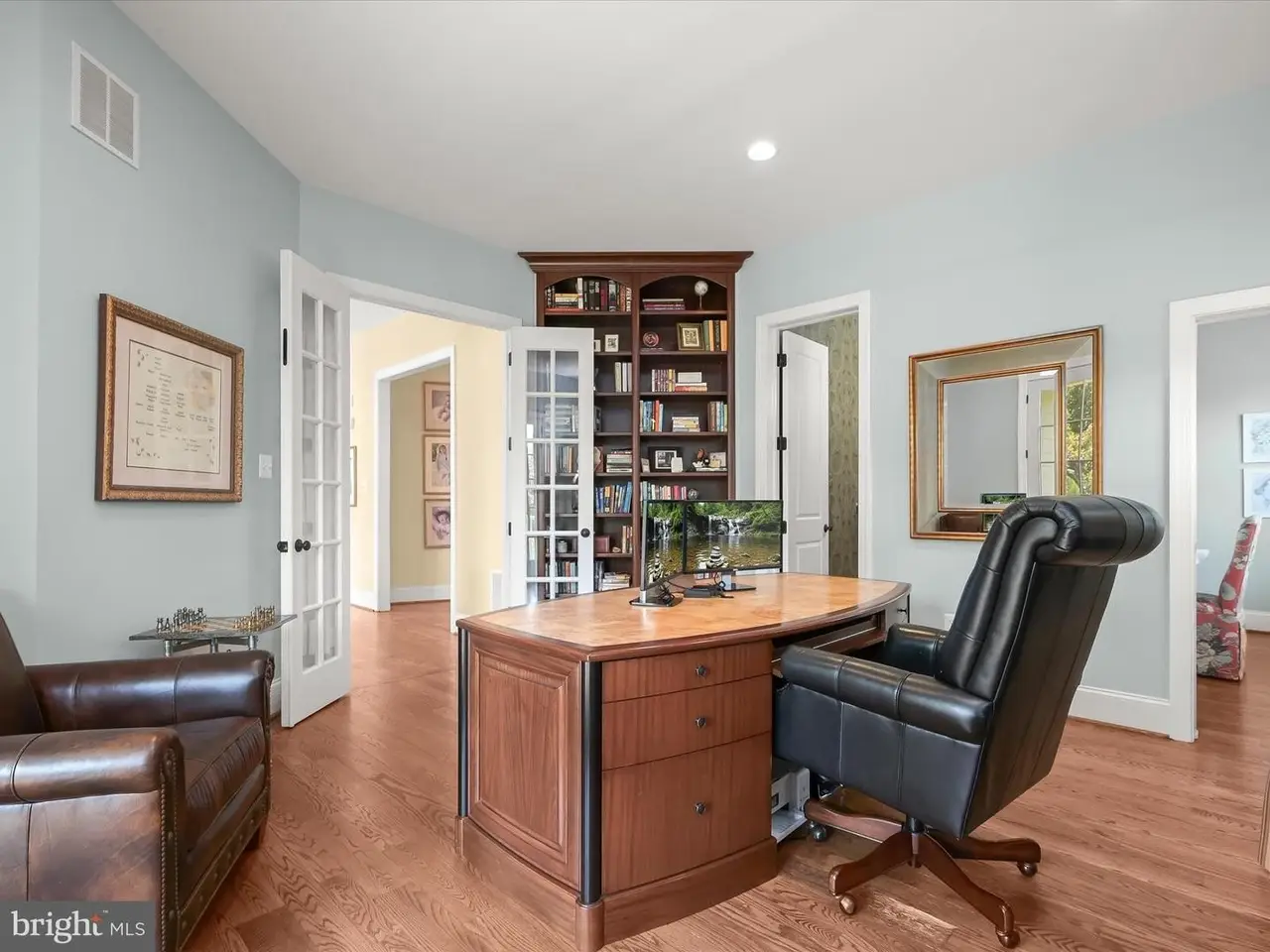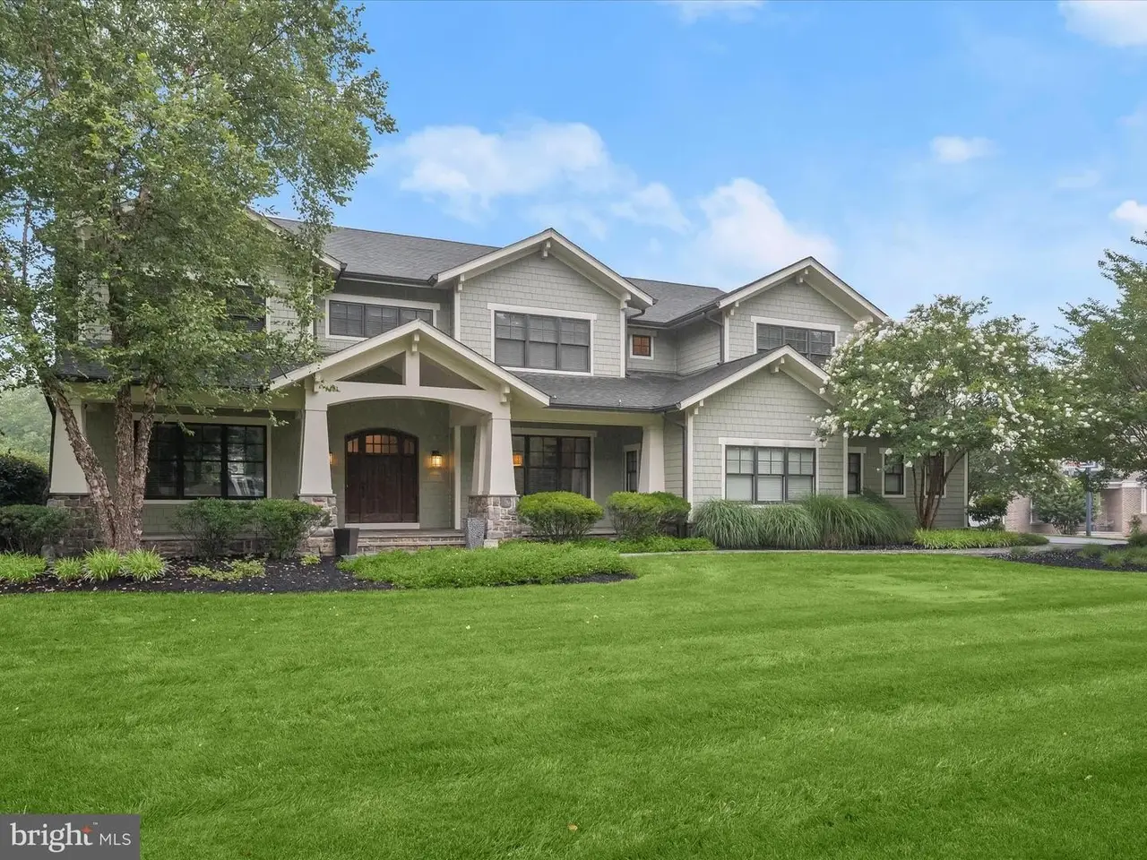 This exceptional custom Craftsman home has been meticulously maintained by its original owners and offers an unparalleled blend of luxury and functionality. The home boasts a stunning heated saltwater pool and a charming portico front entry that welcomes you into a world of elegance. Inside, beautiful hardwood floors flow throughout, enhancing the formal living room with its gas-burning fireplace and crown molding. The formal dining room provides an ideal space for hosting gatherings, while the gorgeous kitchen features professional-grade appliances, an expansive walk-in pantry, and a casual dining area. The two-story great room is a centerpiece, showcasing custom-built shelving and a gas-burning, stone-accented fireplace. A main-level library, complete with a full bath, hobby room, and private balcony, serves as an ideal in-law or Au Pair suite. A second home office provides a dedicated space for remote work. Dual staircases lead to the impressive primary suite, adorned with two walk-in closets and a luxurious bath featuring double vanities, a soaking tub, a water closet, and an oversized shower. The upper level is completed by four generously sized bedrooms, each with access to an en suite or dual-entry bath. The lower level offers an entertainer's dream, including a recreation room with a custom bar, a game room, a media room, a full bath, and ample storage. A separate above-garage apartment provides fully finished space, ready for customization with a kitchen if desired. The outdoor spaces are equally captivating, with an expansive breezeway and patio featuring bluestone finishes, an outdoor fireplace, and a grilling station. The magnificent saltwater pool completes this entertainer's paradise, offering the perfect retreat to end your day. Don't miss this opportunity to own a home of pristine perfection. Backs to acres of HOA and open space