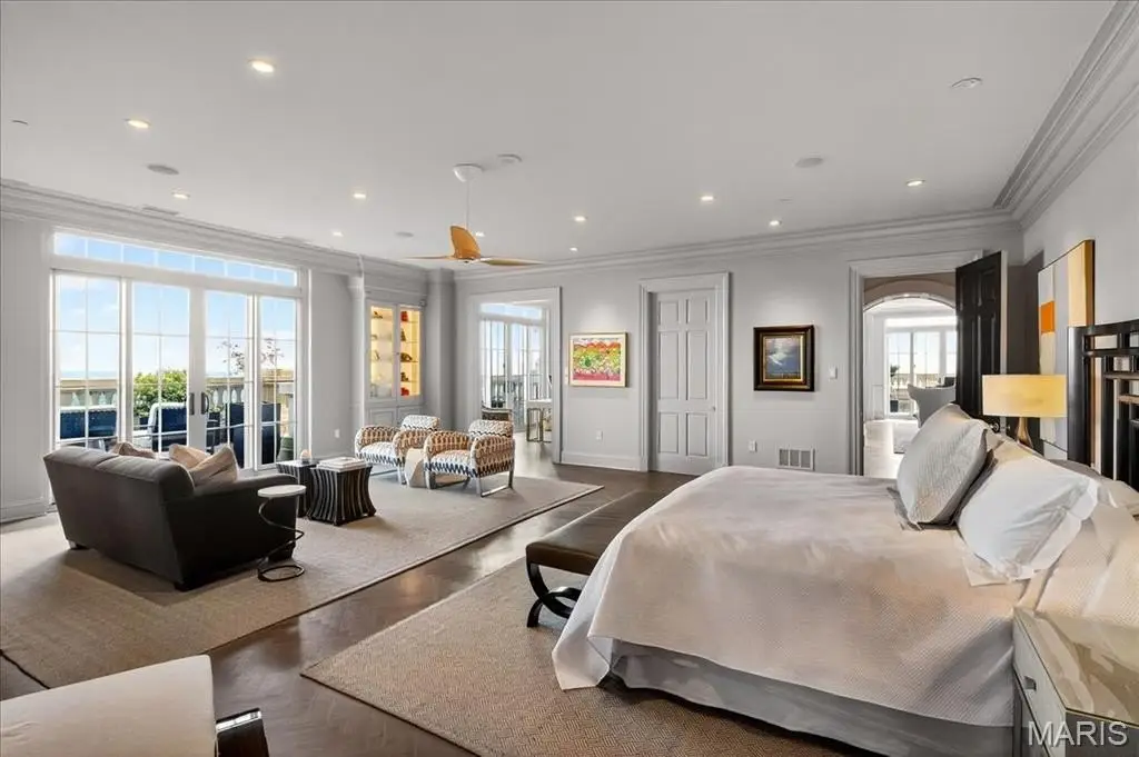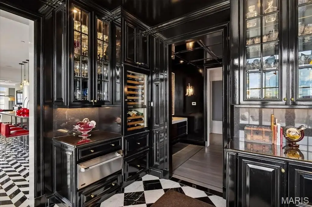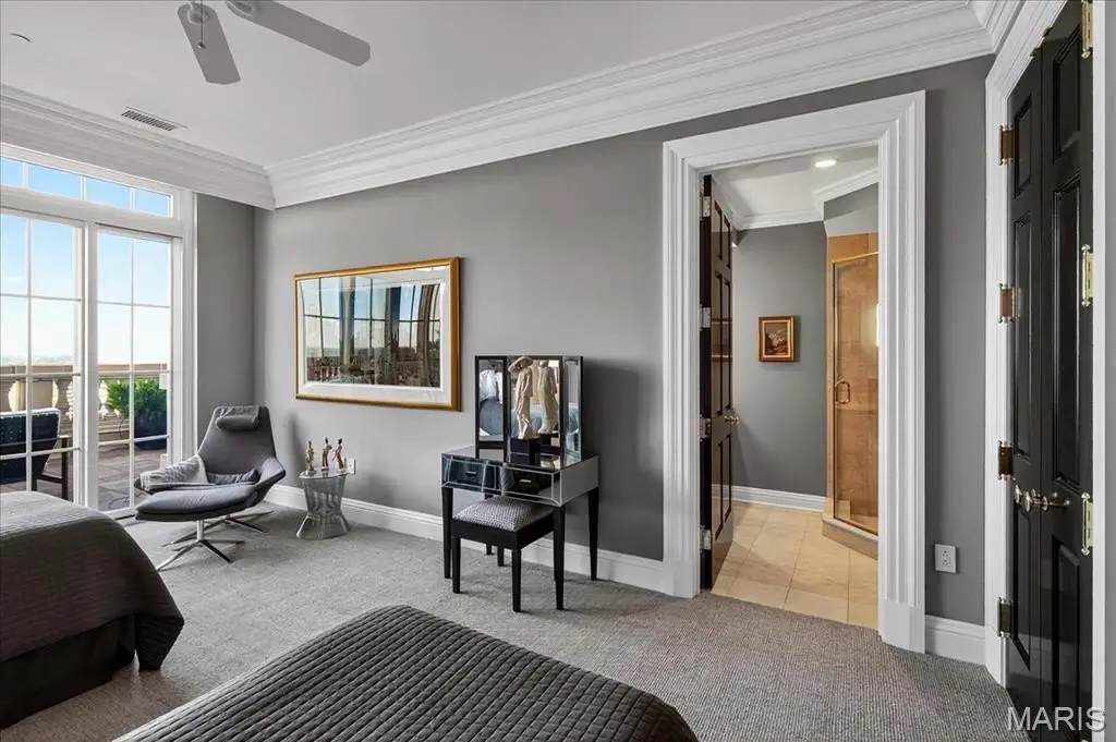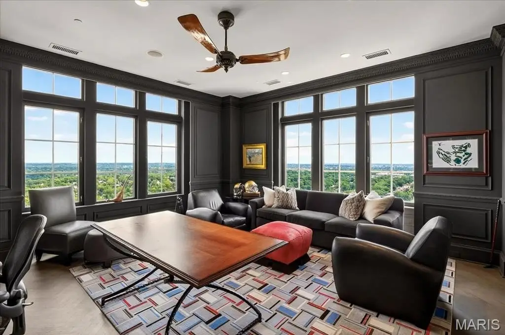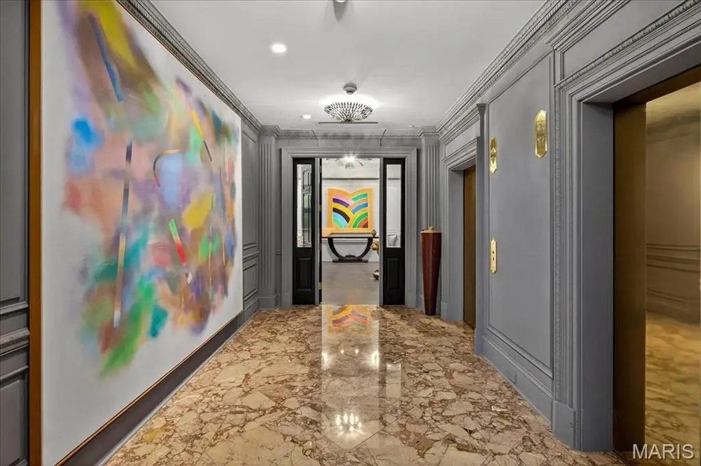 Welcome to the crown jewel of luxury living: this full-floor penthouse features 2800 square feet of outdoor living space across four expansive terraces with panoramic views in every direction. From your private elevator foyer, enter a residence of timeless architecture and refined design, showcasing exceptional millwork and custom walnut and ebony inlaid chevron floors. The Venetian-plastered living room serves as the elegant centerpiece, flanked by a formal dining room and a handsomely paneled library. Designed for entertaining and daily living, the kitchen boasts bold black-and-white marble floors, Wolf and Sub-Zero appliances, a large center island, and flows into the breakfast and family rooms. A lacquered Butler’s Pantry and Bar provides added serving space, while the 500-bottle wine room is ideal for collectors and hosts alike. The primary suite offers spectacular northern views, a sitting area, an office, and three oversized walk-in closets. The ensuite bath features dual water closets, a soaking tub, and a walk-in shower, creating a tranquil escape. Two additional bedroom suites provide comfort for family or guests, while a large laundry room with custom cabinetry and a full bath (formerly a fourth bedroom suite) adds flexibility. This extraordinary lifestyle includes 24-hour concierge service, valet parking, pool, fitness center, dog park, and four parking spaces, with Clayton’s finest eateries and boutiques just moments from your doorstep.