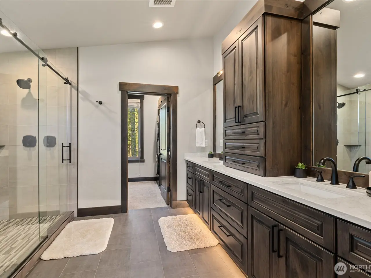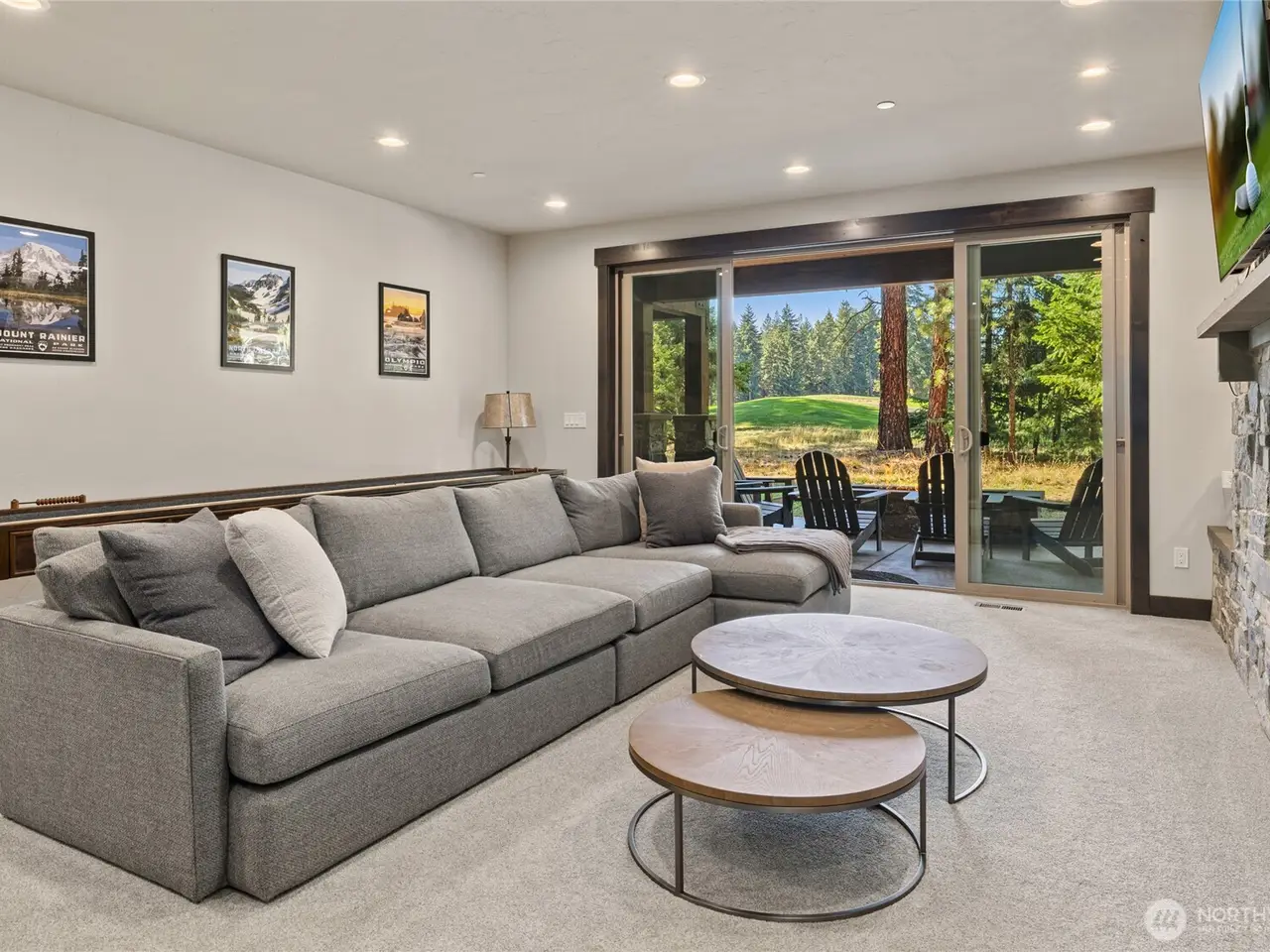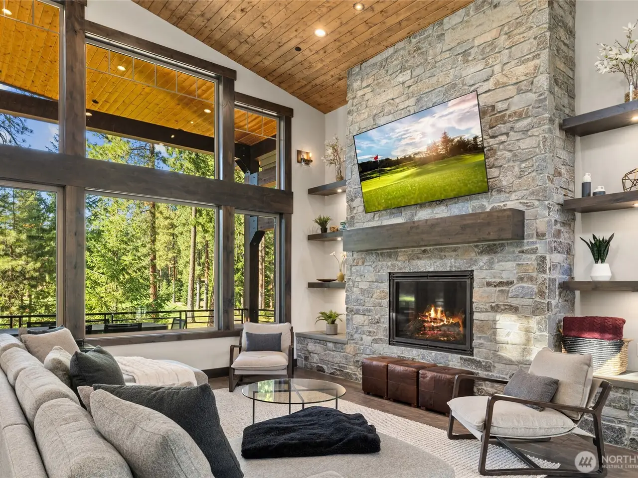 Fully Furnished & Turnkey Golf-Front Retreat in Suncadia! Experience incredible sunsets over the entire 5th Fairway of Prospector Golf Course from this stunning, move-in-ready home. A striking stone-and-concrete entry welcomes you to warm hickory floors and an elevated main level designed for effortless entertaining. The expansive chef's kitchen flows seamlessly into the great room and dining area, extending out to covered decks with sleek metal railings -- perfect for gathering year-round. Four spacious ensuite bedrooms provide ultimate comfort & privacy, while the lower-level recreation room opens to a natural-gas firepit & covered patio with a private spa. Stone fireplaces in both the great room and rec room create a cozy mountain ambiance.